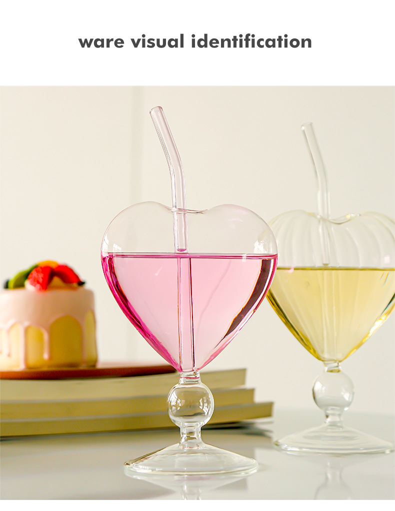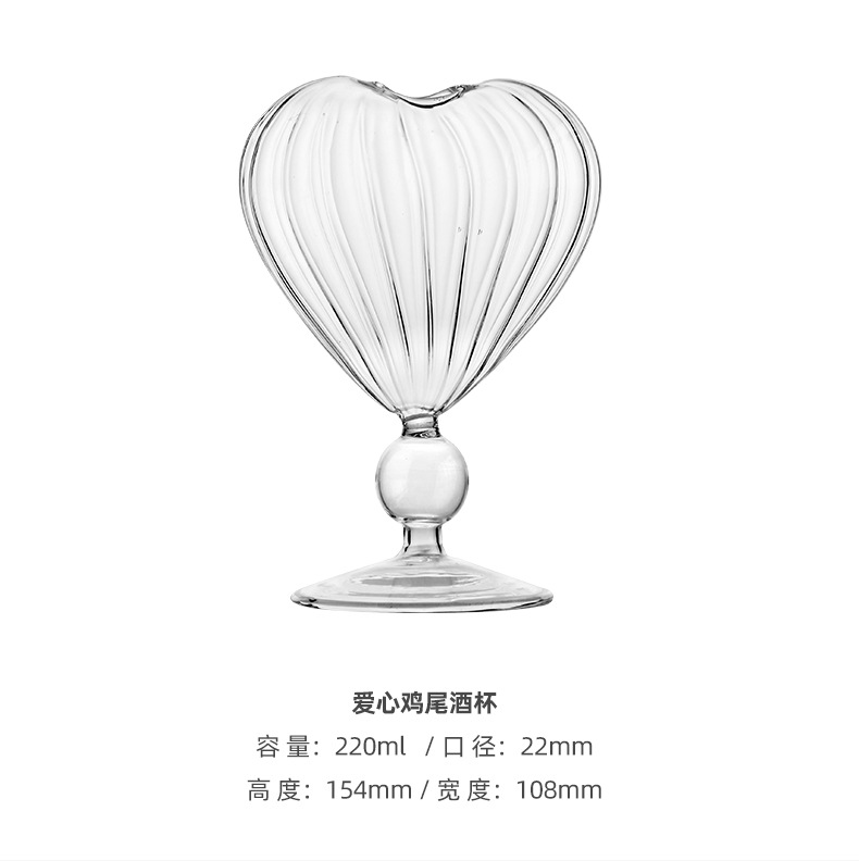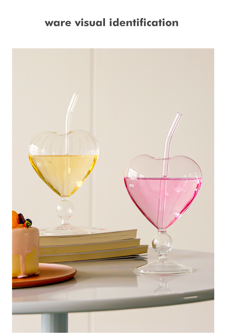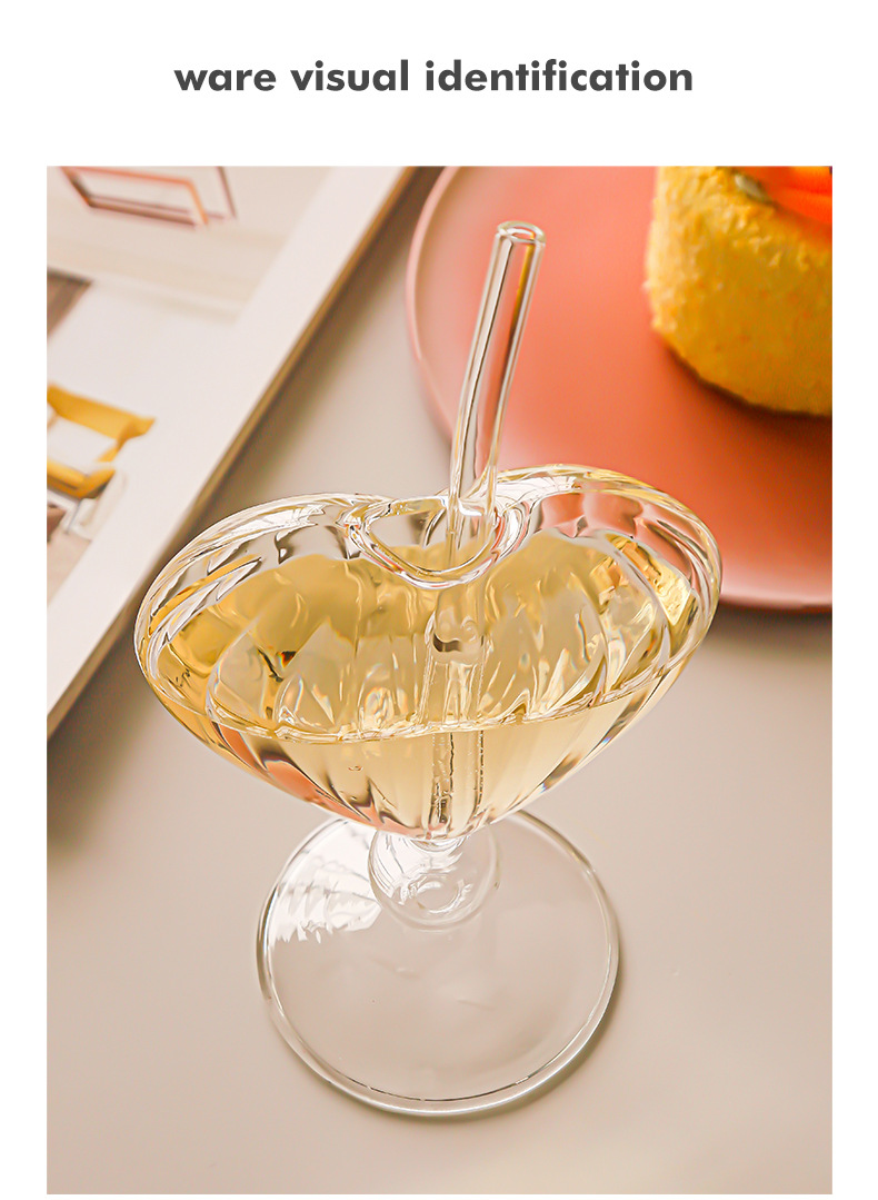 网红ins风创意爱心形酒吧调酒杯果汁软饮料玻璃吸管杯 鸡尾酒杯子