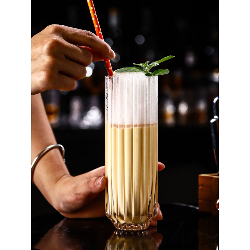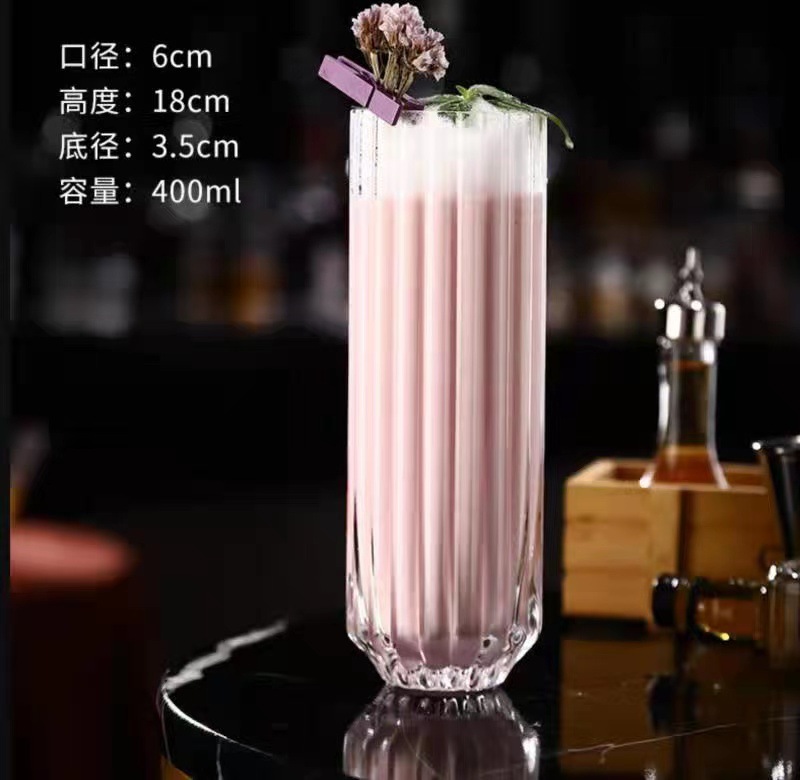 条纹花蕾杯直身鸡尾酒杯 果酒杯子长饮杯奶昔杯水晶玻璃杯柯林杯