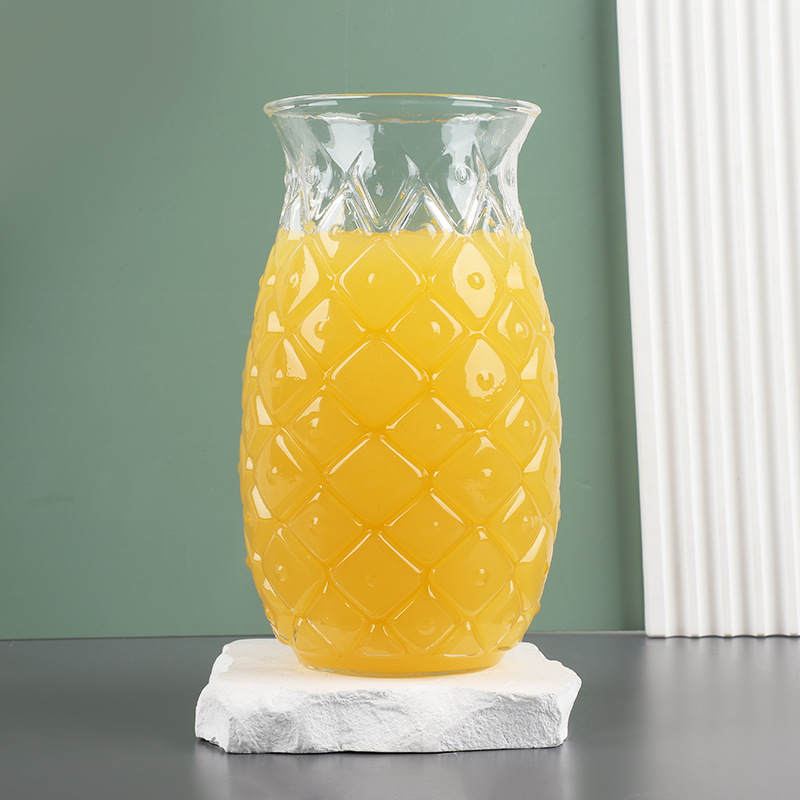 厂家创意菠萝鸡尾酒杯酒吧浮雕鸡尾酒果汁杯玻璃杯调酒菠萝杯水杯