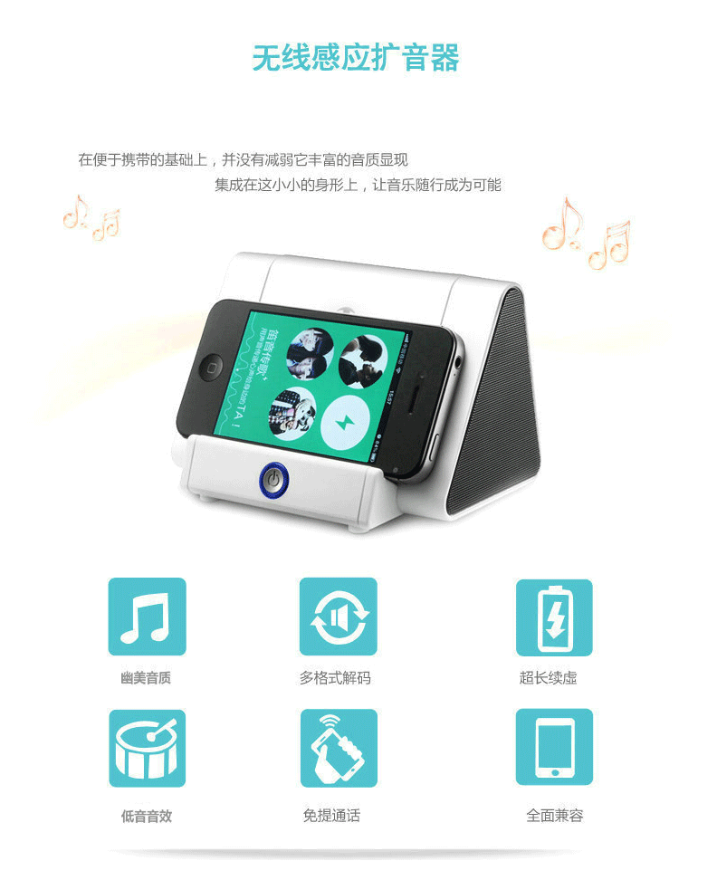 本产品通用大部分新型智能手机机型,只需手机喇叭位置能对在产品感应区内即可使用。