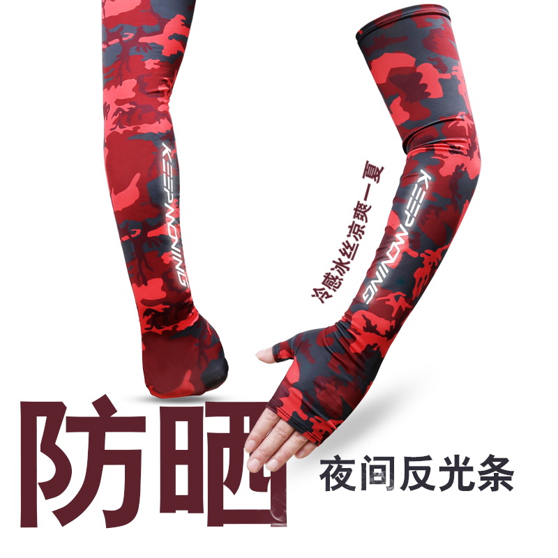春夏户外迷彩凉感防晒手套女骑行护臂防晒冰丝袖套男制厂家自销