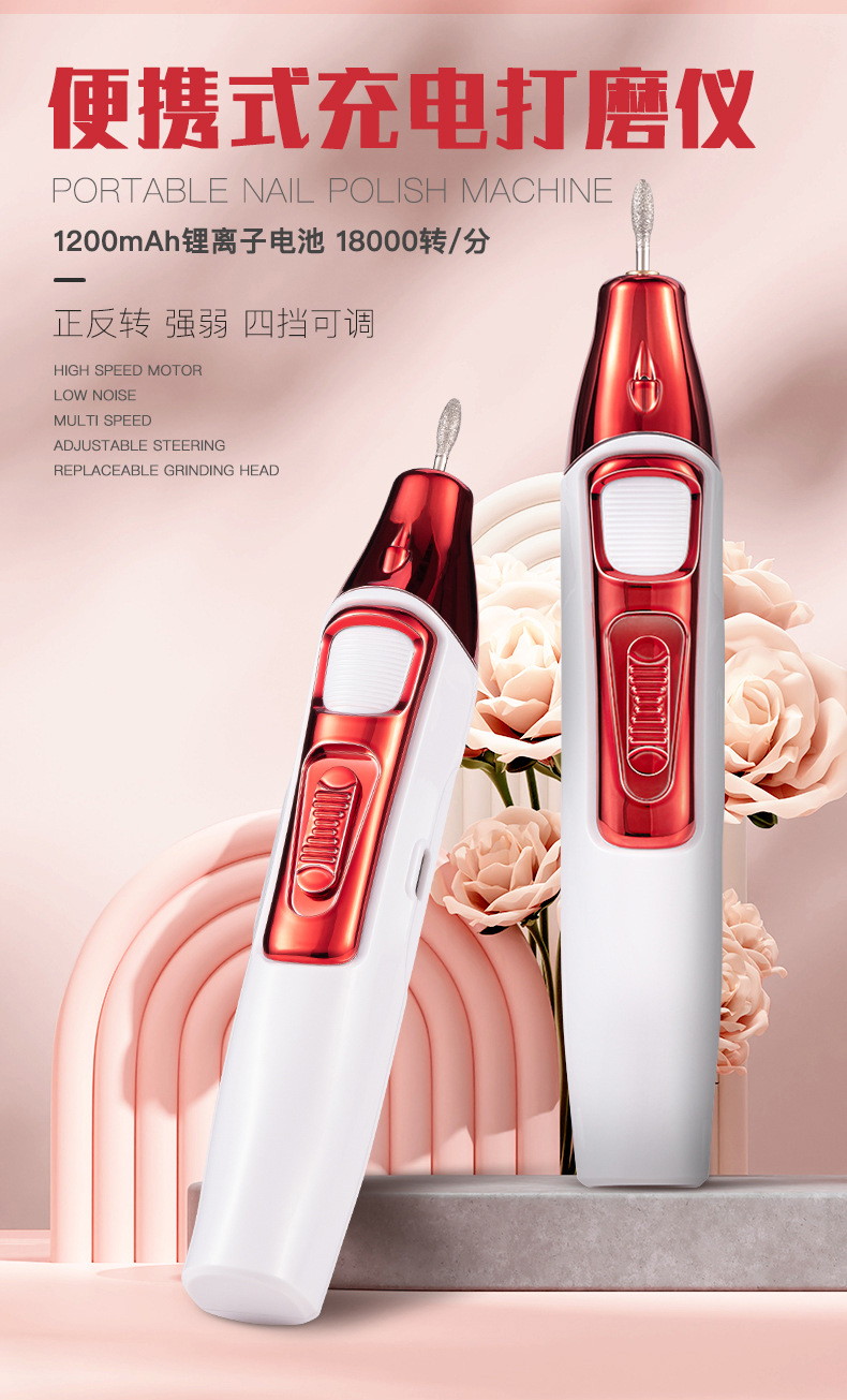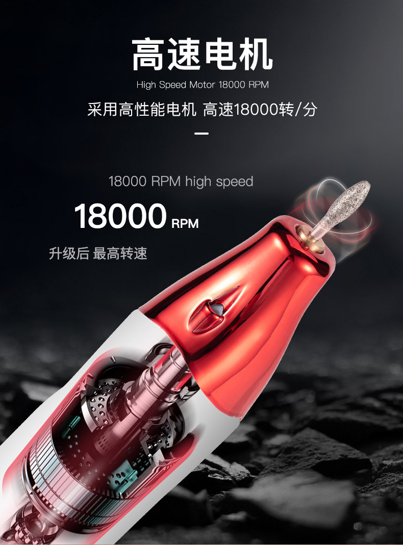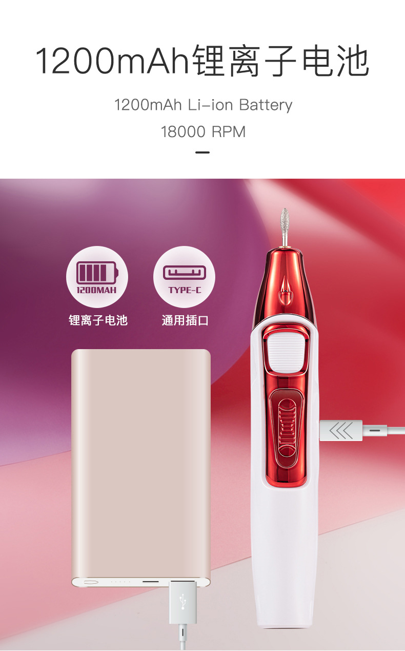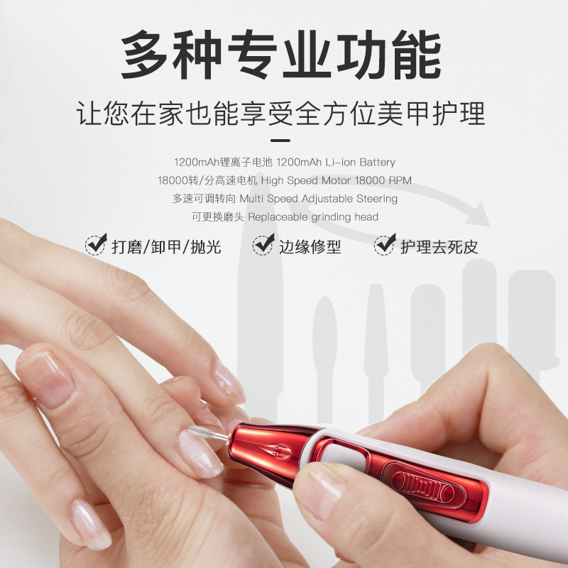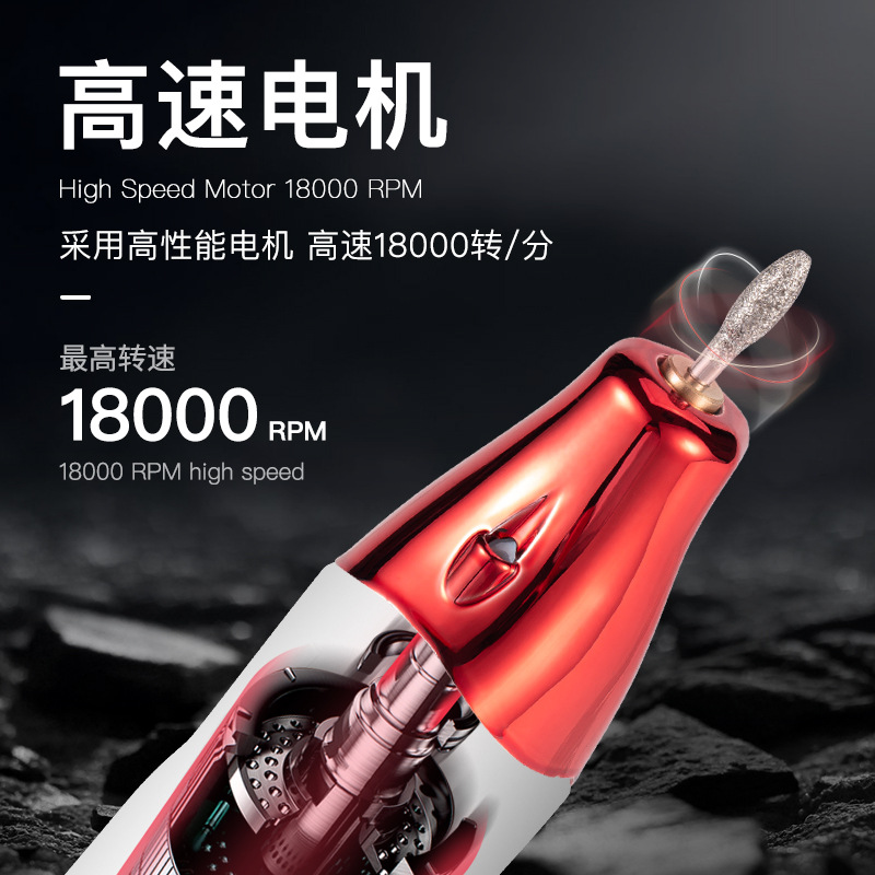 新款充电式美甲打磨机 电动磨甲器去死皮 18000转卸甲机
