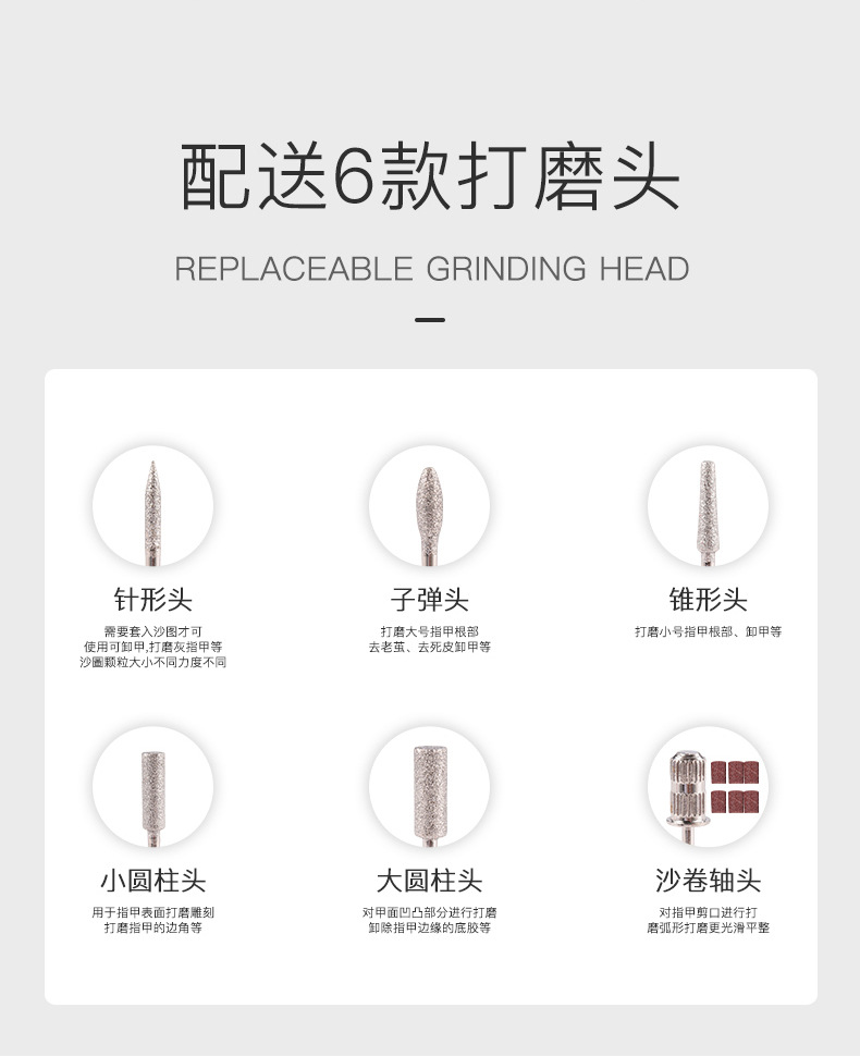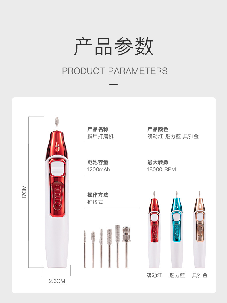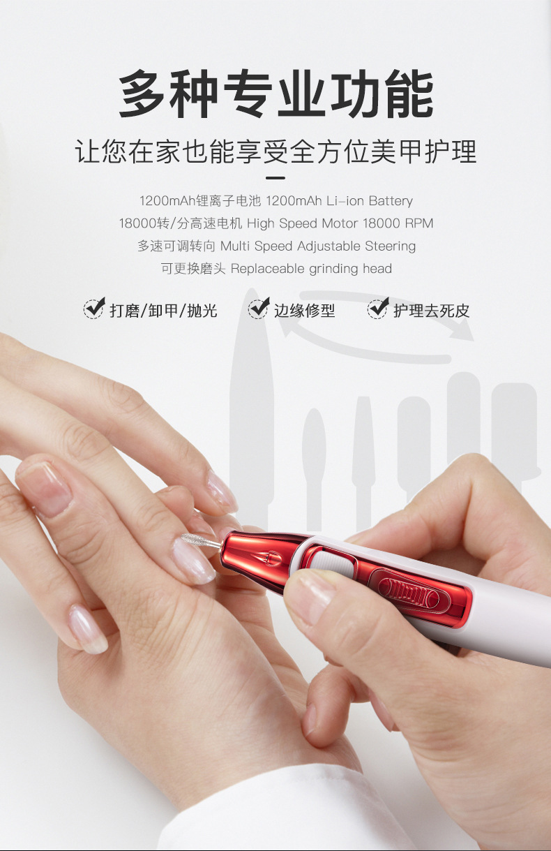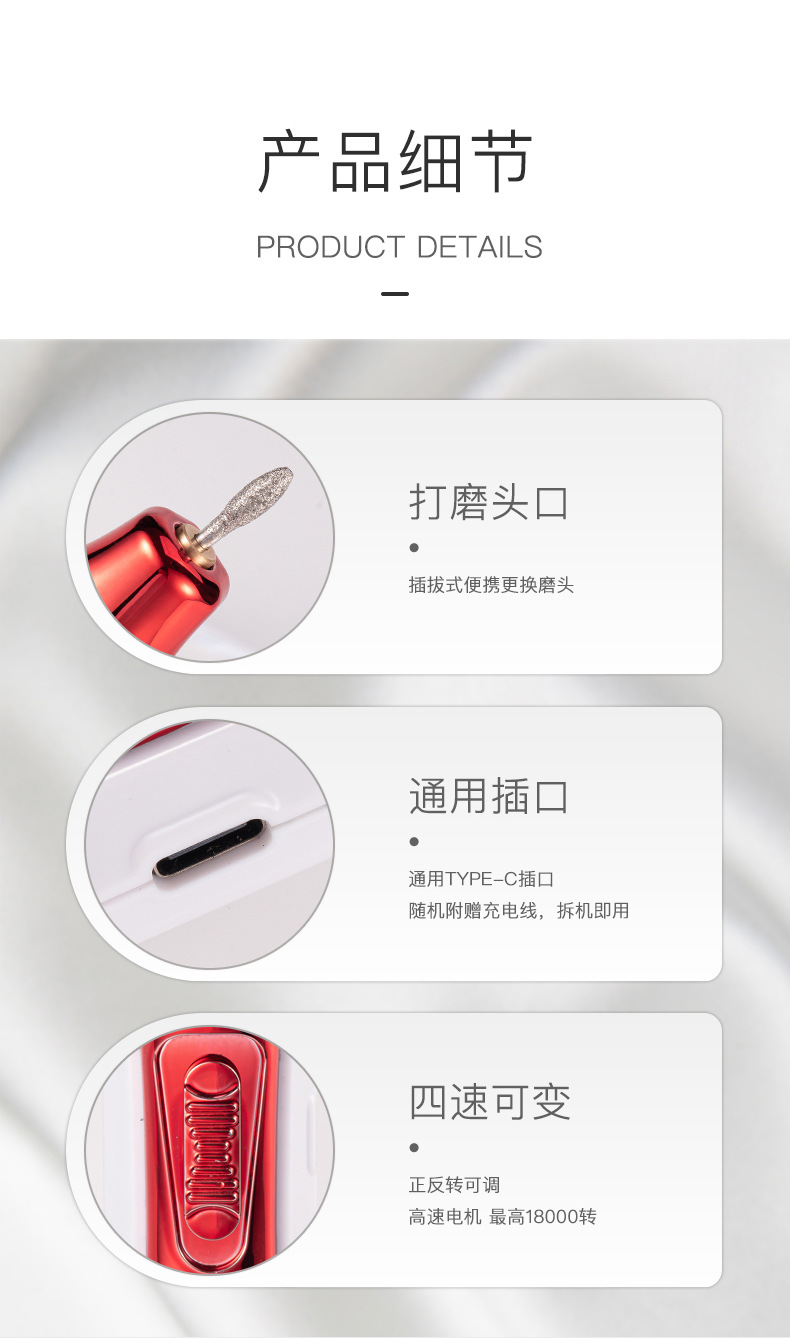 新款充电式美甲打磨机 电动磨甲器去死皮 18000转卸甲机