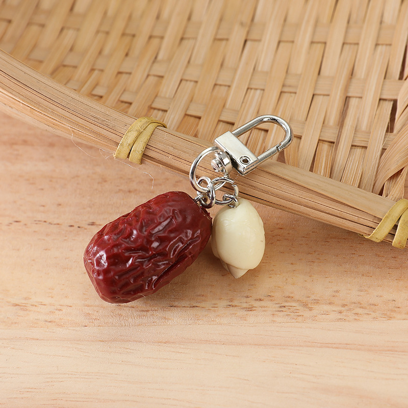 仿真大蒜钥匙扣食物模型挂件辣椒毛豆核桃红枣莲子桔子包包挂件