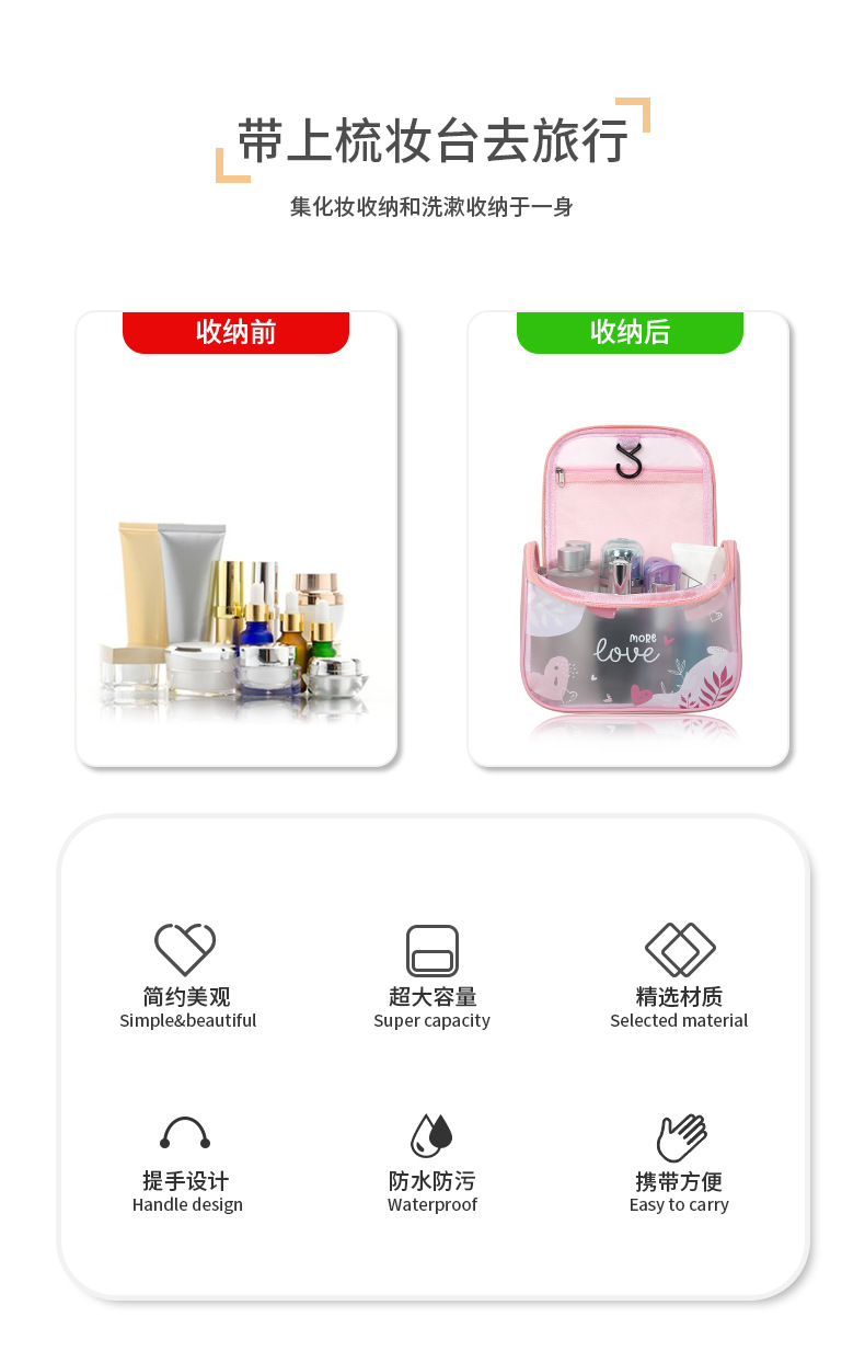 新款简约挂钩大容量化妆品收纳包旅行洗漱包韩版时尚手提化妆包