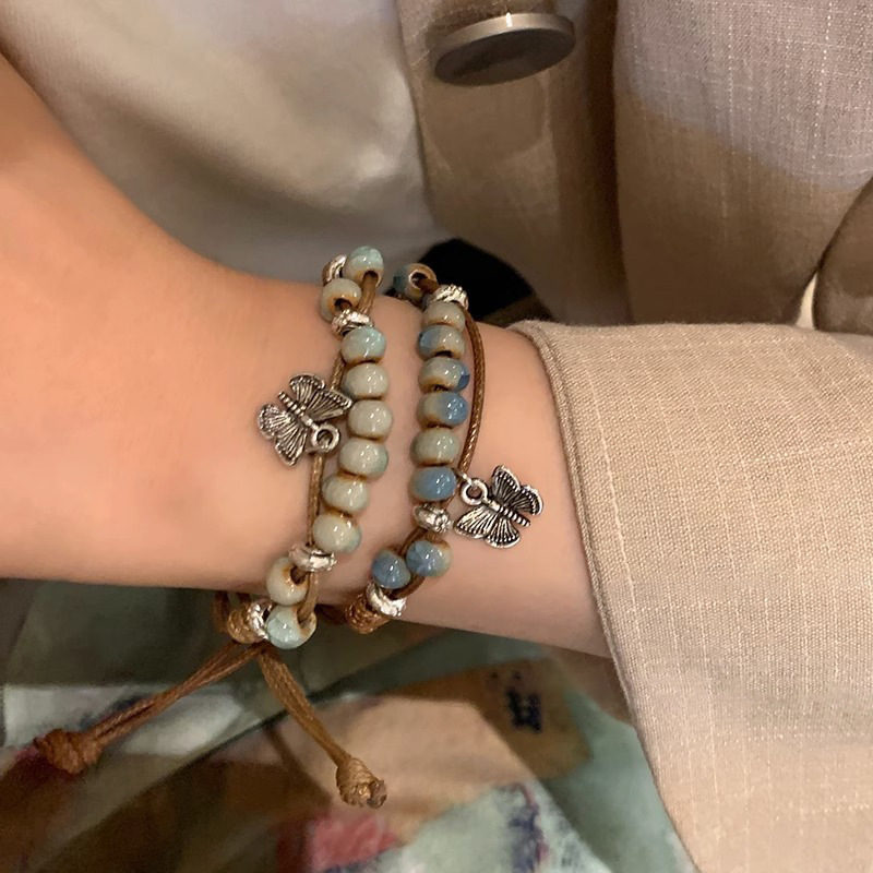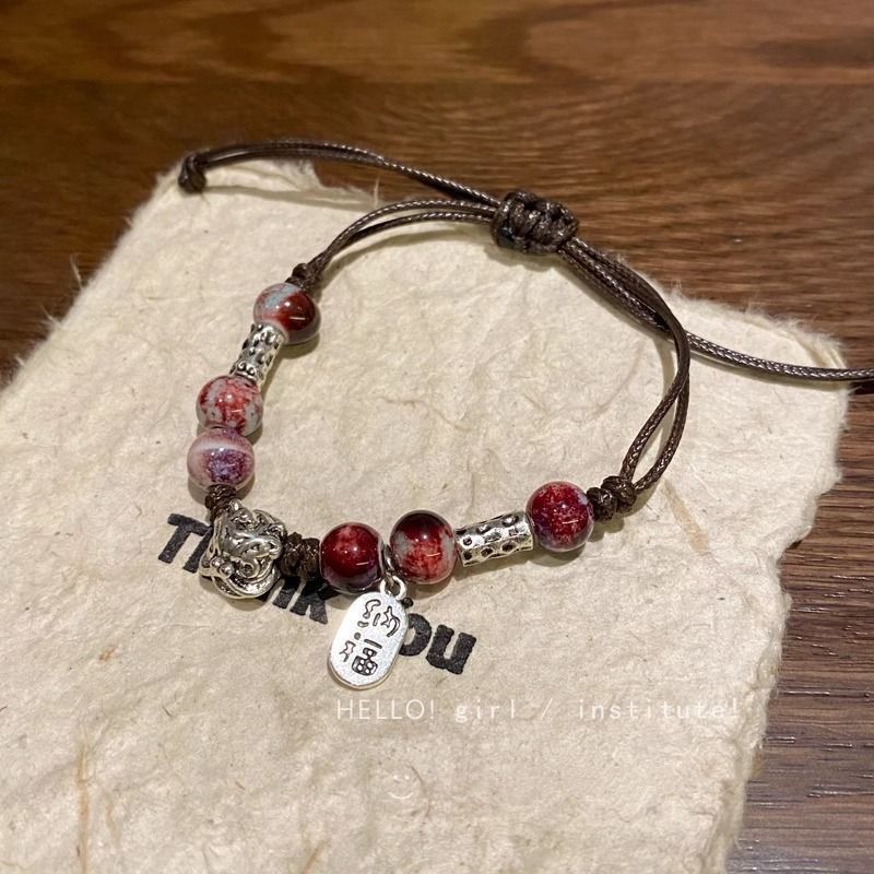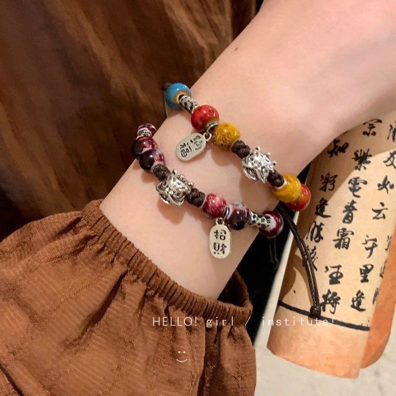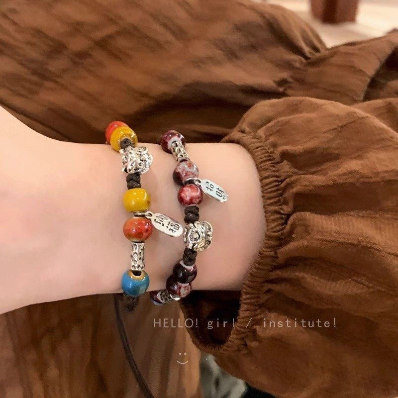 文艺新中式小清新景德镇陶瓷手链复古风国风女学生手串摆摊货源