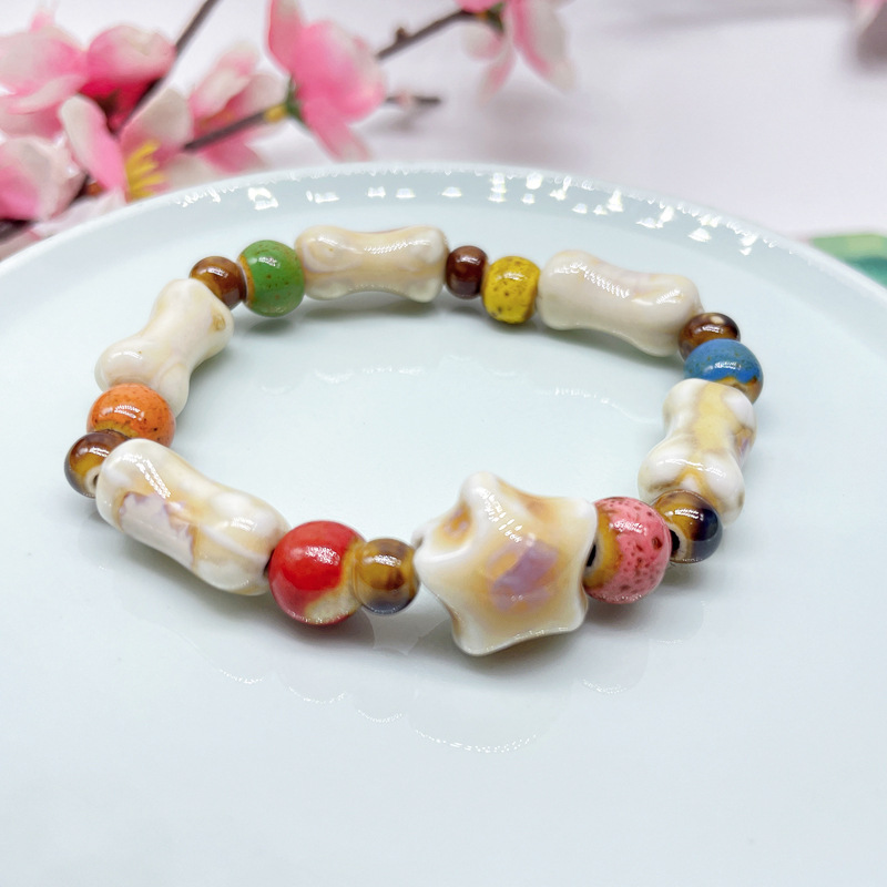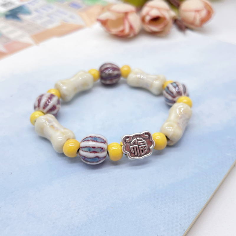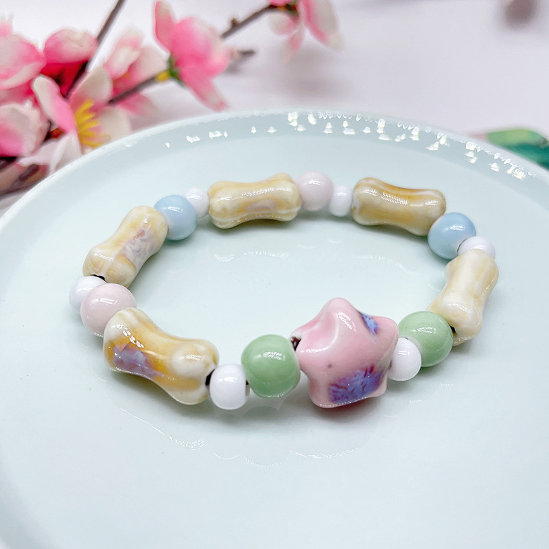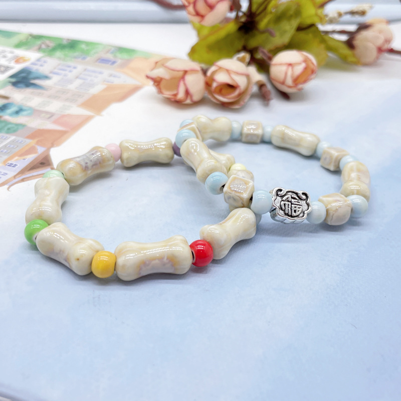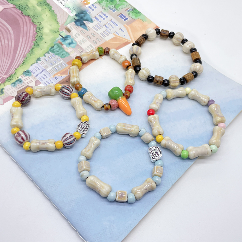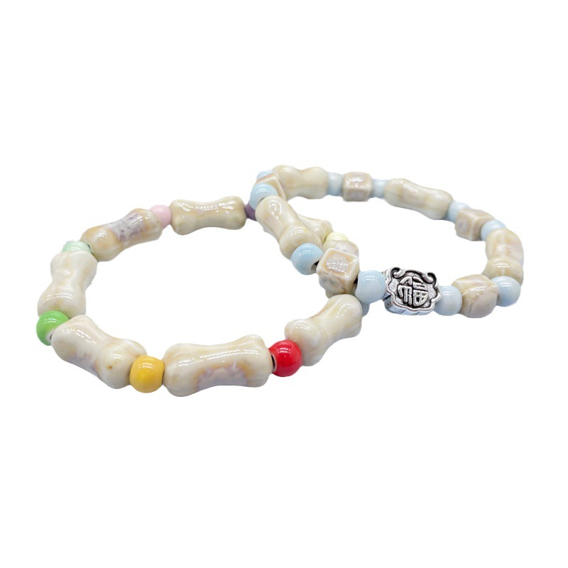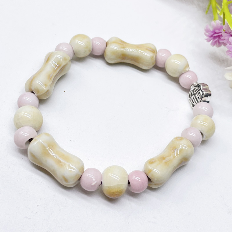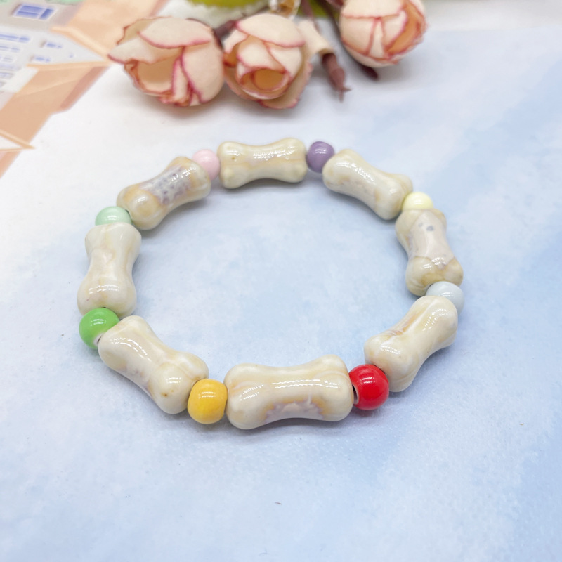 抖音同款手链陶瓷小狗骨头手串文艺时尚新中式学生单圈手链百搭