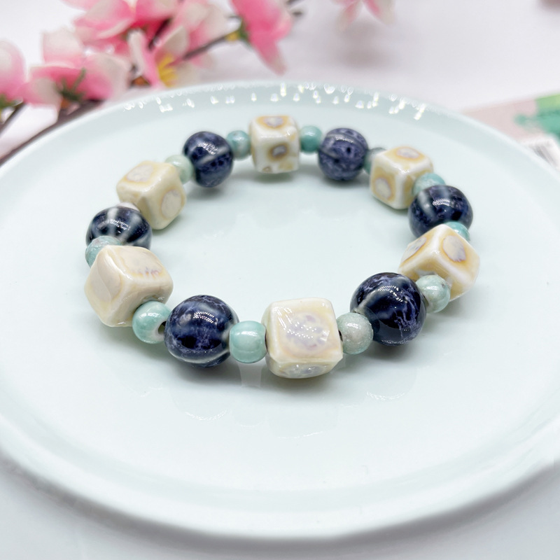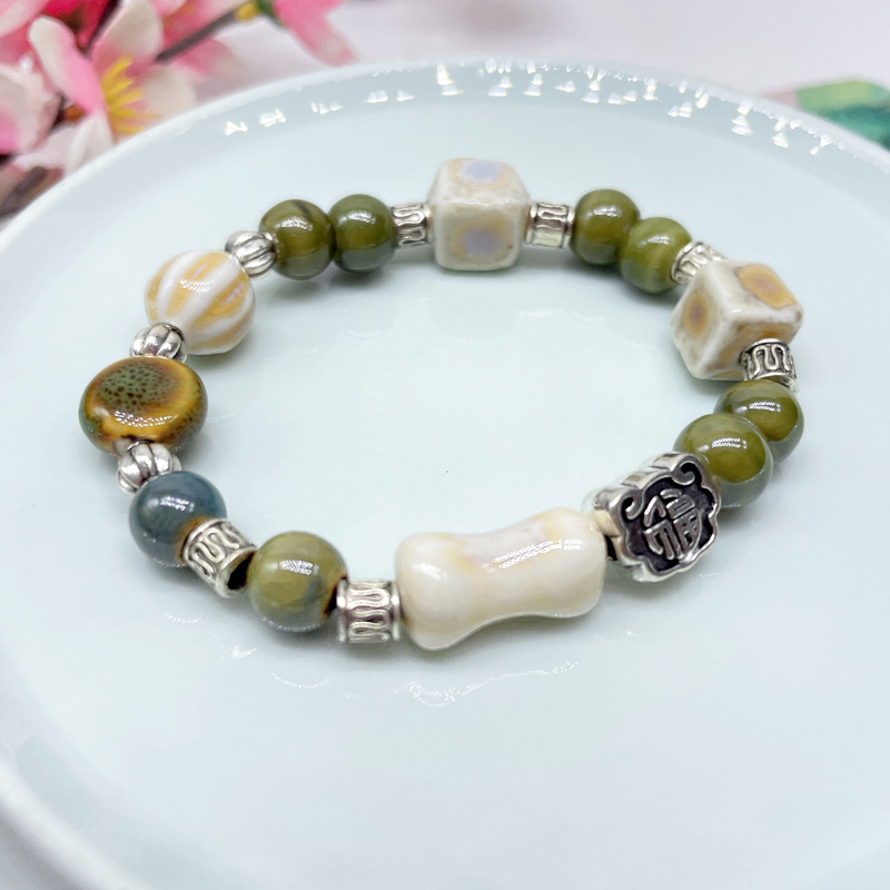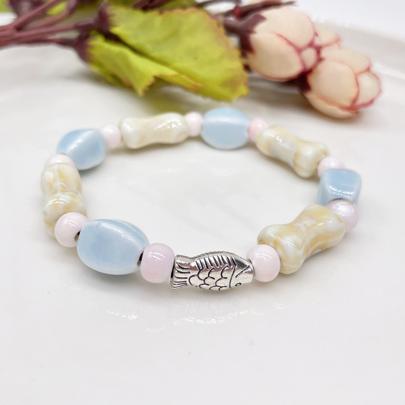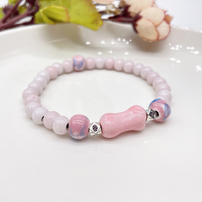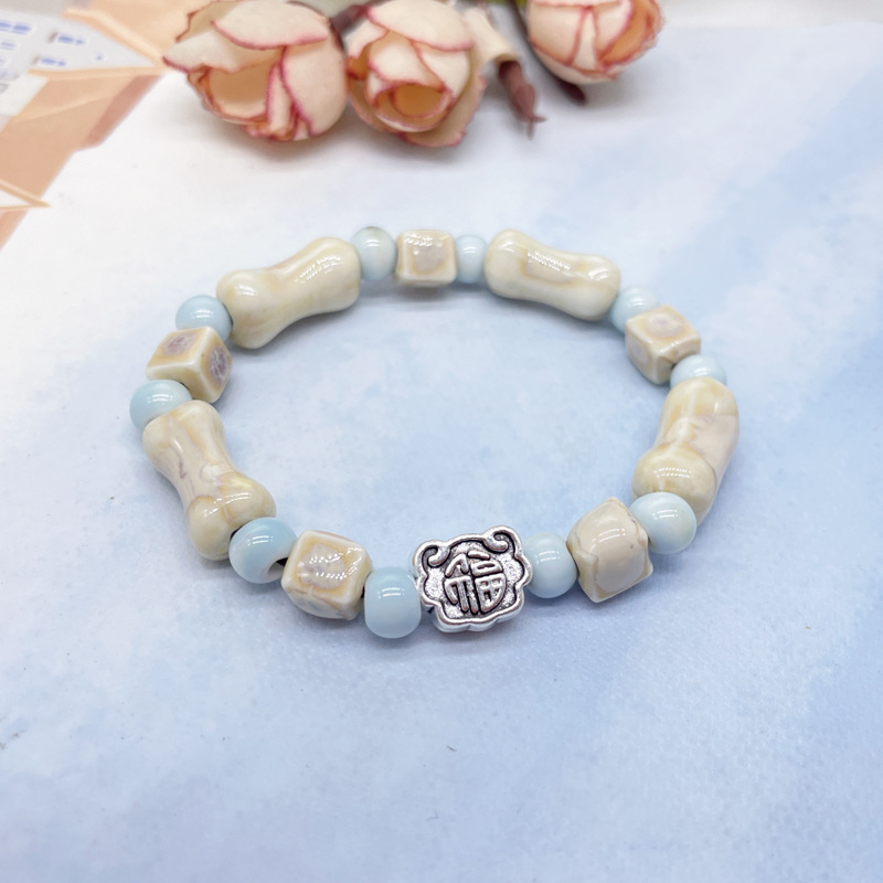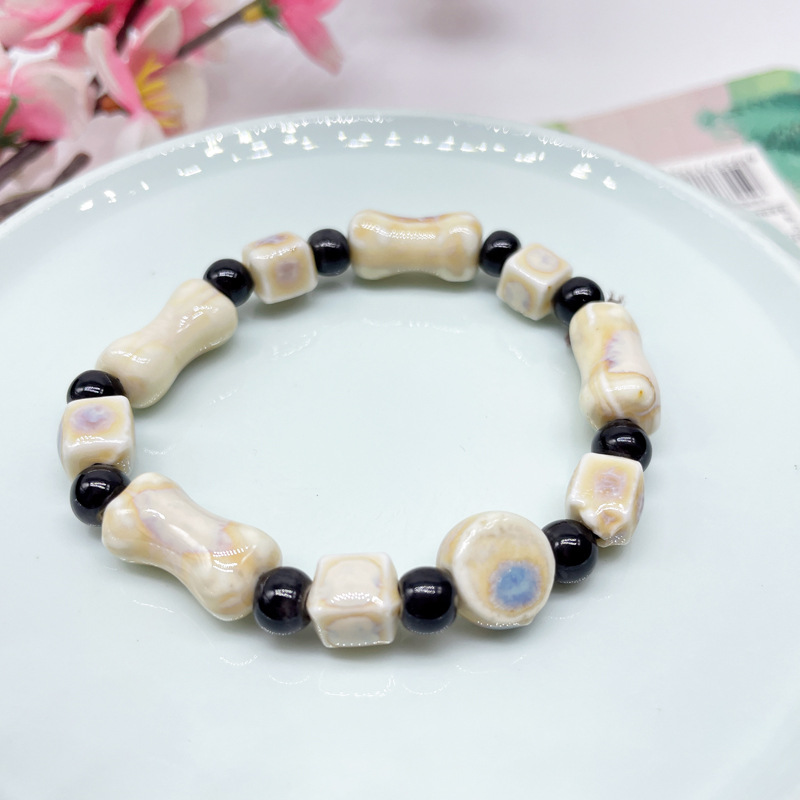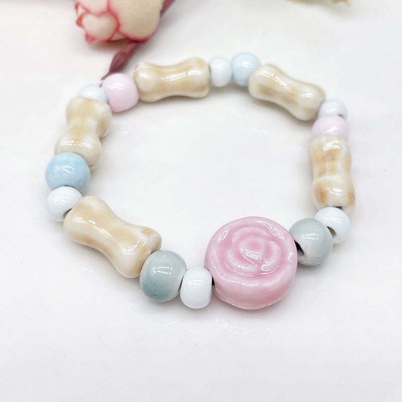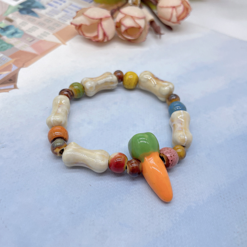 抖音同款手链陶瓷小狗骨头手串文艺时尚新中式学生单圈手链百搭