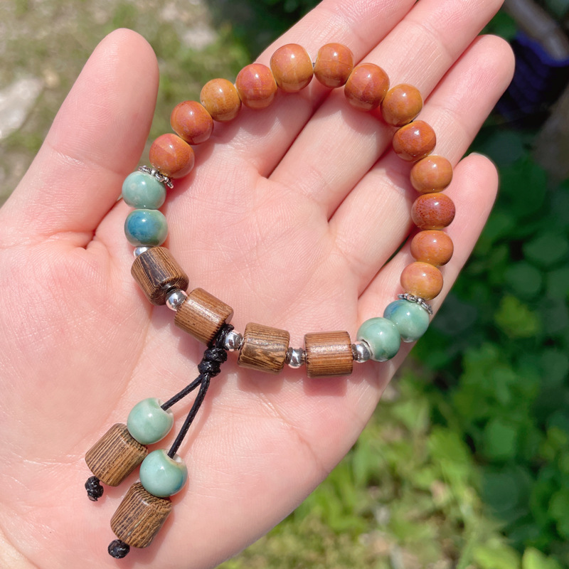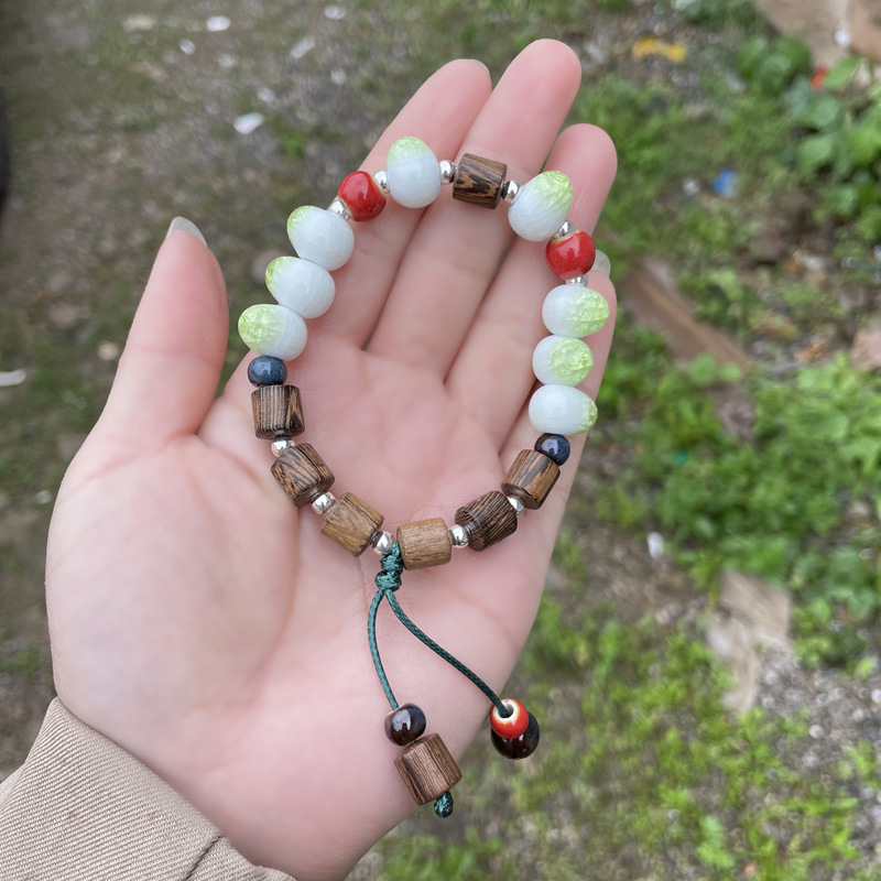2023夏季新款国风手饰新中式民族风陶瓷手链女串珠木质手串