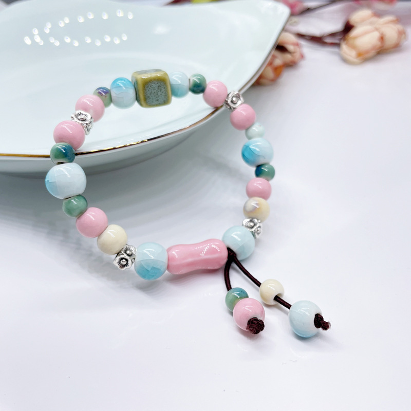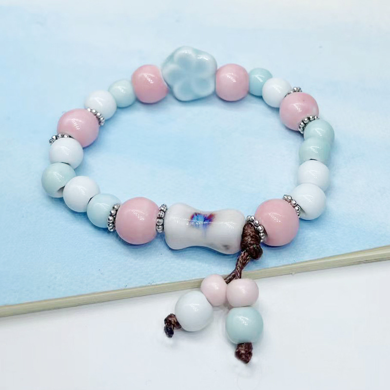可爱陶瓷手链女2023年新款弹力绳学生闺蜜卡通手饰串珠小骨头手串