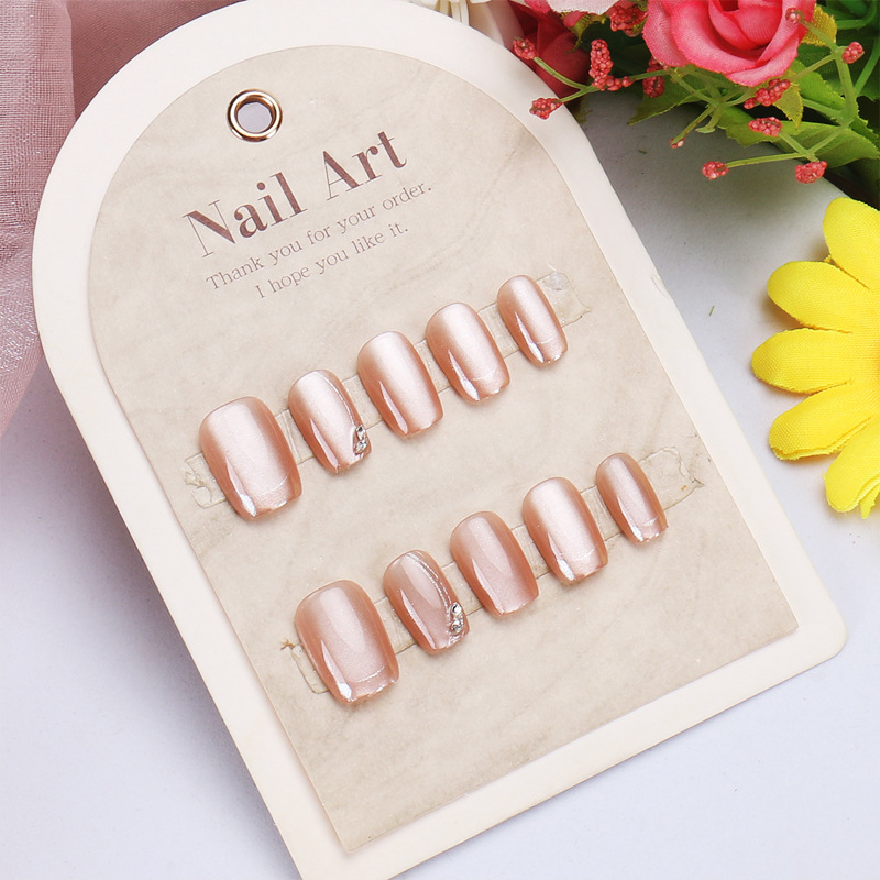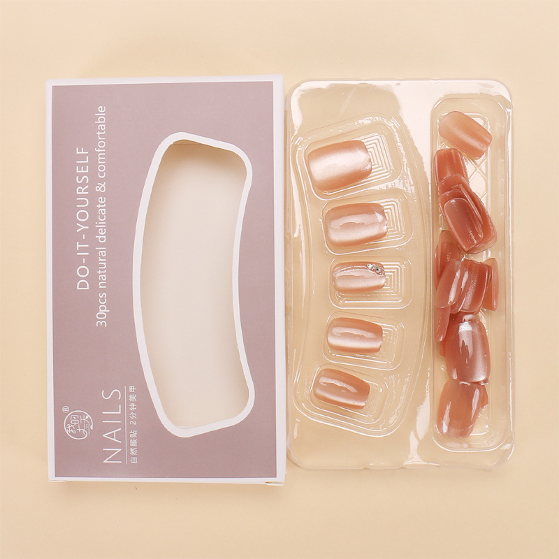 美甲贴片穿戴甲夏季短款猫眼水钻手工甲片可拆卸假指甲片新品30片