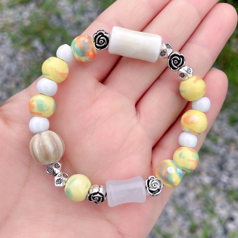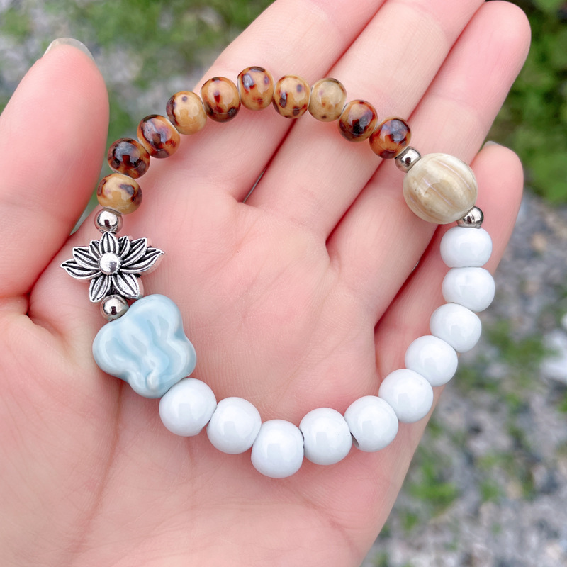 新中式陶瓷串珠手链民族风单层手串复古弹力国潮汉服古风小众礼物