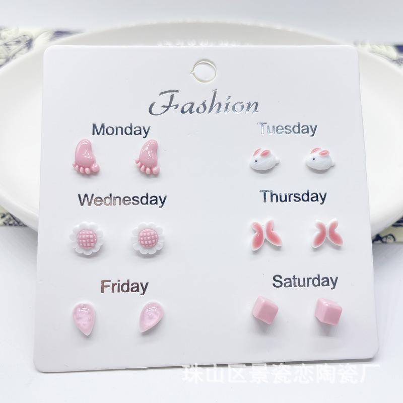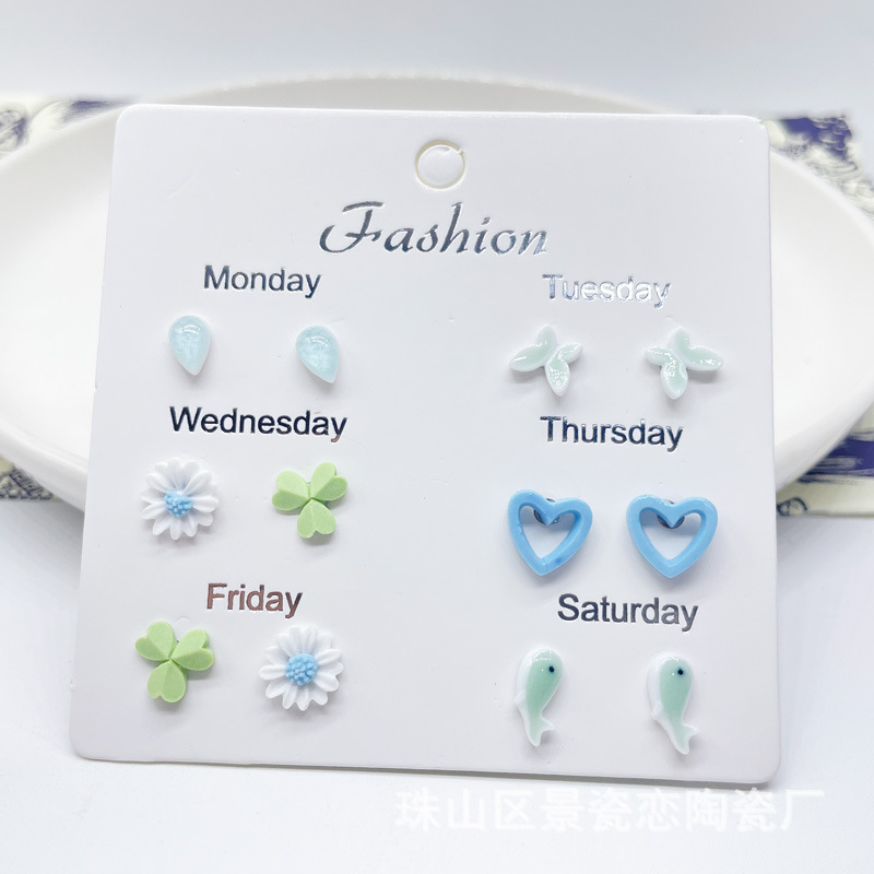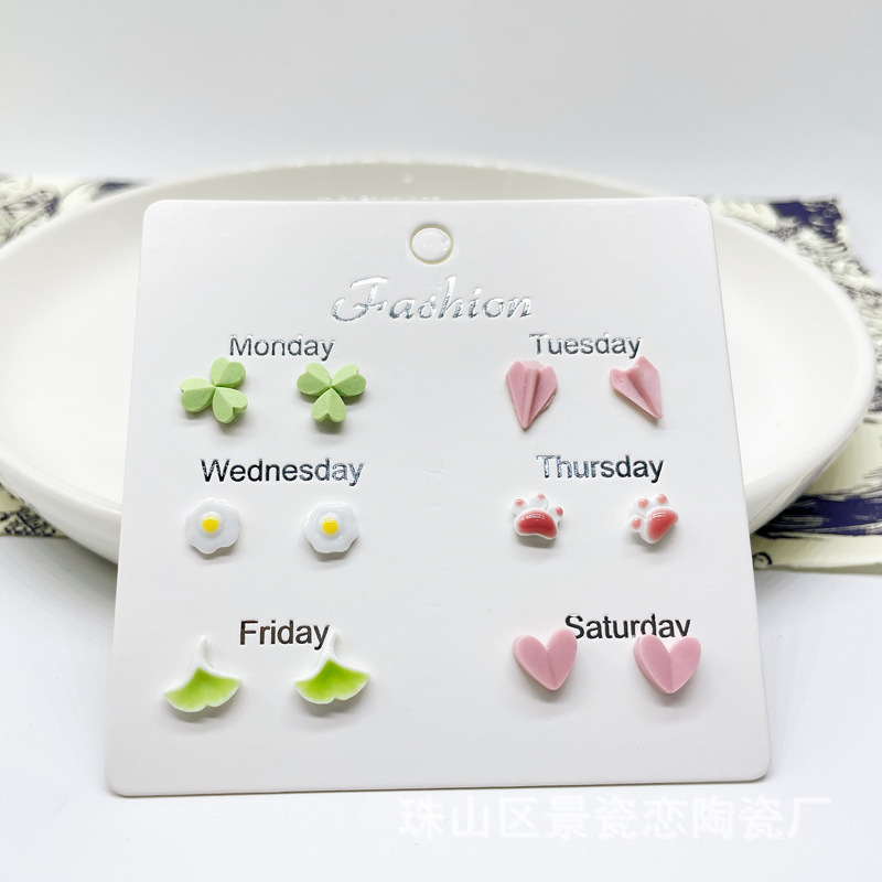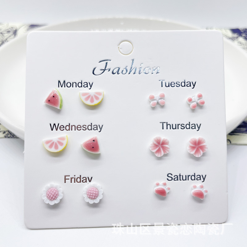 卡通可爱学生耳饰景德镇陶瓷耳钉女迷你原创养耳洞小众设计感夏季