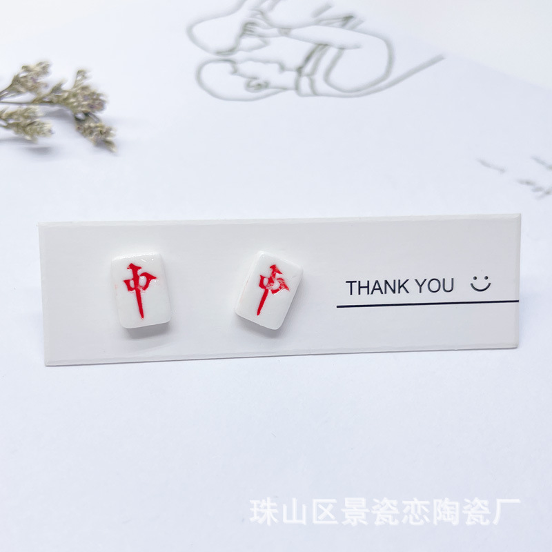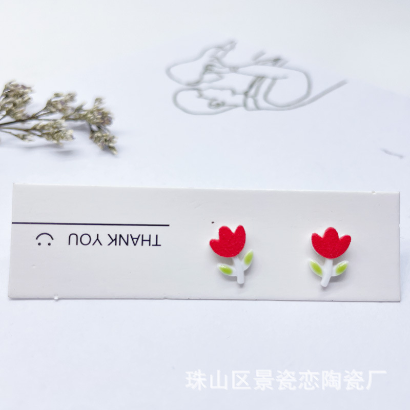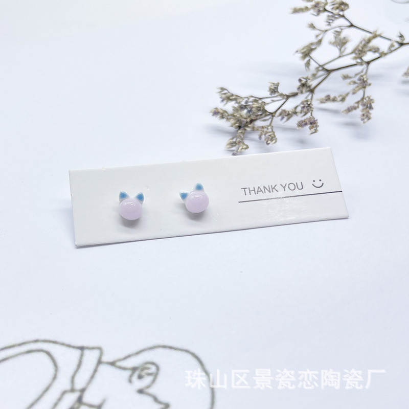 景瓷国风小清新手工景德镇陶瓷耳钉ins风少女学生文艺猫爪耳饰品