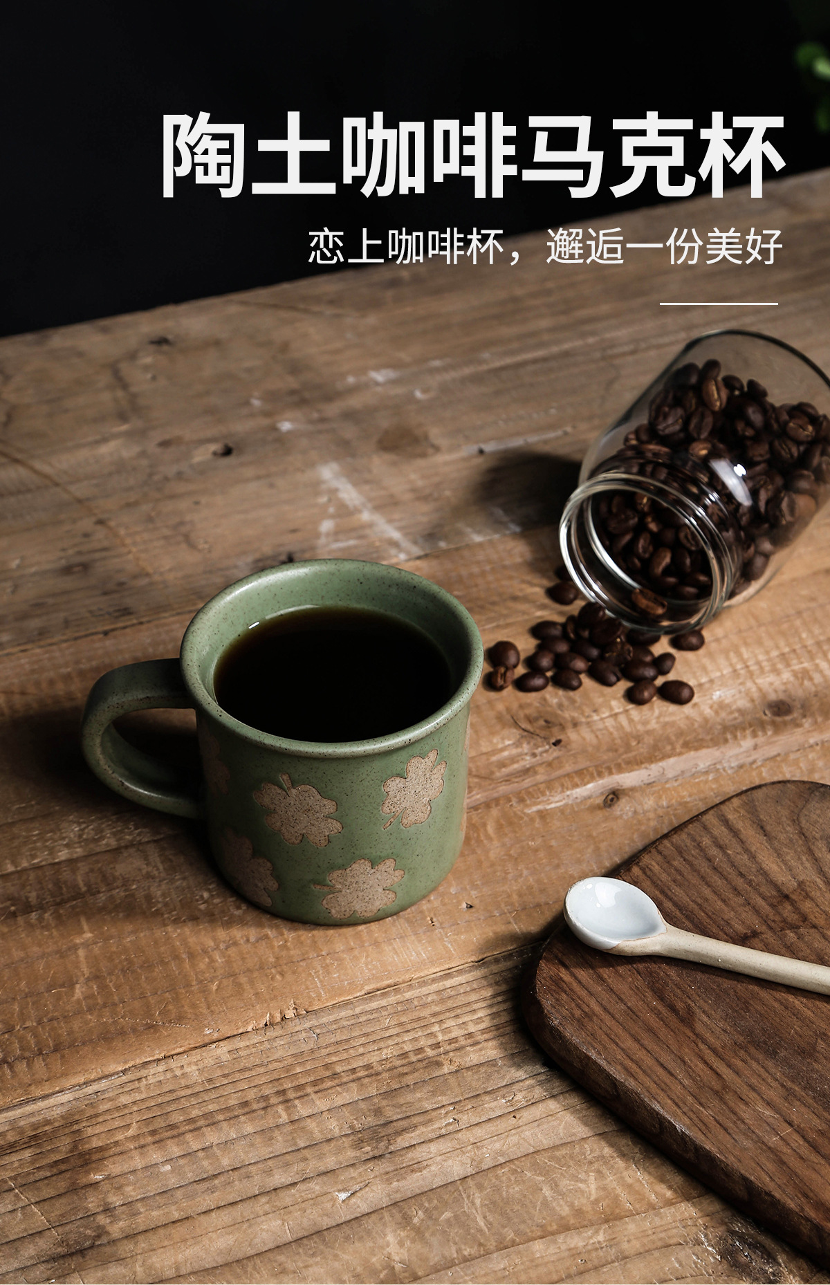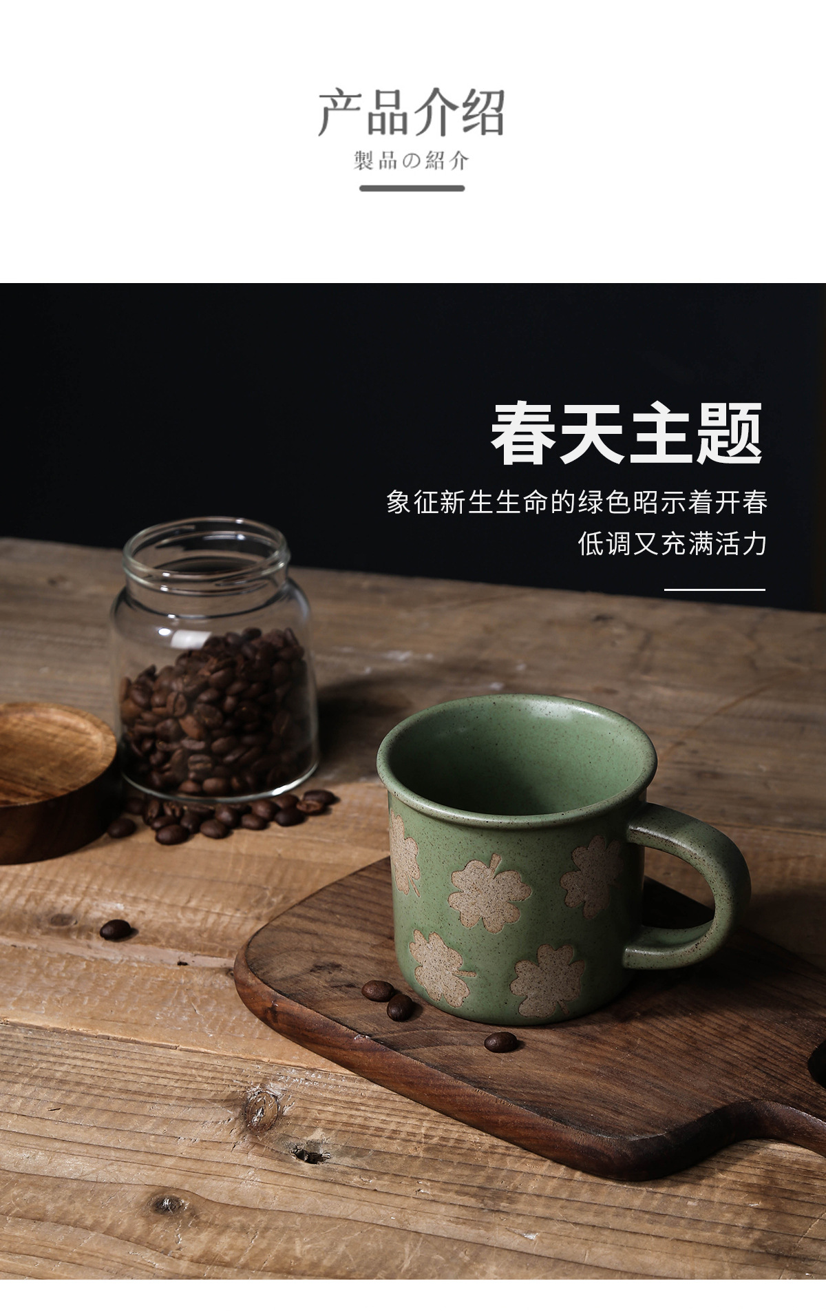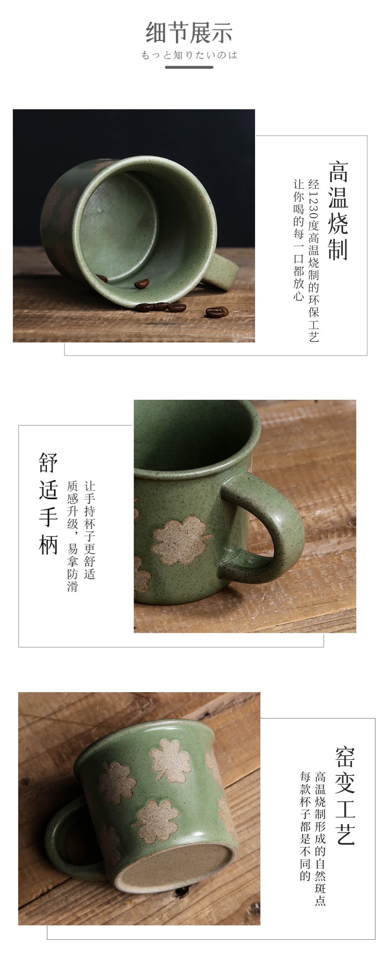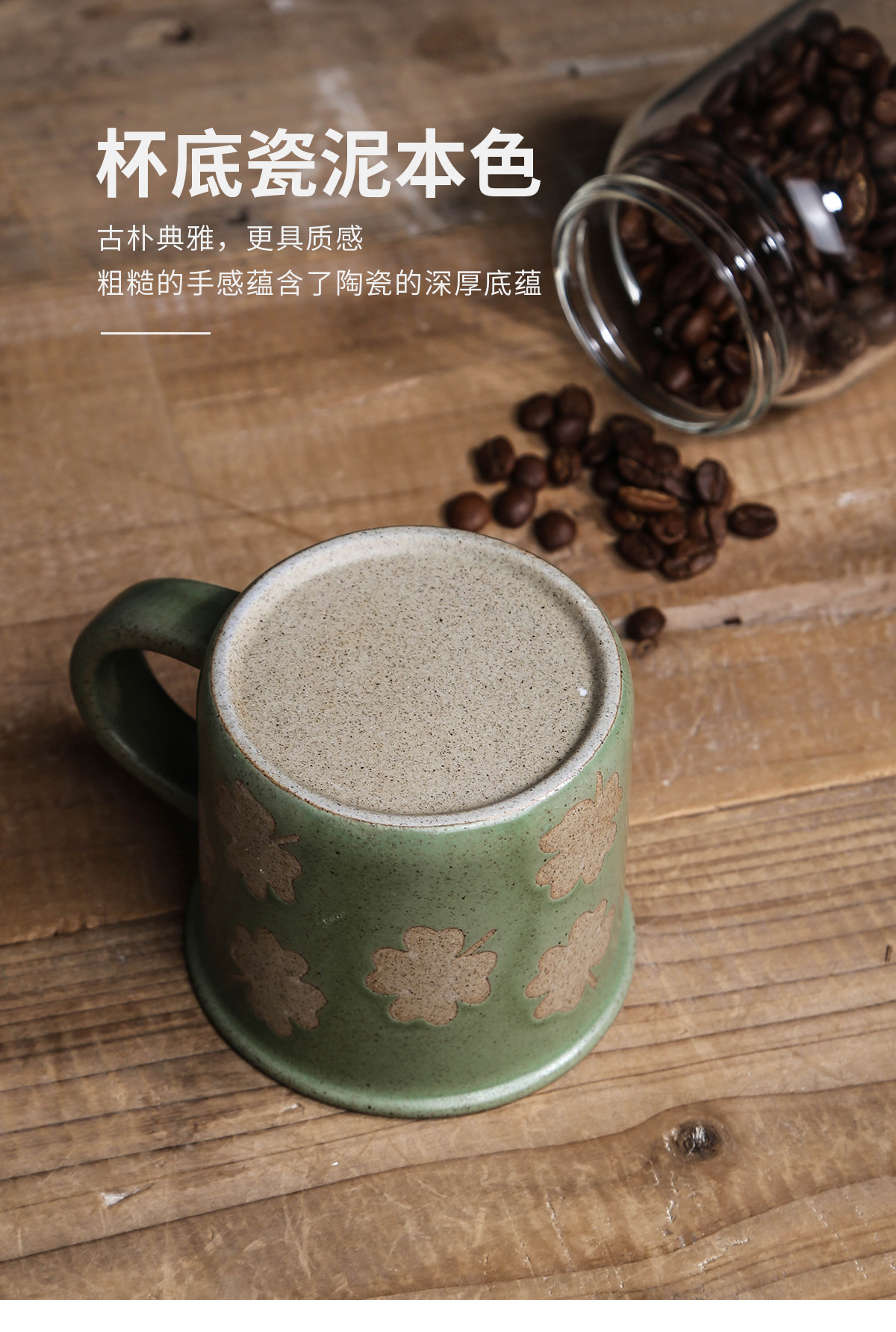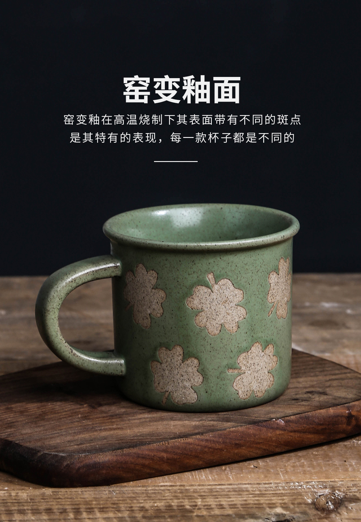 粗陶咖啡杯 复古陶瓷马克杯小号ins芝麻釉四叶草绿色窑变早餐杯子