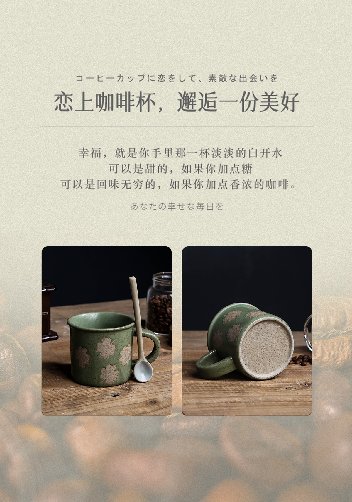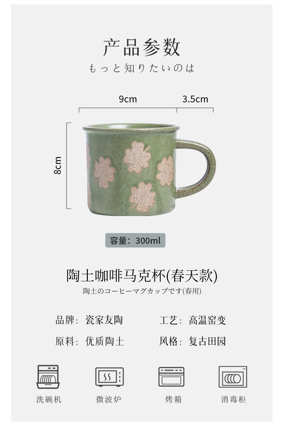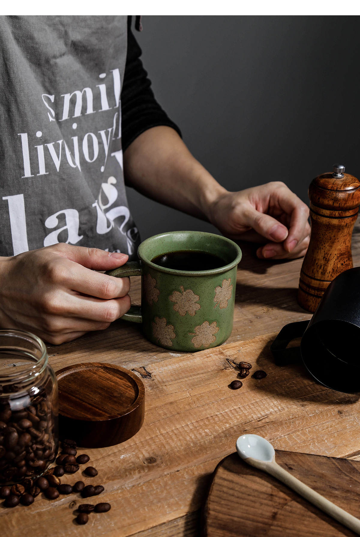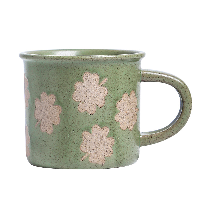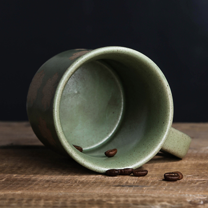 粗陶咖啡杯 复古陶瓷马克杯小号ins芝麻釉四叶草绿色窑变早餐杯子