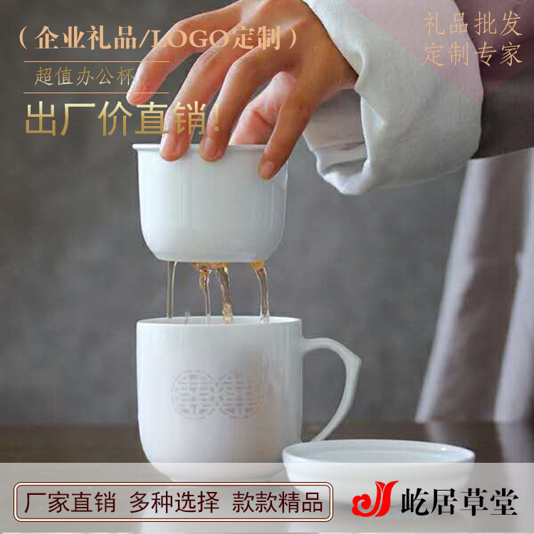 带漏办公杯茶杯景德镇陶瓷杯子玲珑镂空杯子支持定制水杯