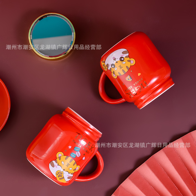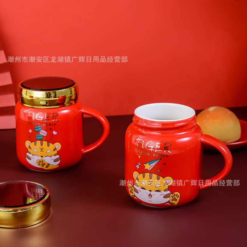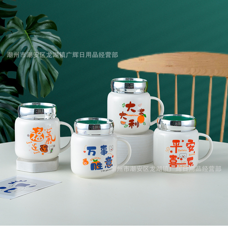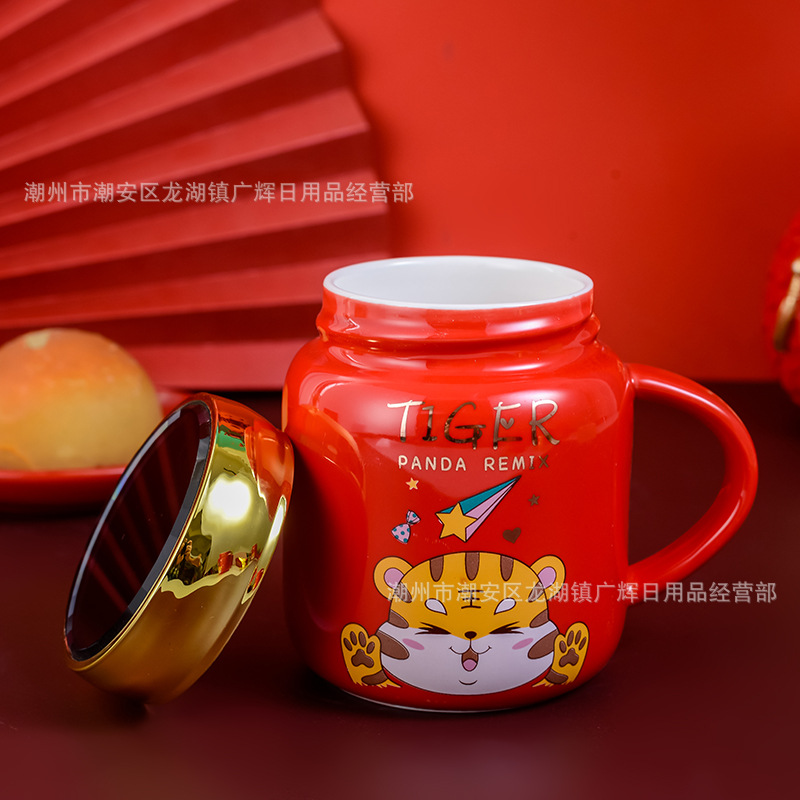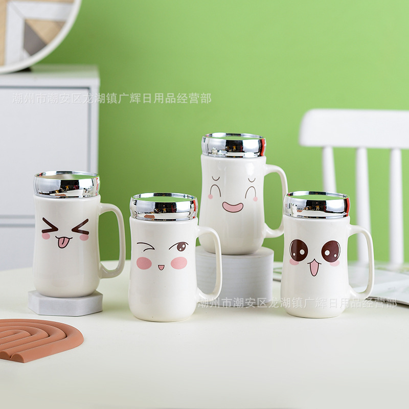 创意陶瓷杯镜面杯马克杯家用办公室水杯卡通杯子开业活动地摊礼物