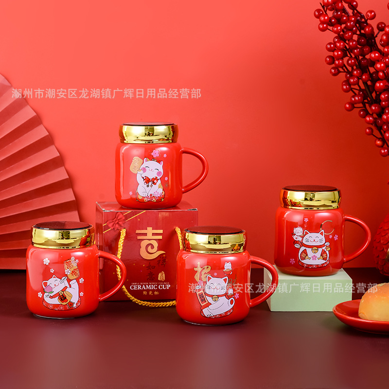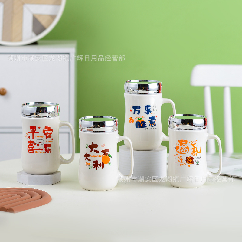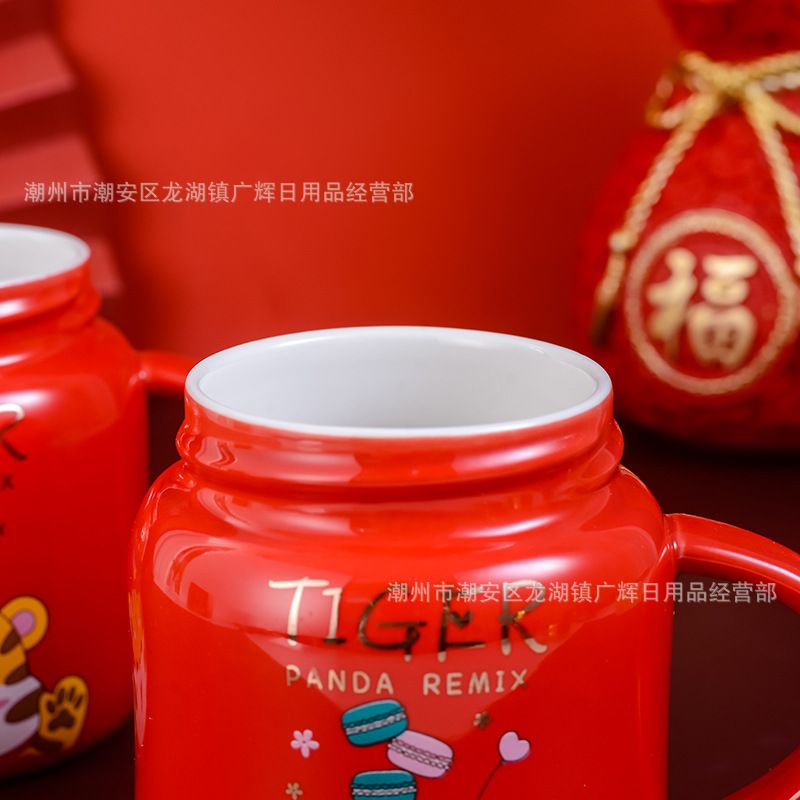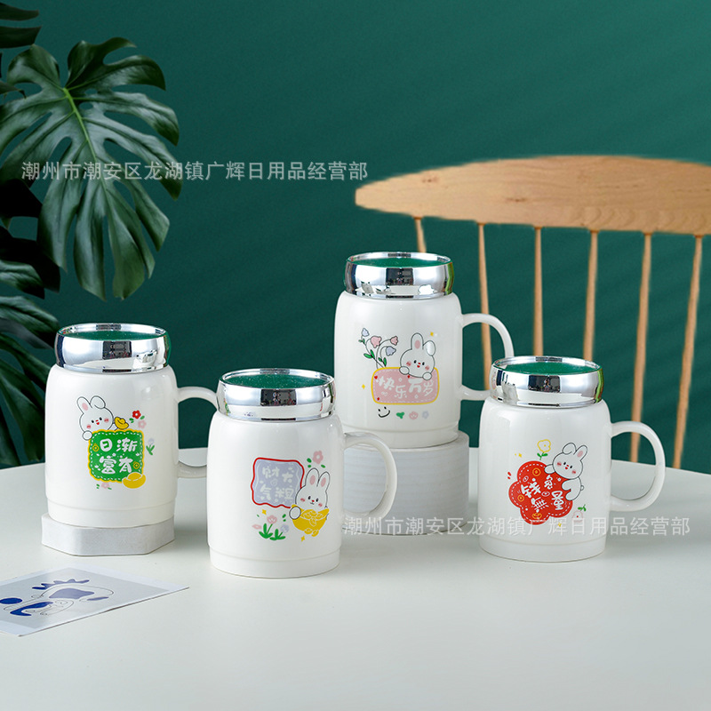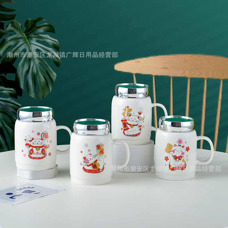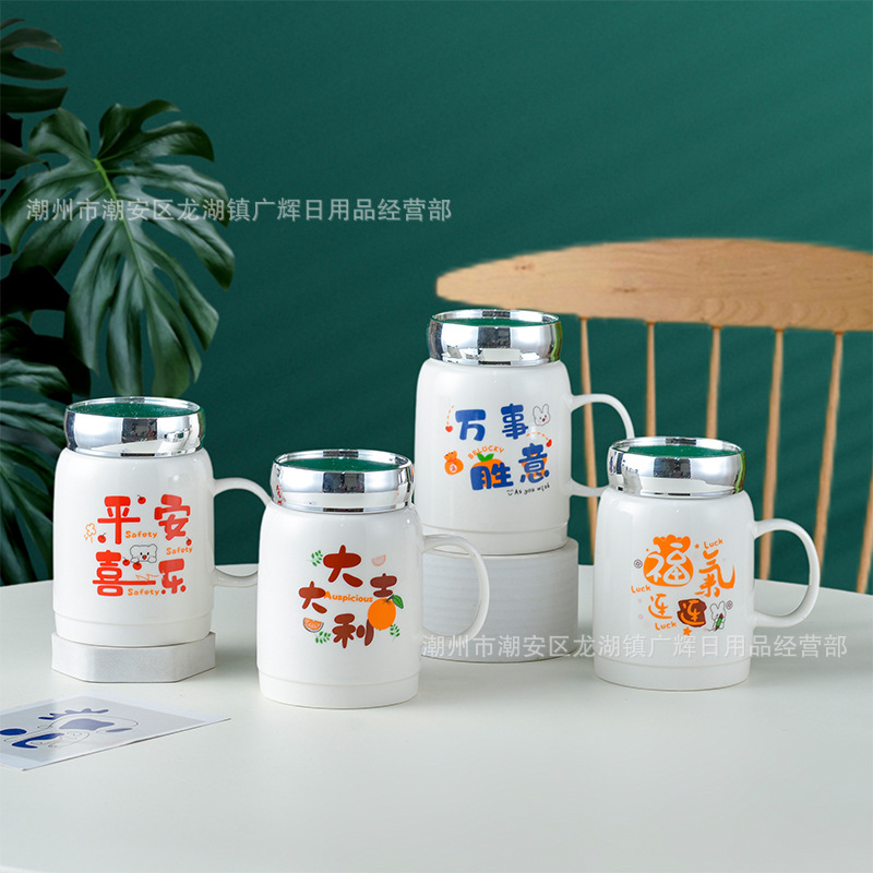 创意陶瓷杯镜面杯马克杯家用办公室水杯卡通杯子开业活动地摊礼物