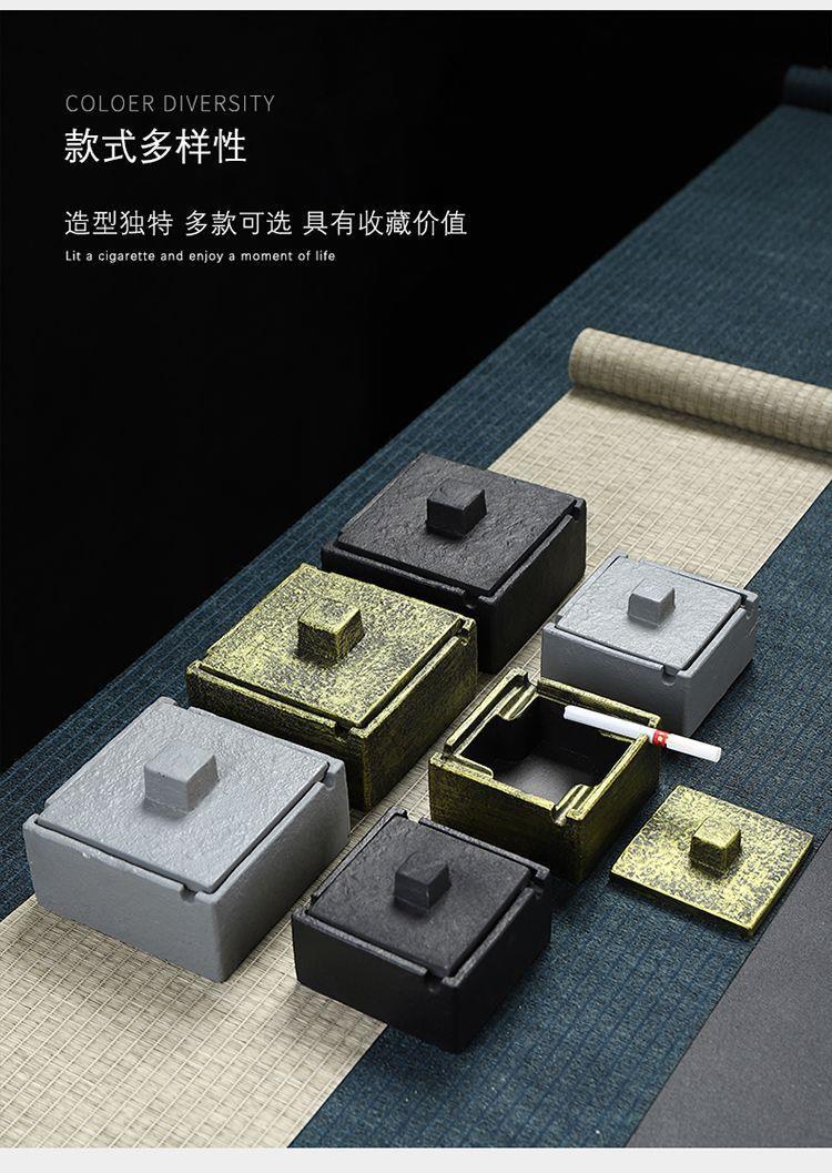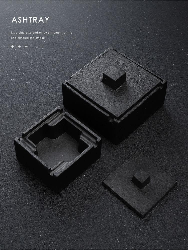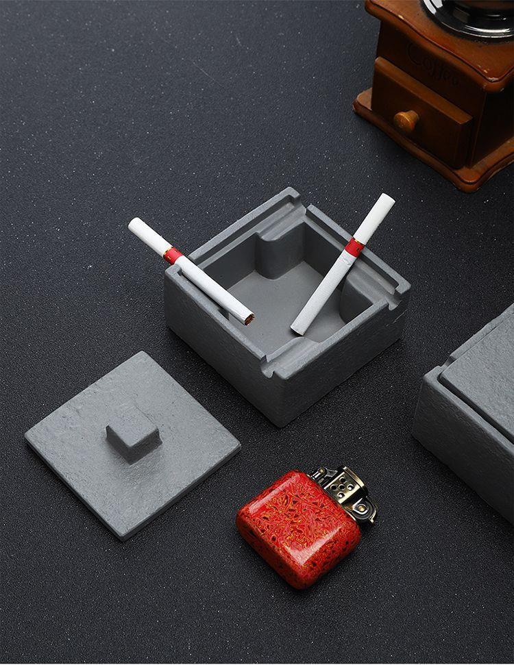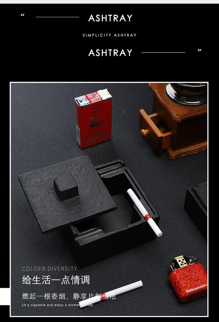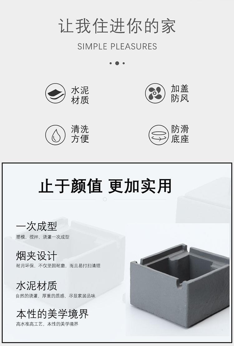 简约个性创意酒店客厅水泥方形烟灰缸家用客厅简约北欧带盖烟灰缸