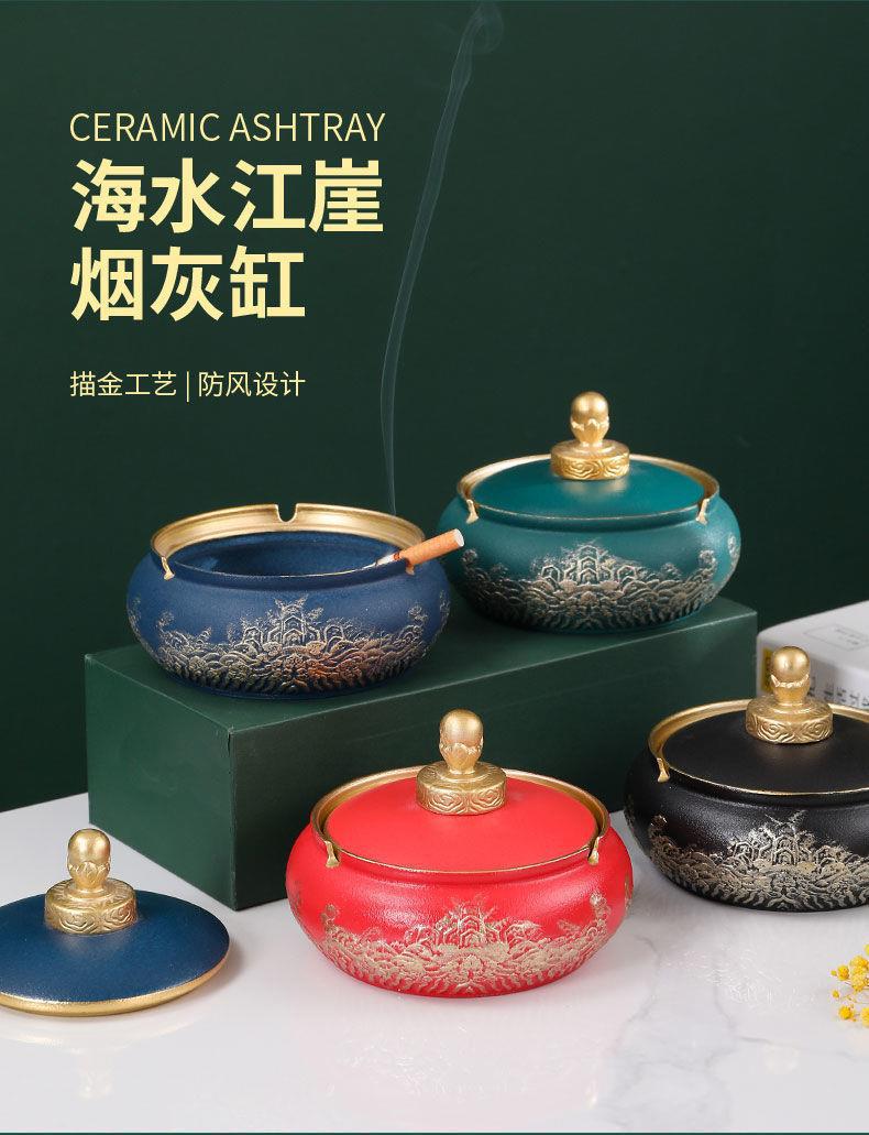 烟灰缸创意个性大号复古新中式陶瓷烟缸家用客厅办公室潮流烟灰缸