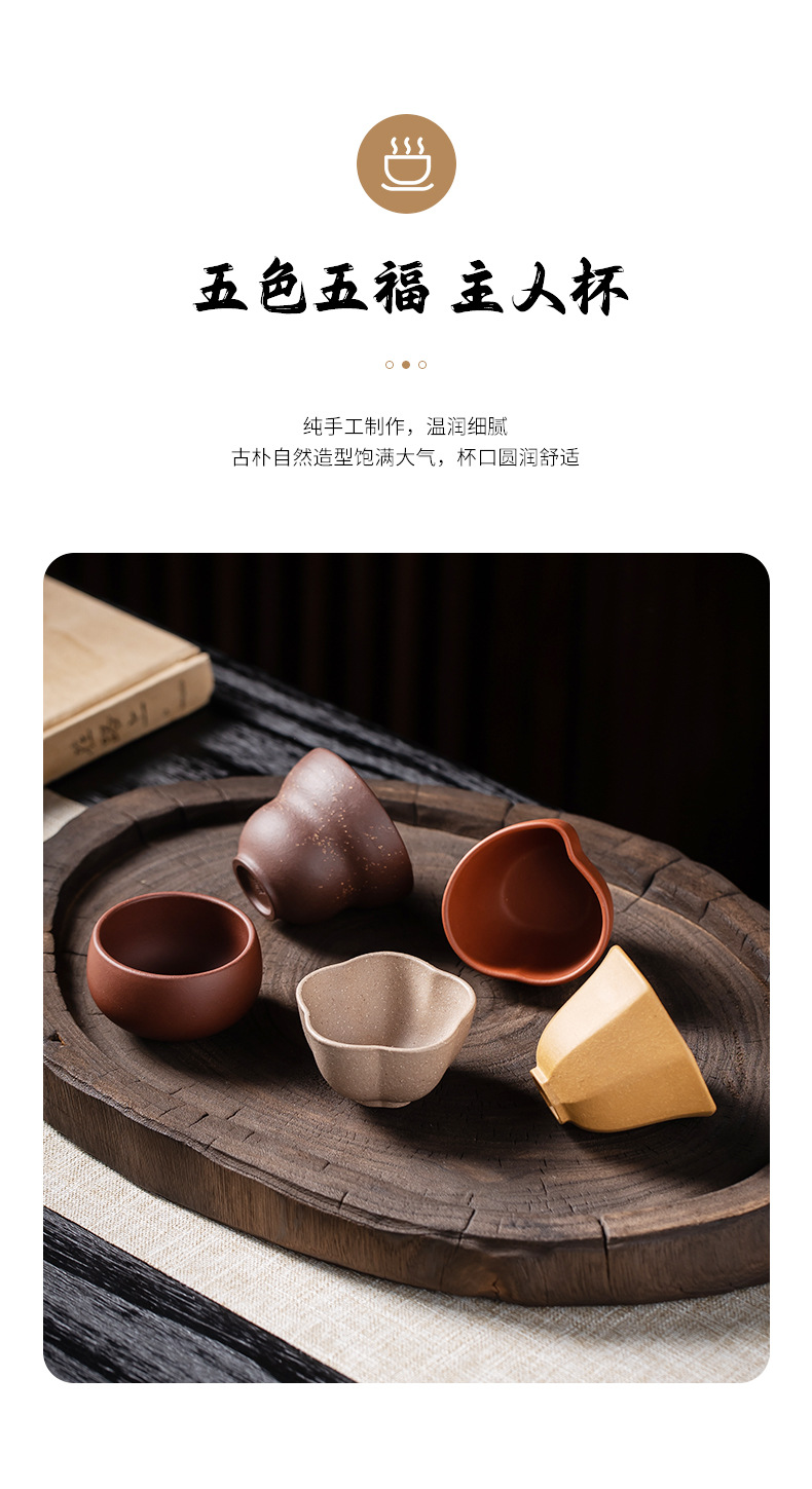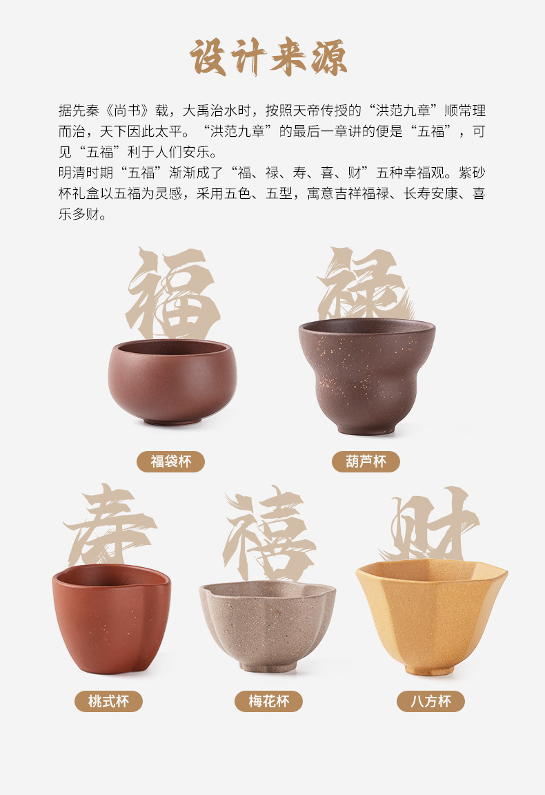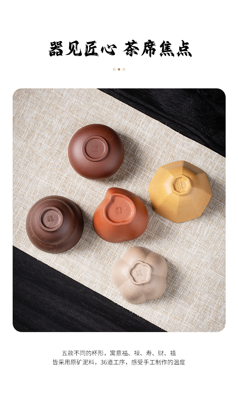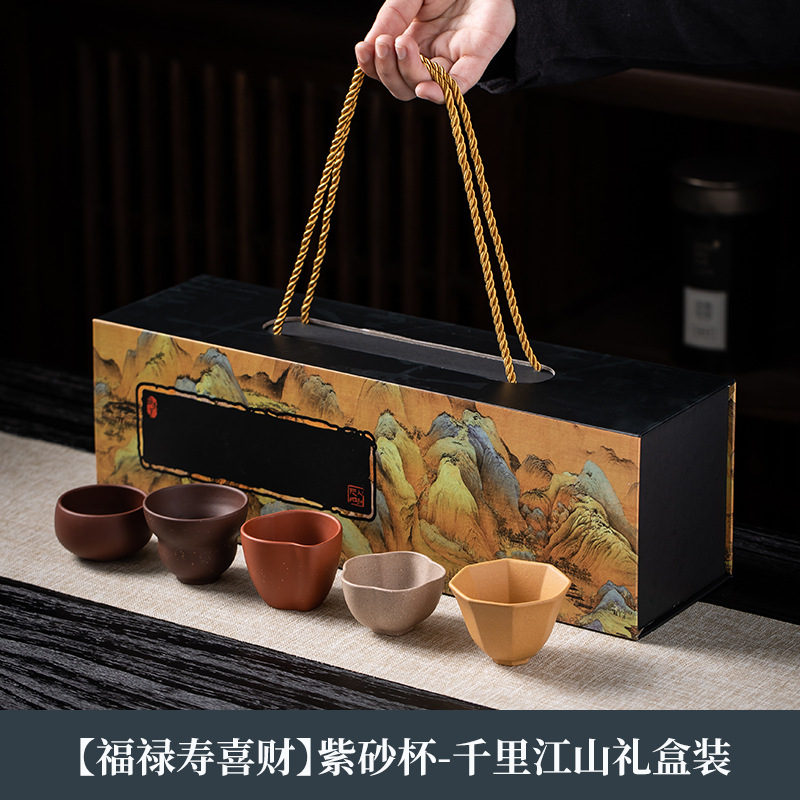 紫砂五福杯茶杯套装主人杯单杯随手礼品礼盒企业伴手礼物可LOGO