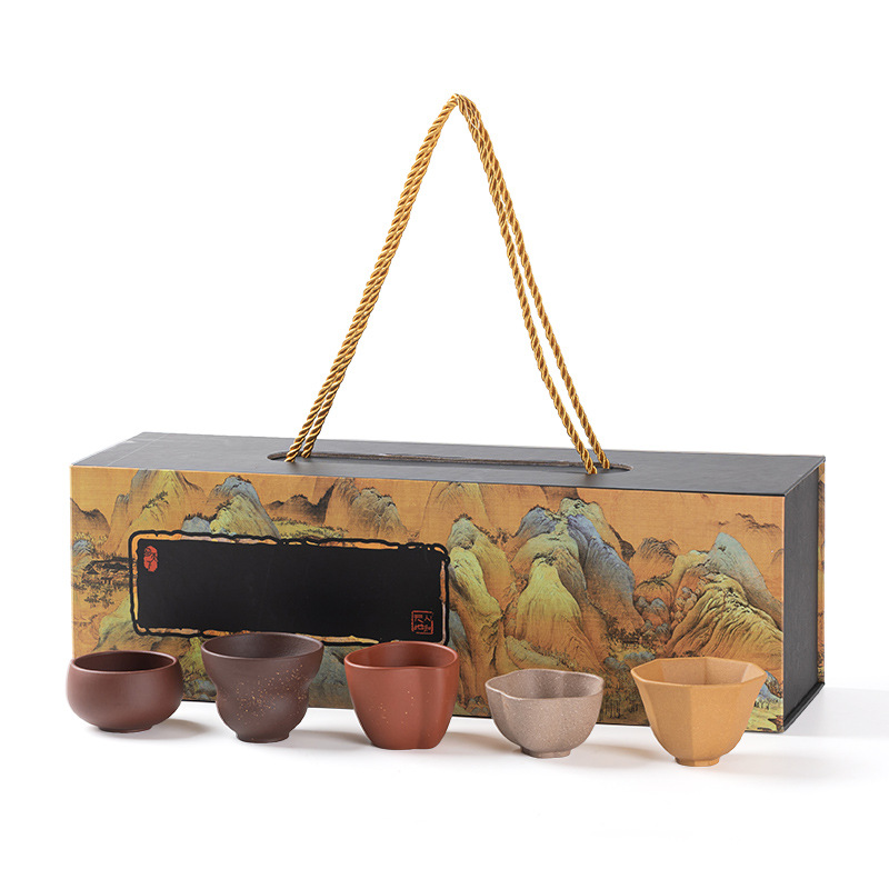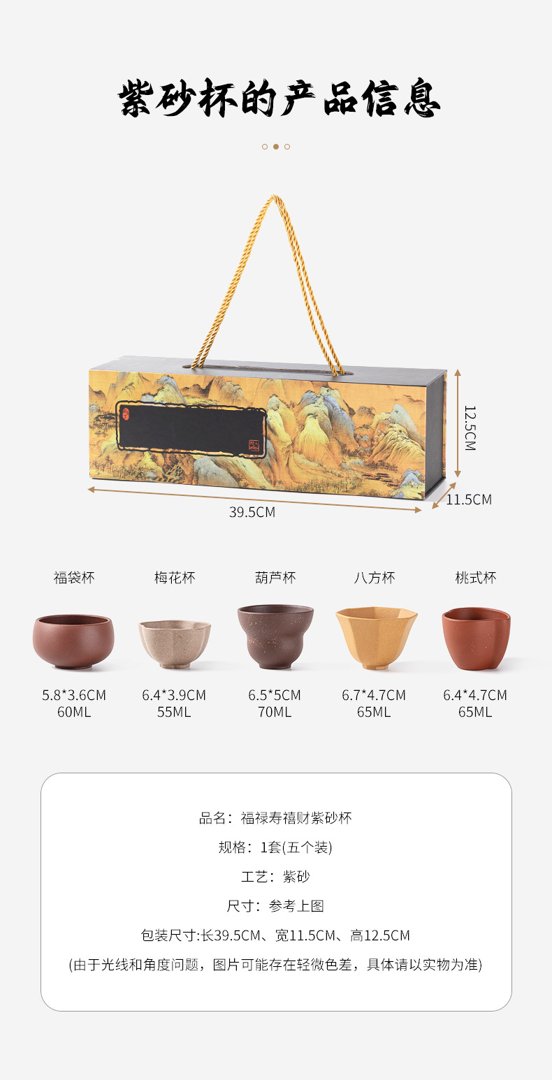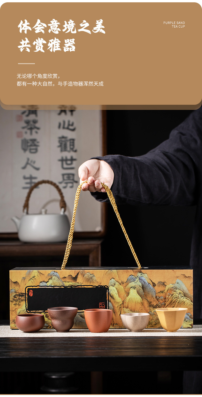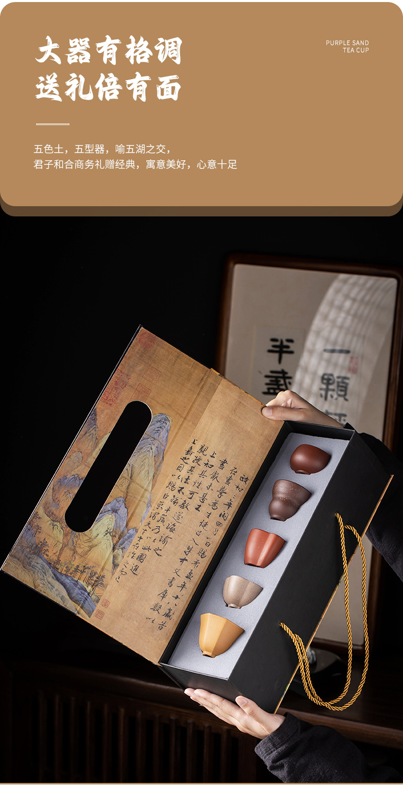 紫砂五福杯茶杯套装主人杯单杯随手礼品礼盒企业伴手礼物可LOGO
