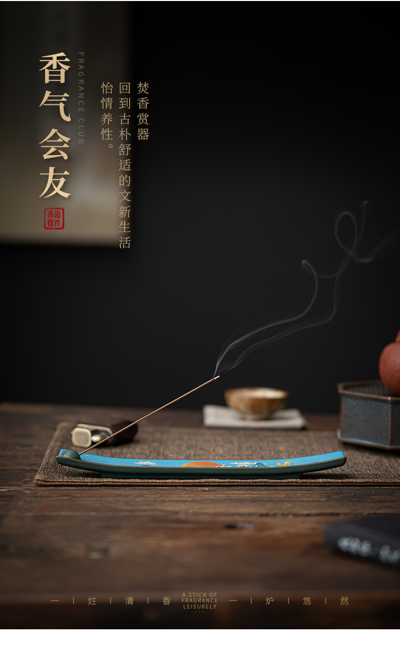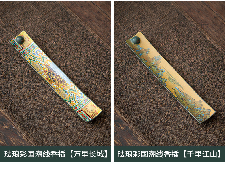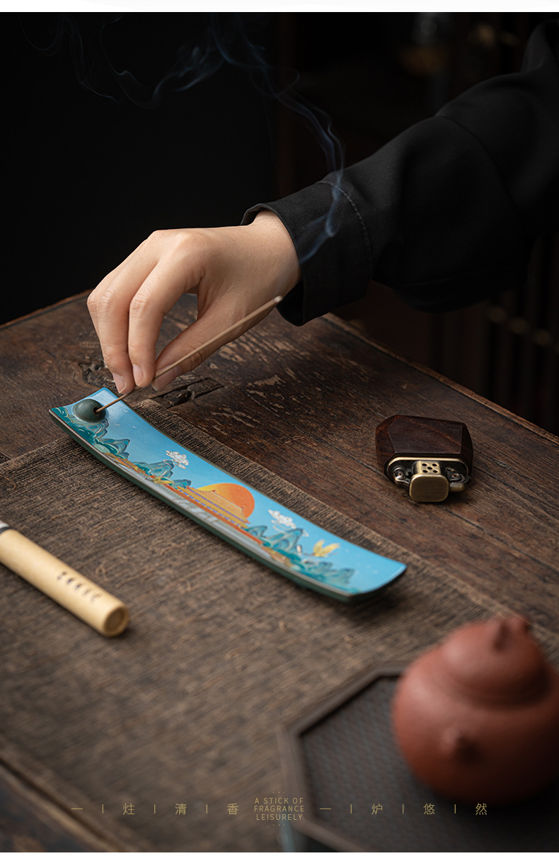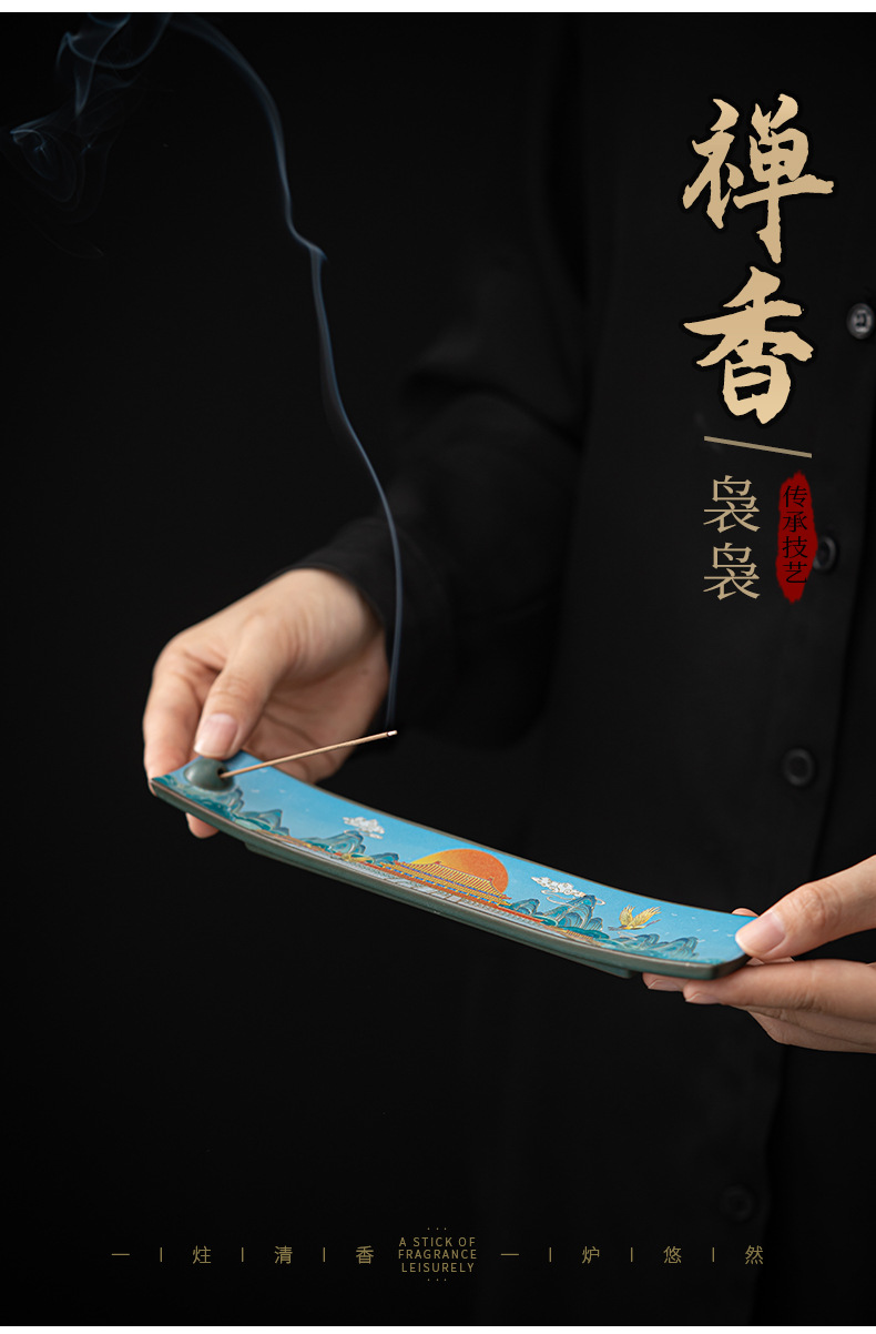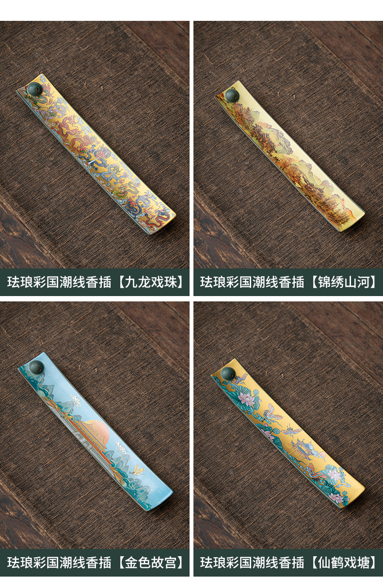 珐琅香插 国潮线香炉摆件陶瓷香道 仿古卧香炉家用 景泰蓝檀香炉