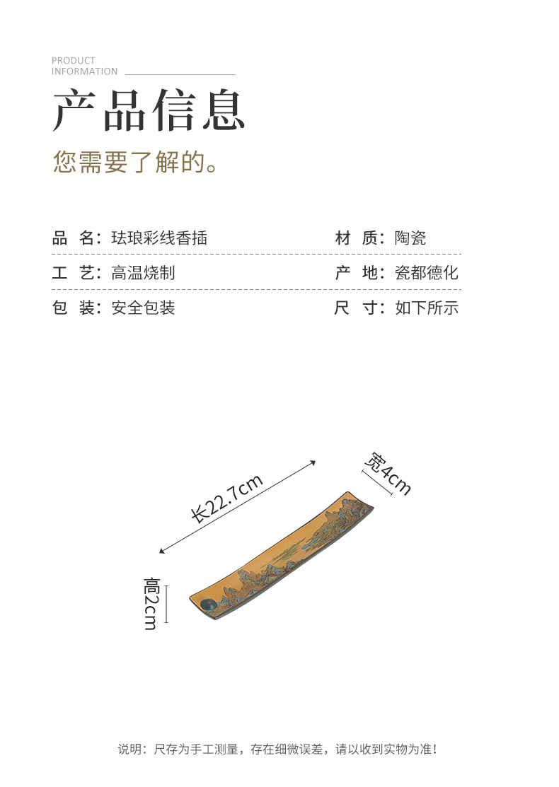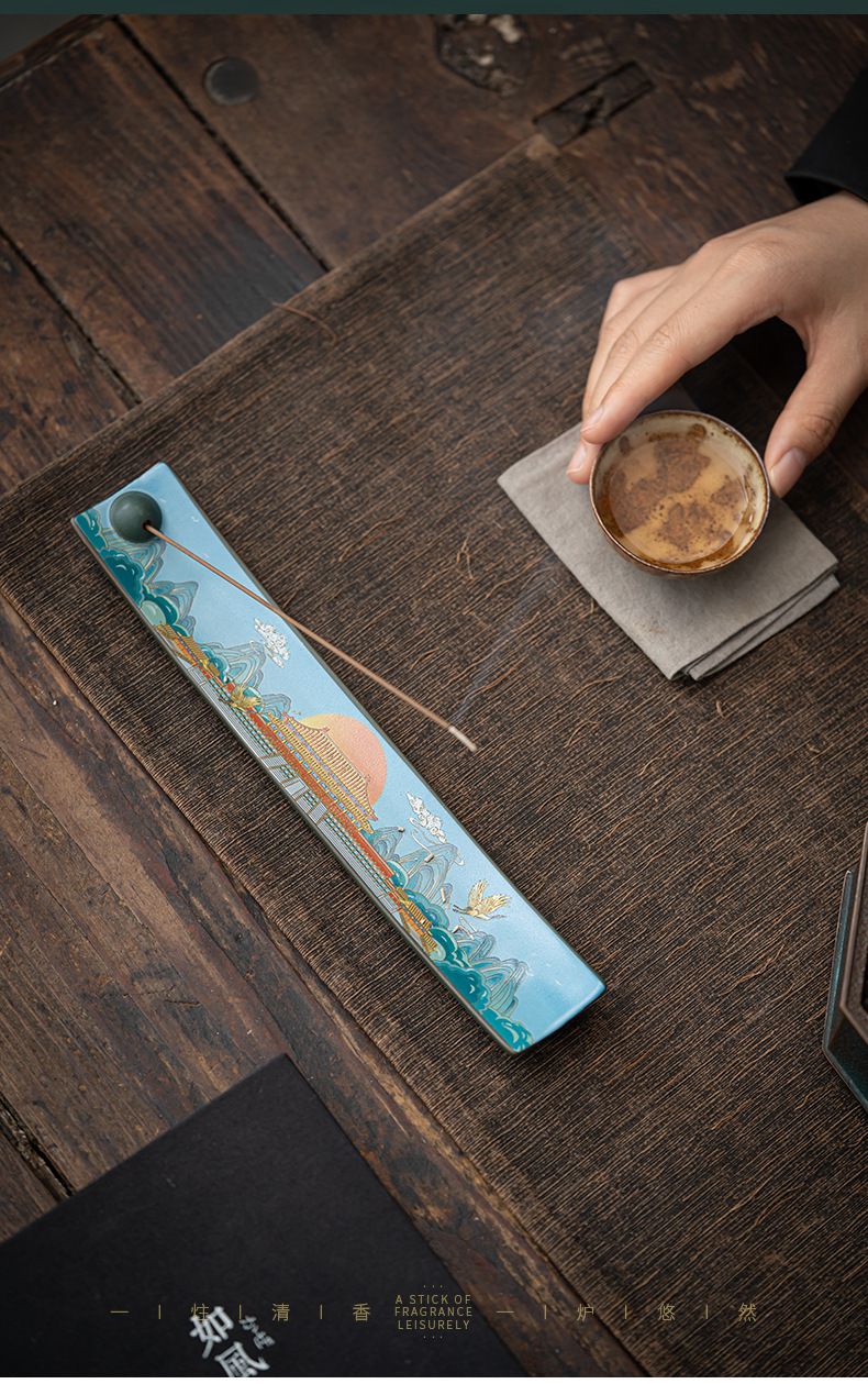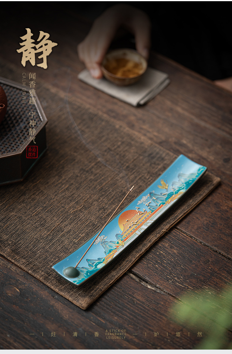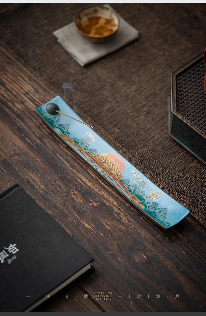 珐琅香插 国潮线香炉摆件陶瓷香道 仿古卧香炉家用 景泰蓝檀香炉