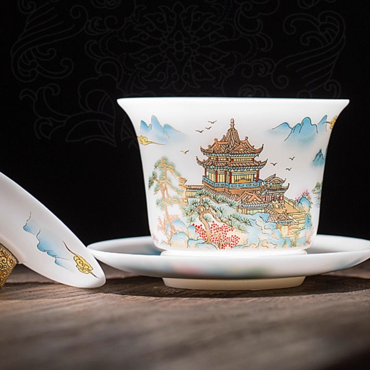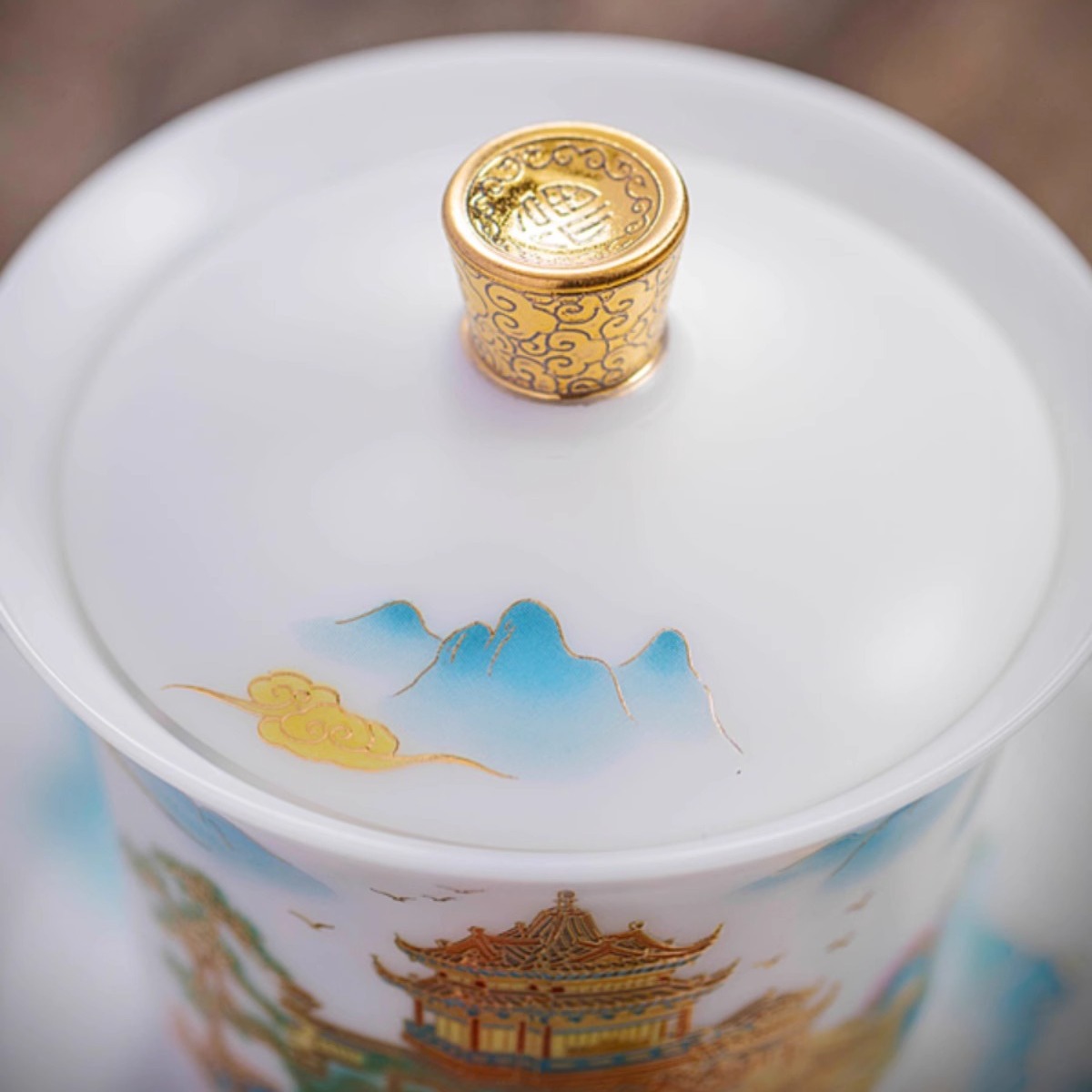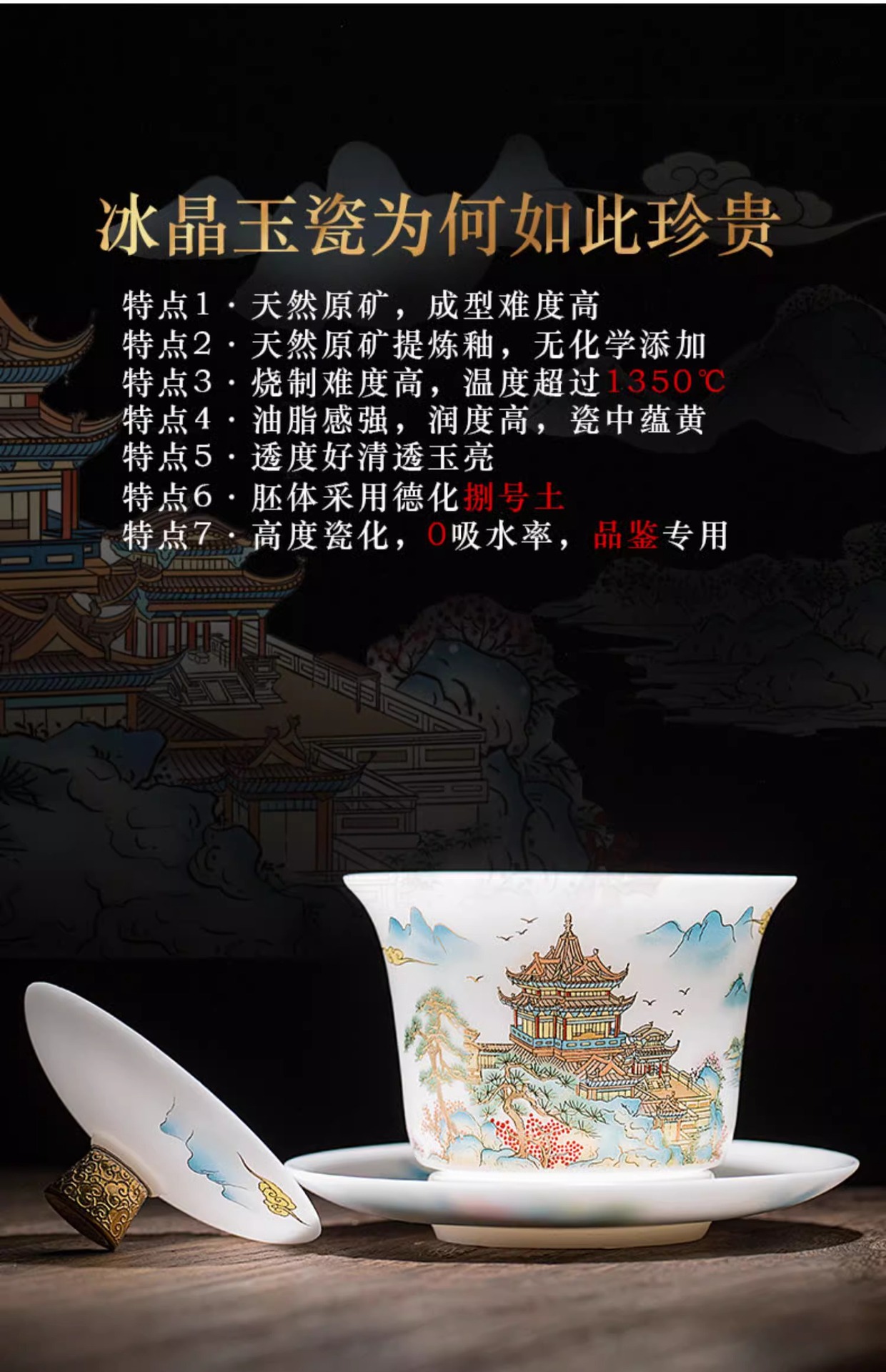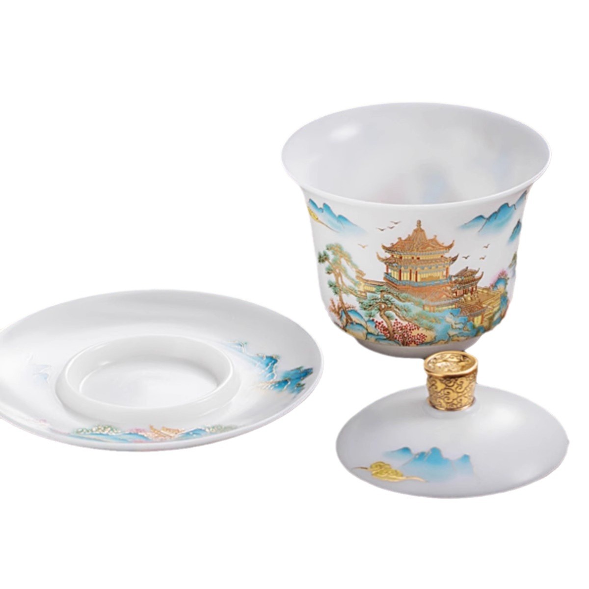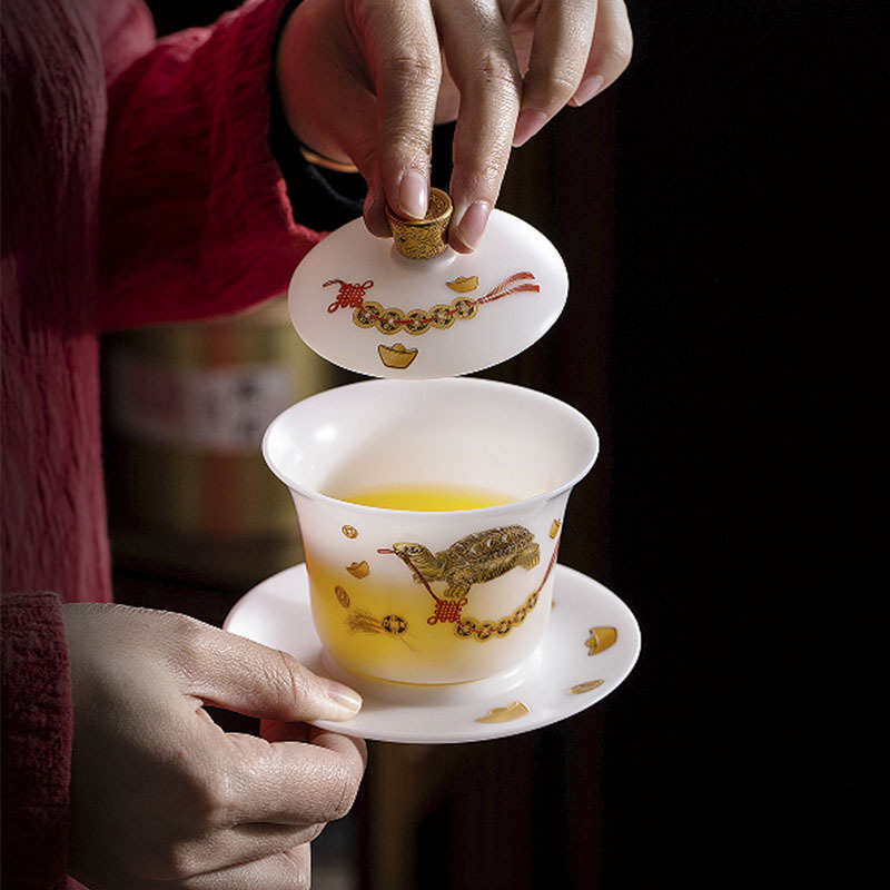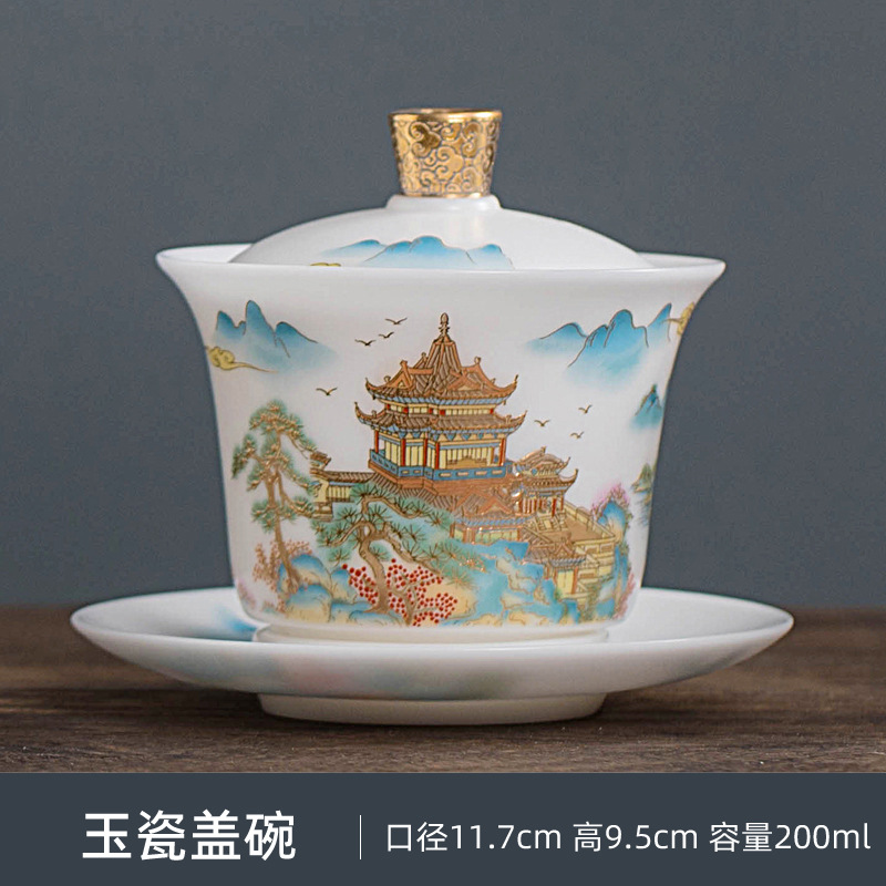 白瓷素烧冰种玉瓷盖碗羊脂玉茶杯薄胎功夫泡茶碗带盖陶瓷堆金茶碗