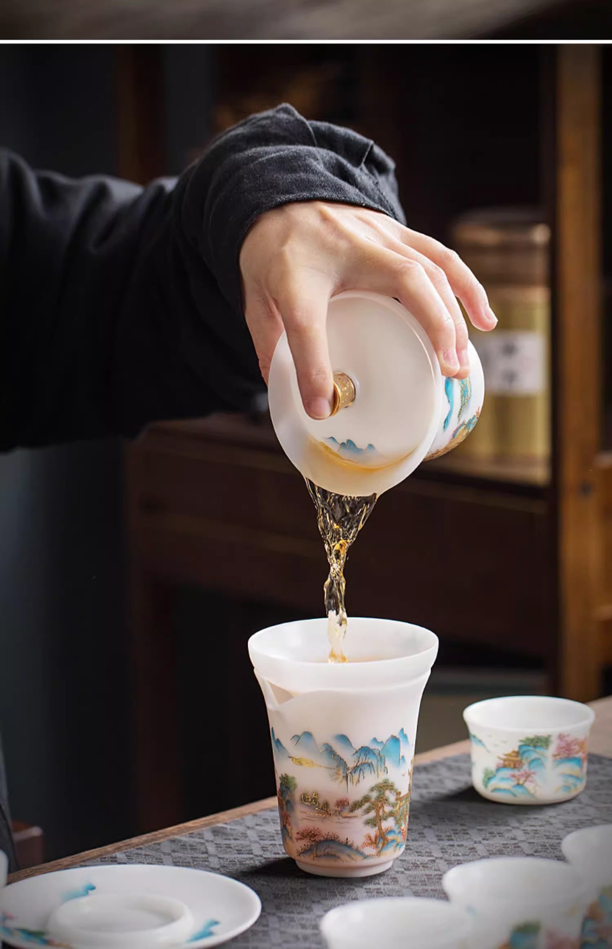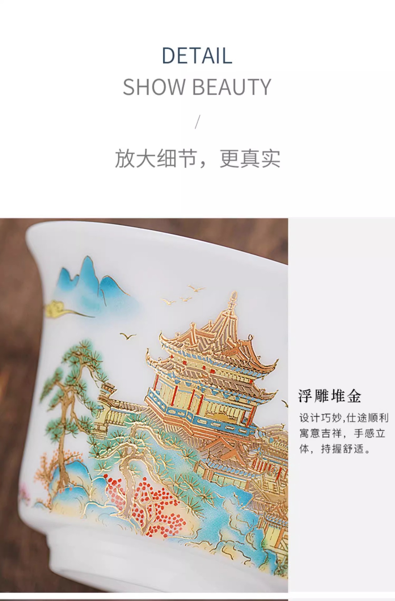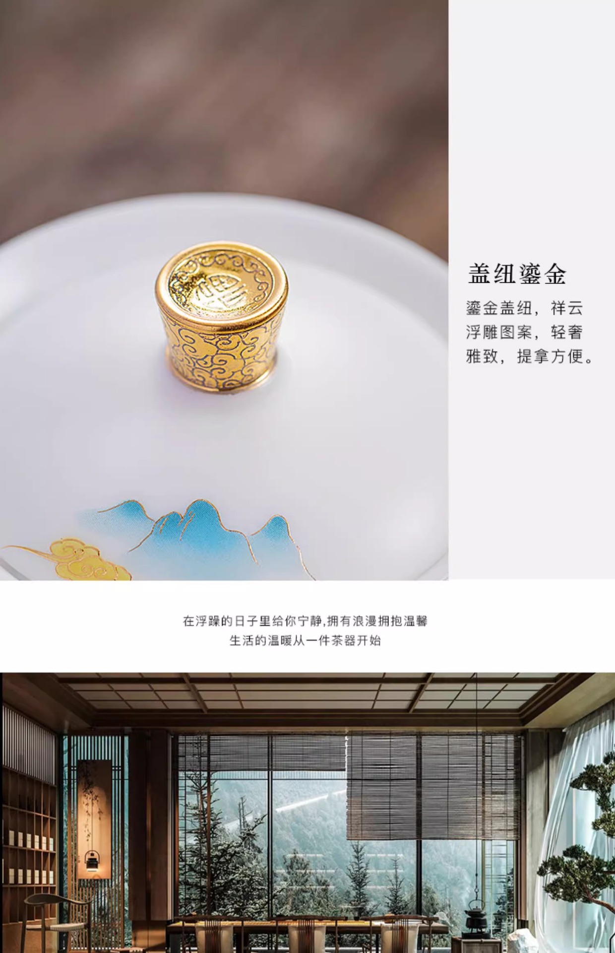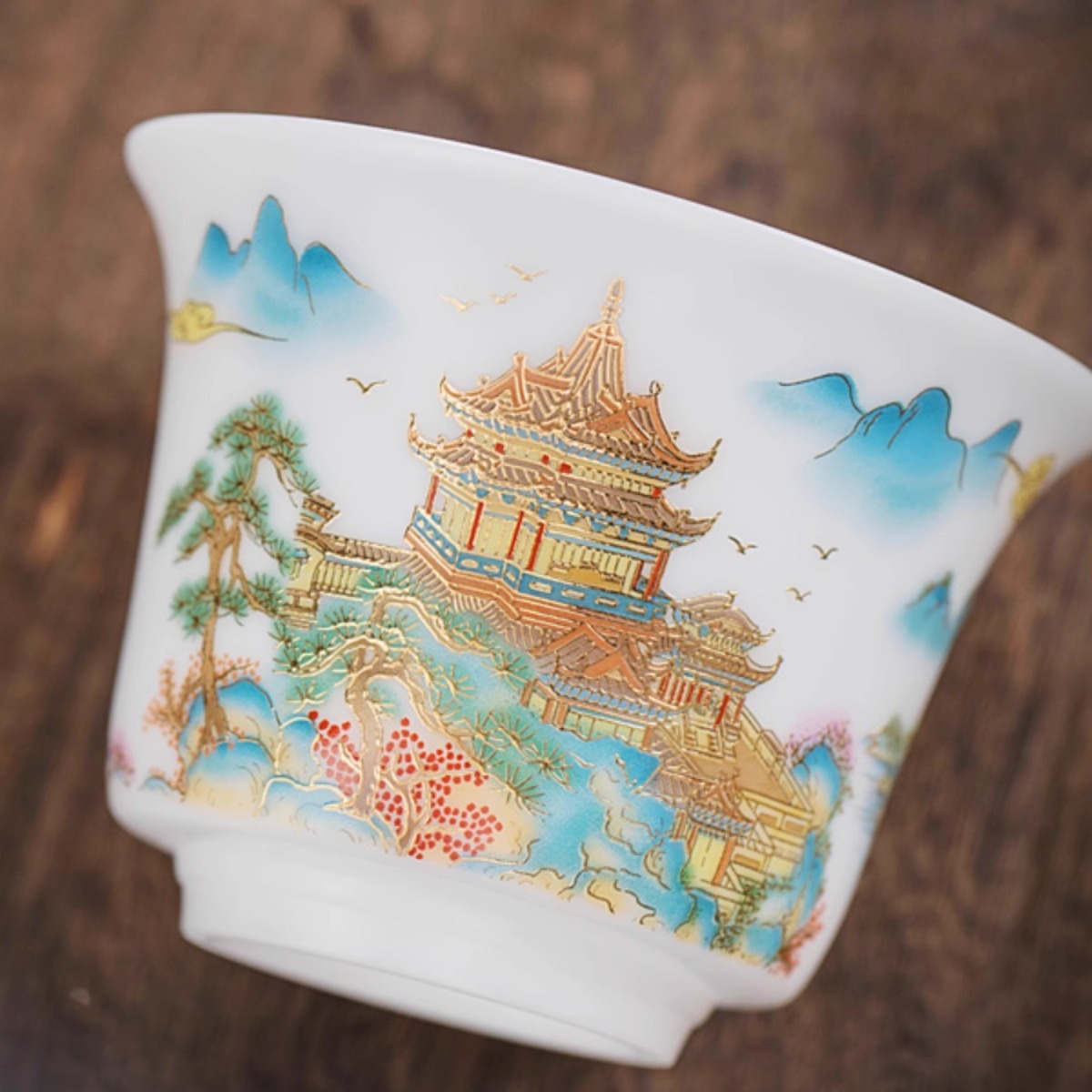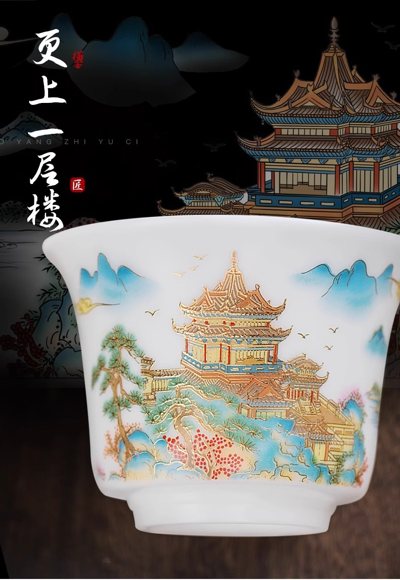 白瓷素烧冰种玉瓷盖碗羊脂玉茶杯薄胎功夫泡茶碗带盖陶瓷堆金茶碗