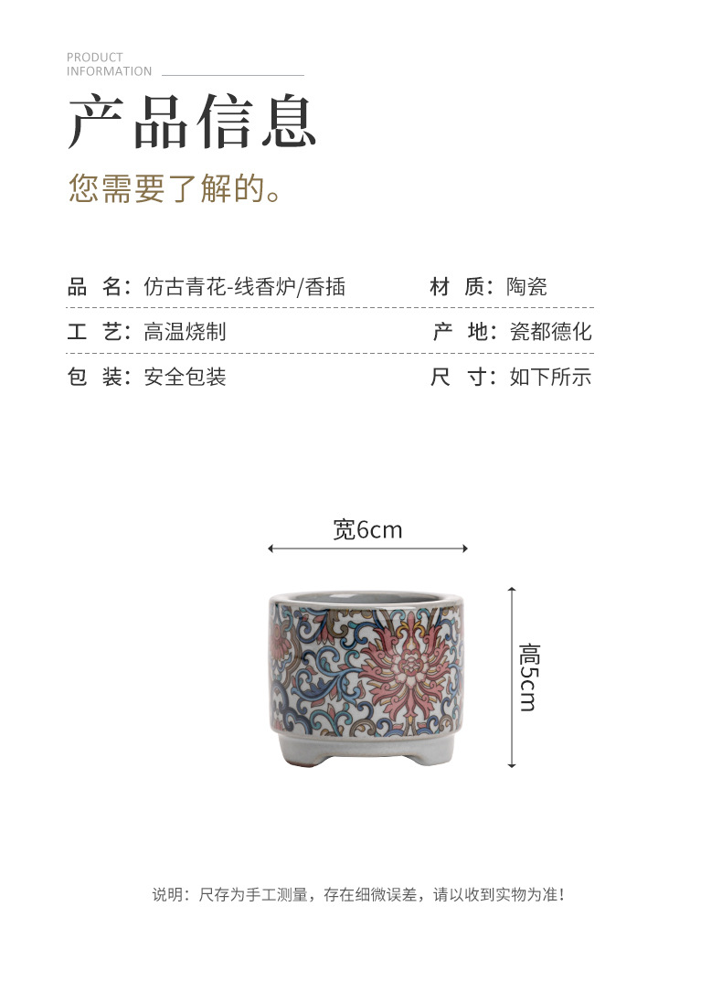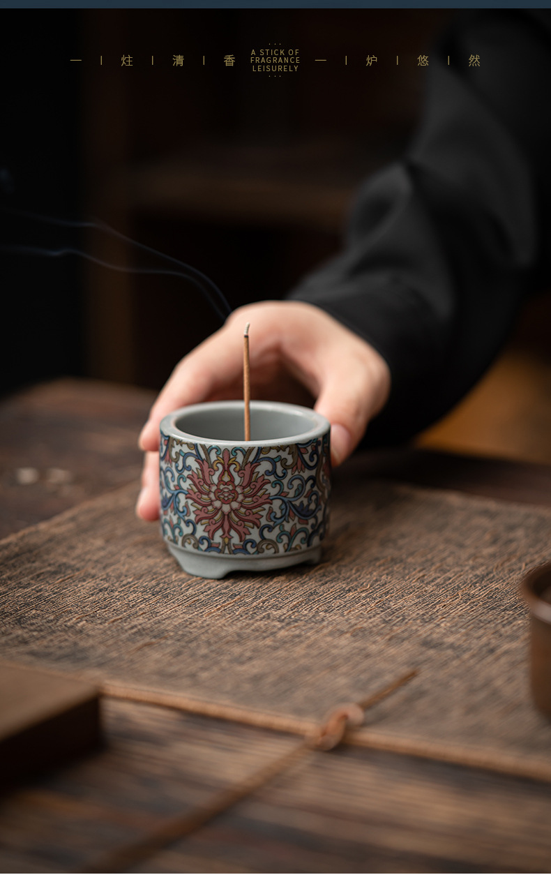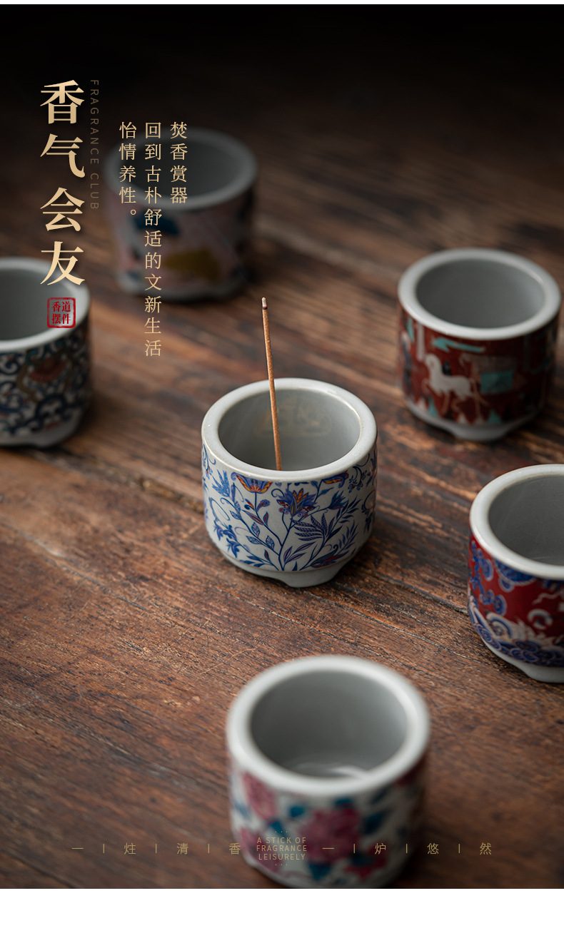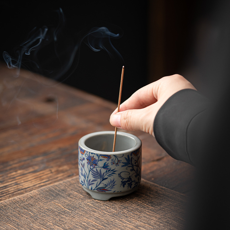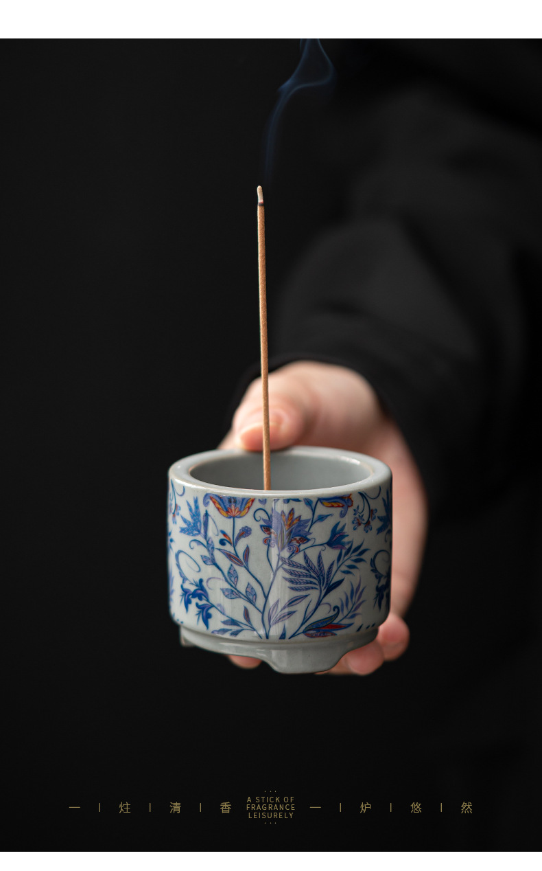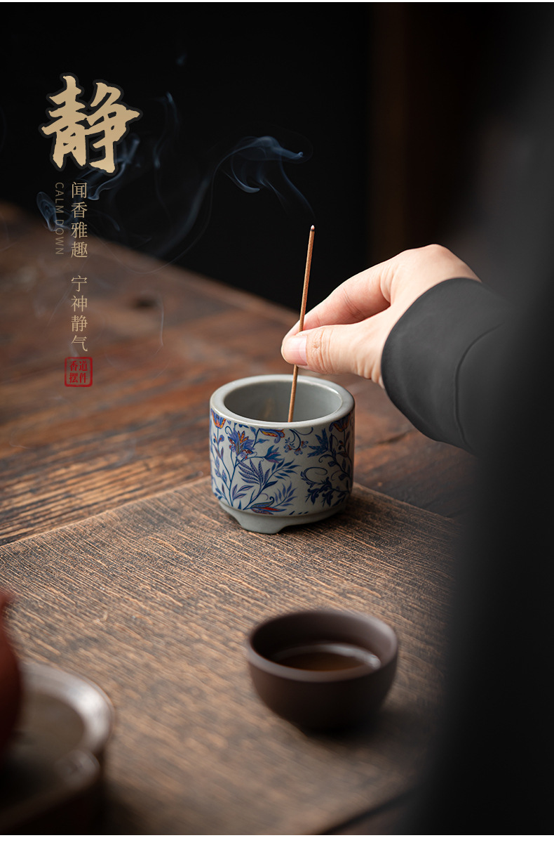 迷你香插 青花小香炉 珐琅陶瓷线香炉 沉香檀香炉仿古景泰蓝香座