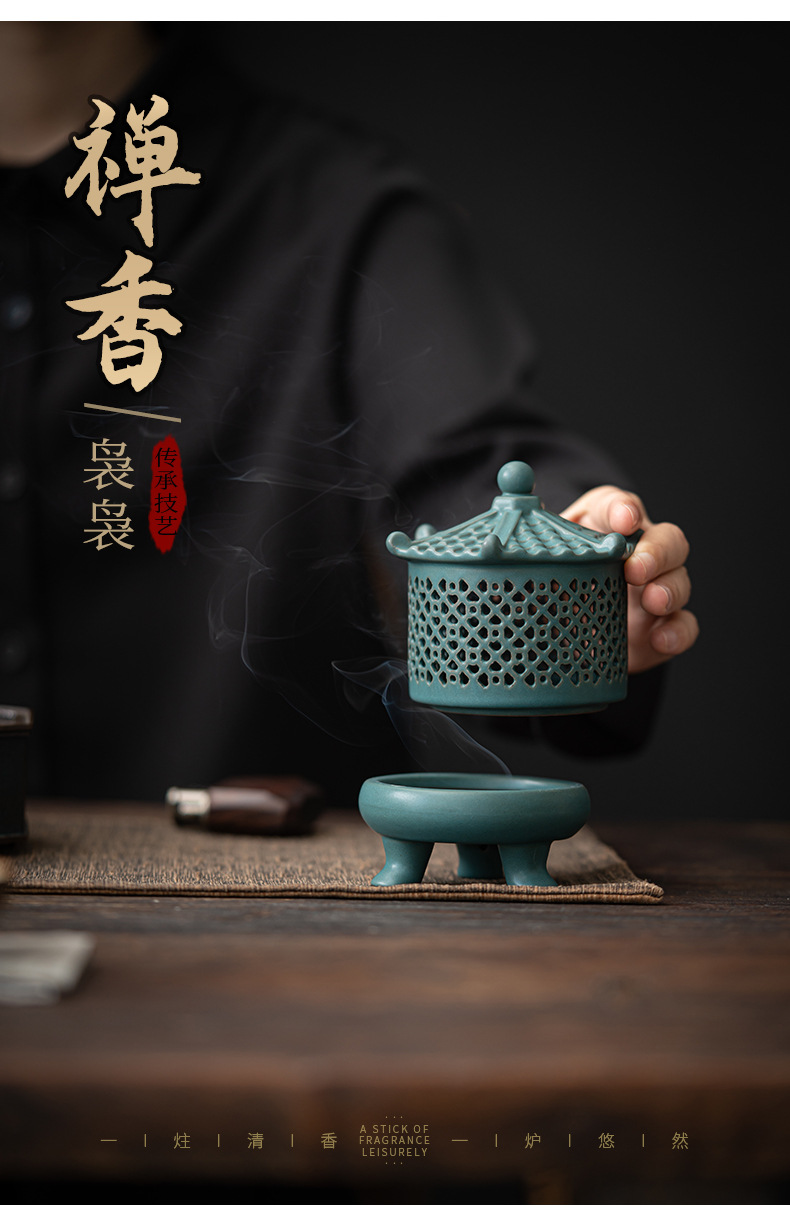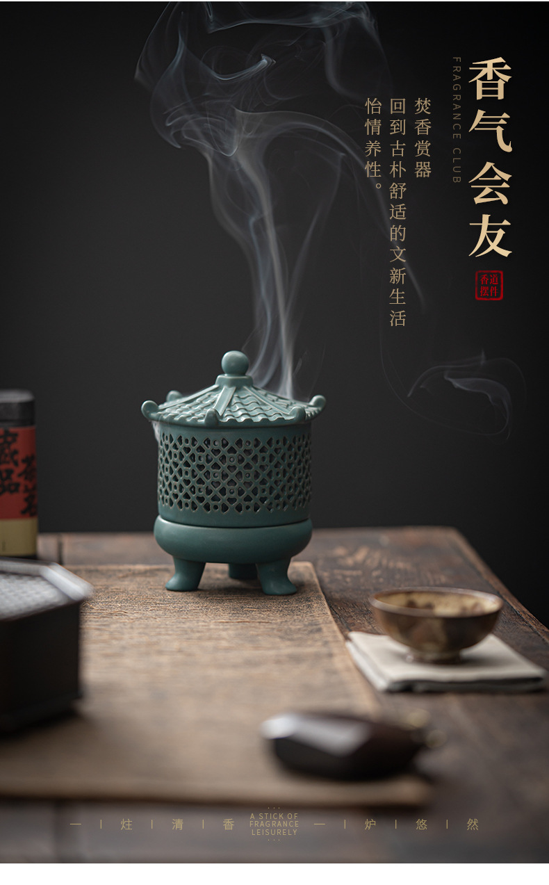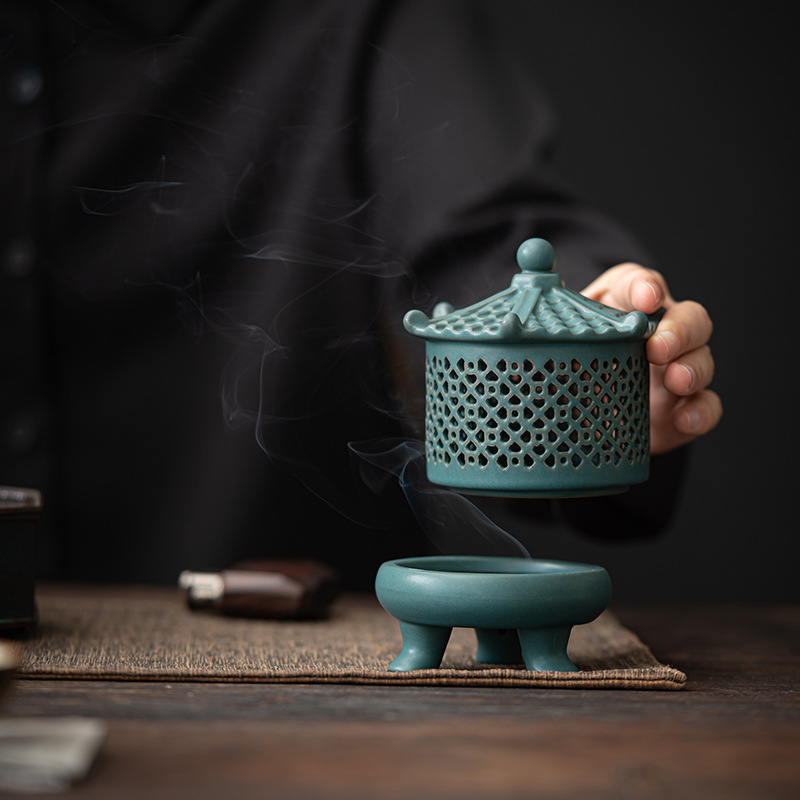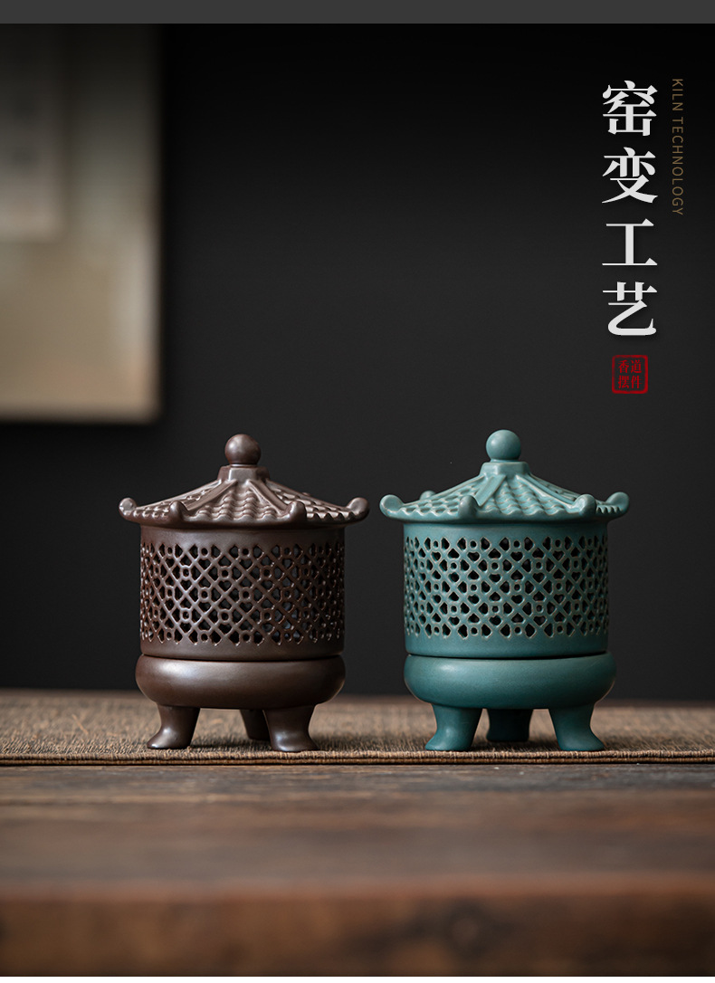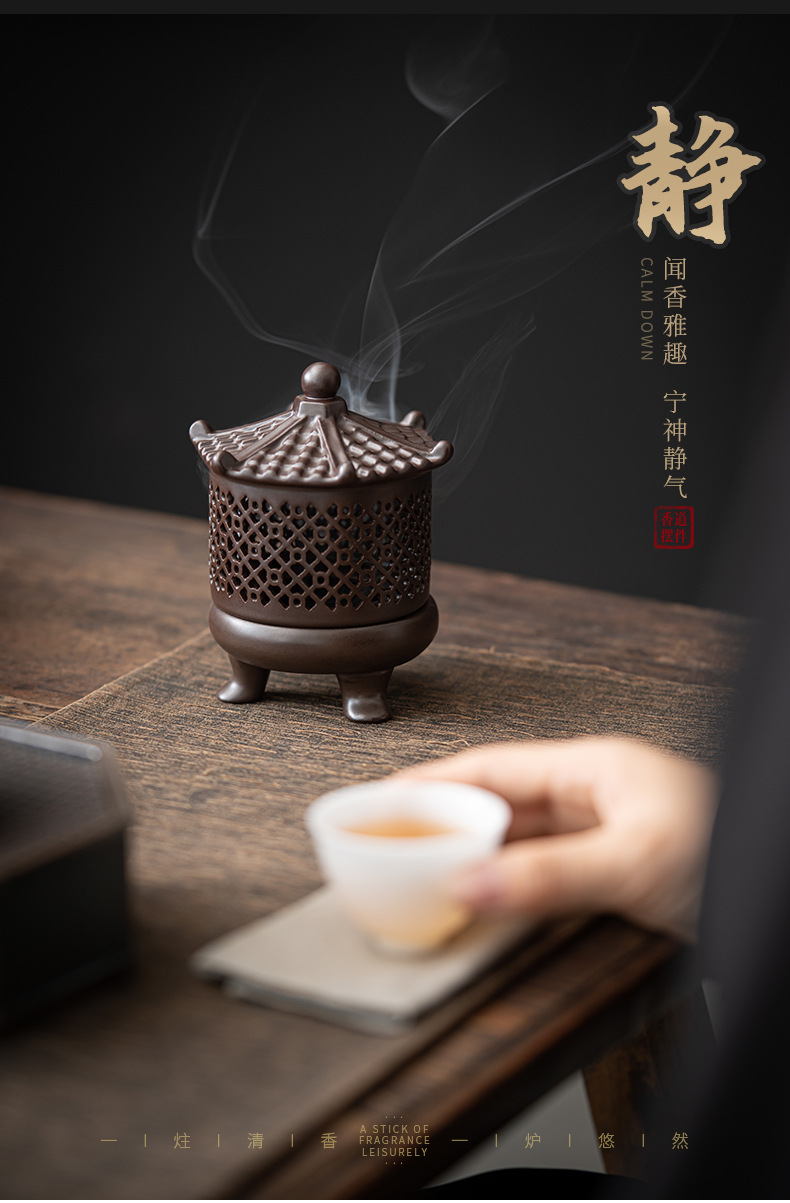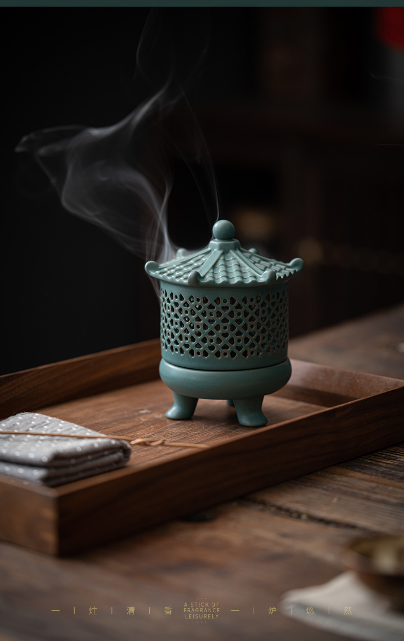 古塔香炉 陶瓷工艺品熏香摆件倒流香薰炉创意家居香插香道代发