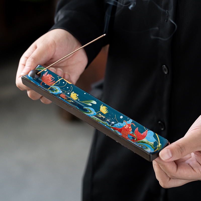 珐琅线香炉香插摆件陶瓷创意茶道供奉仿古卧香炉家用景泰蓝檀香炉