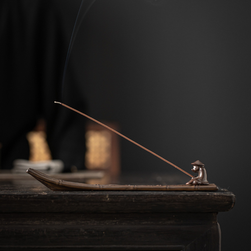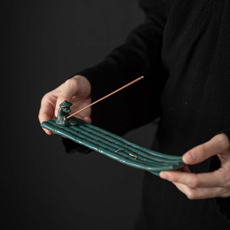 渔翁竹排香插 线香炉摆件陶瓷创意茶道供奉仿古卧香炉家用檀香炉