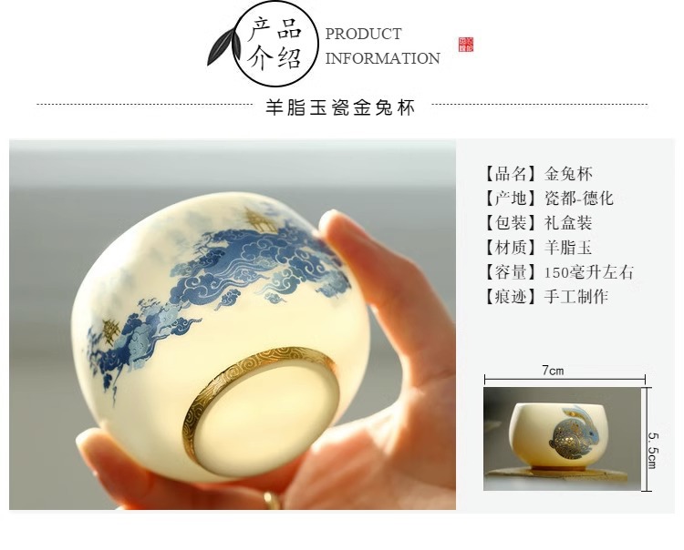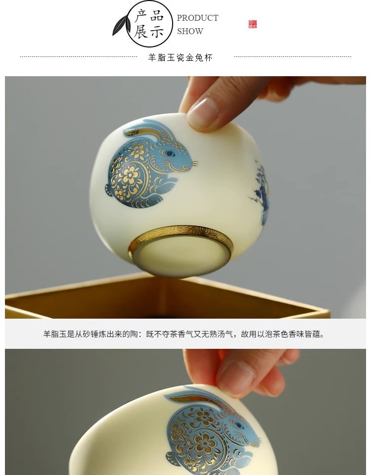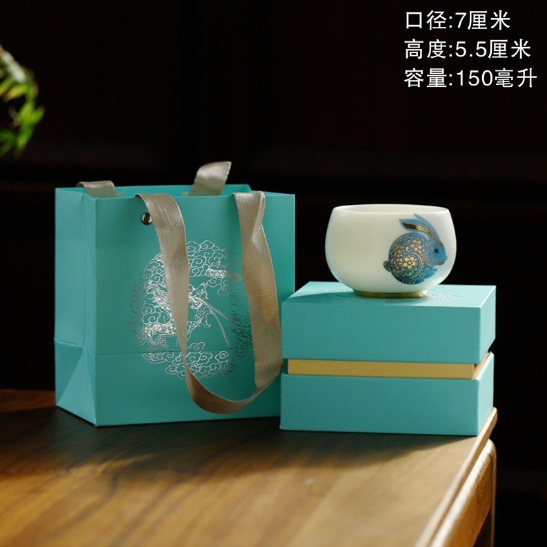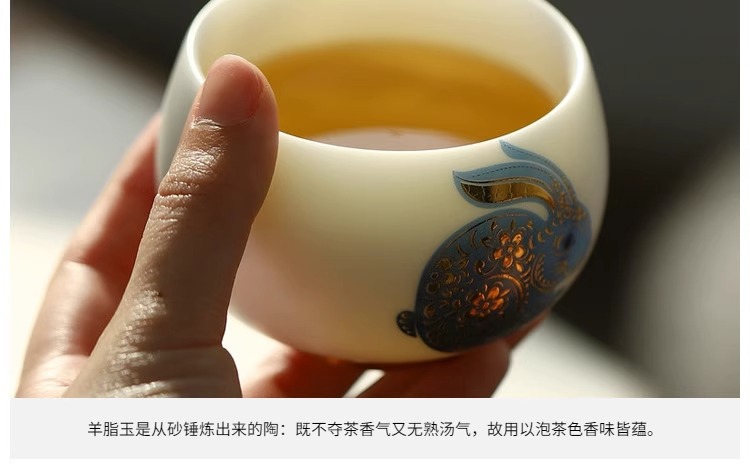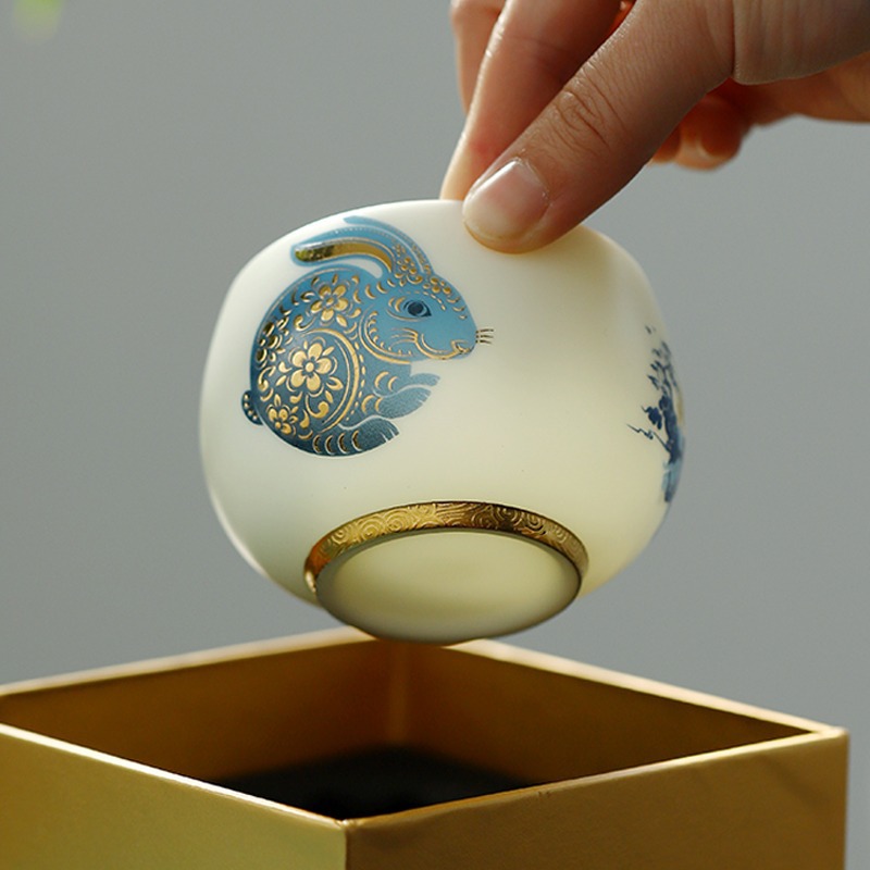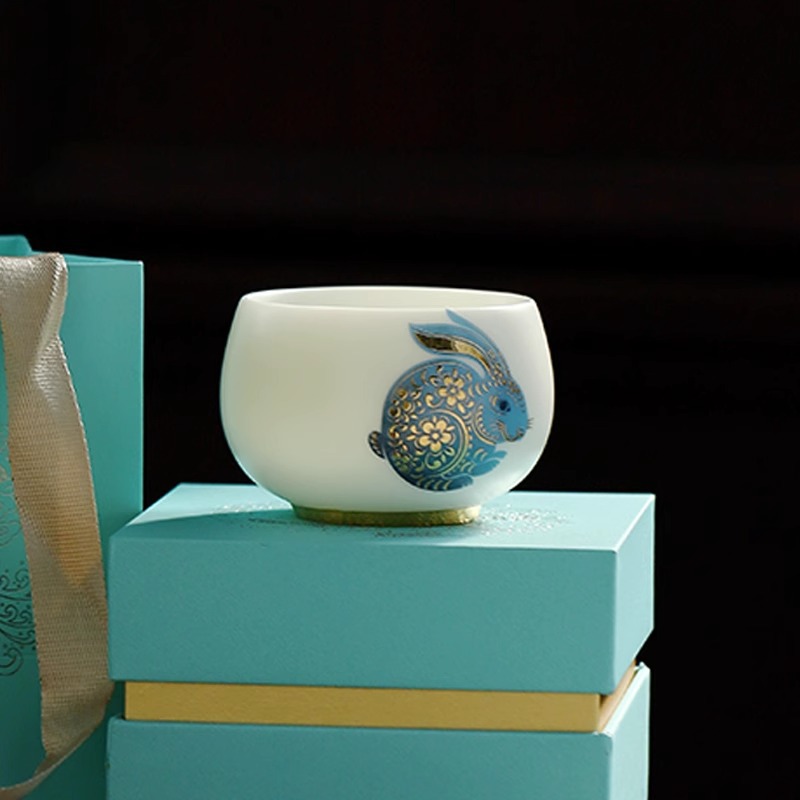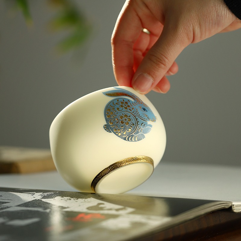羊脂玉兔子主人杯陶瓷兔年茶杯单杯个人专用送礼品茗杯茶盏伴手礼