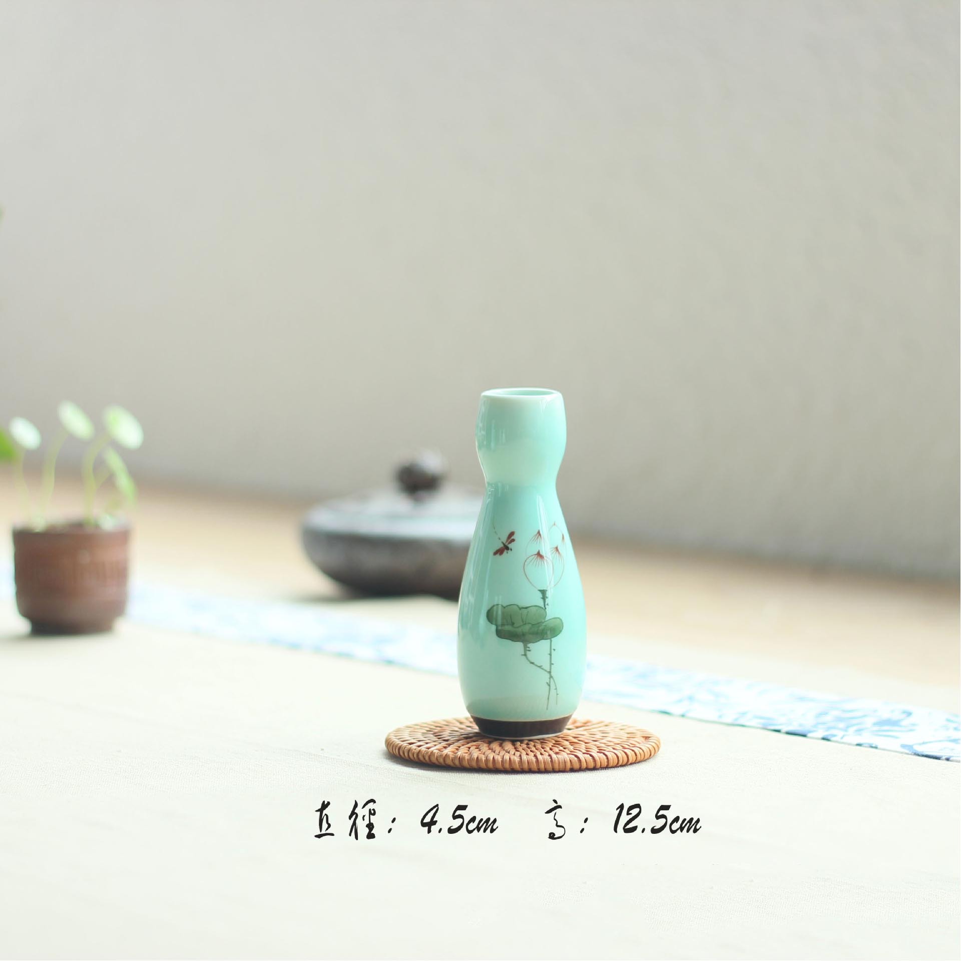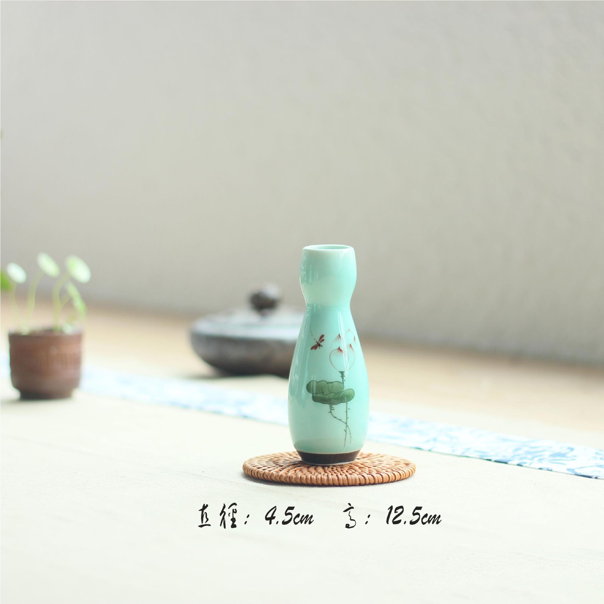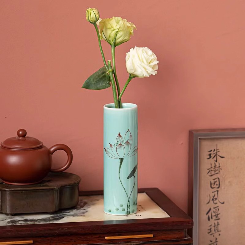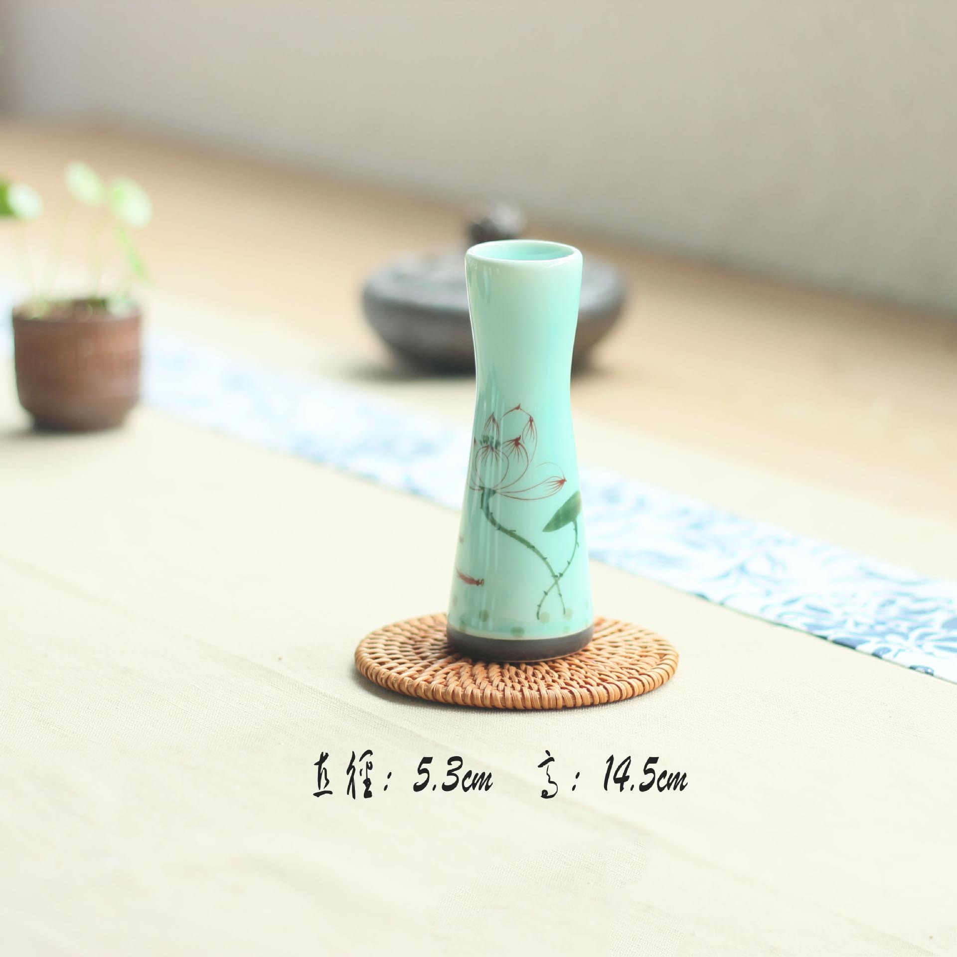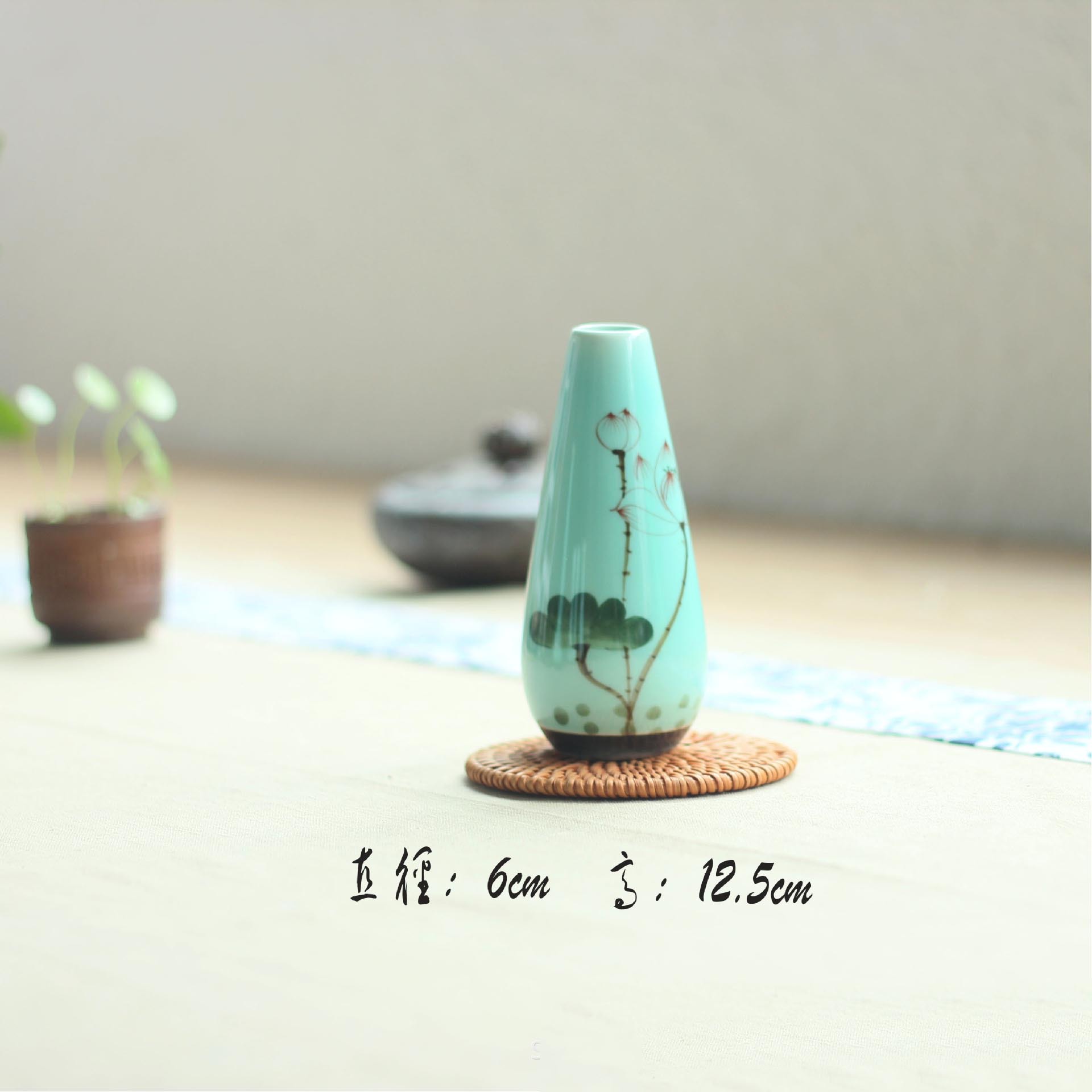 中式手绘青瓷荷花小花插简约陶瓷水培花器室内桌面花瓶摆件