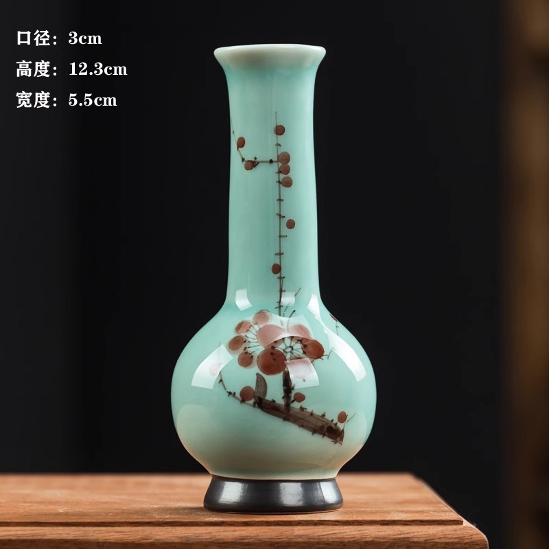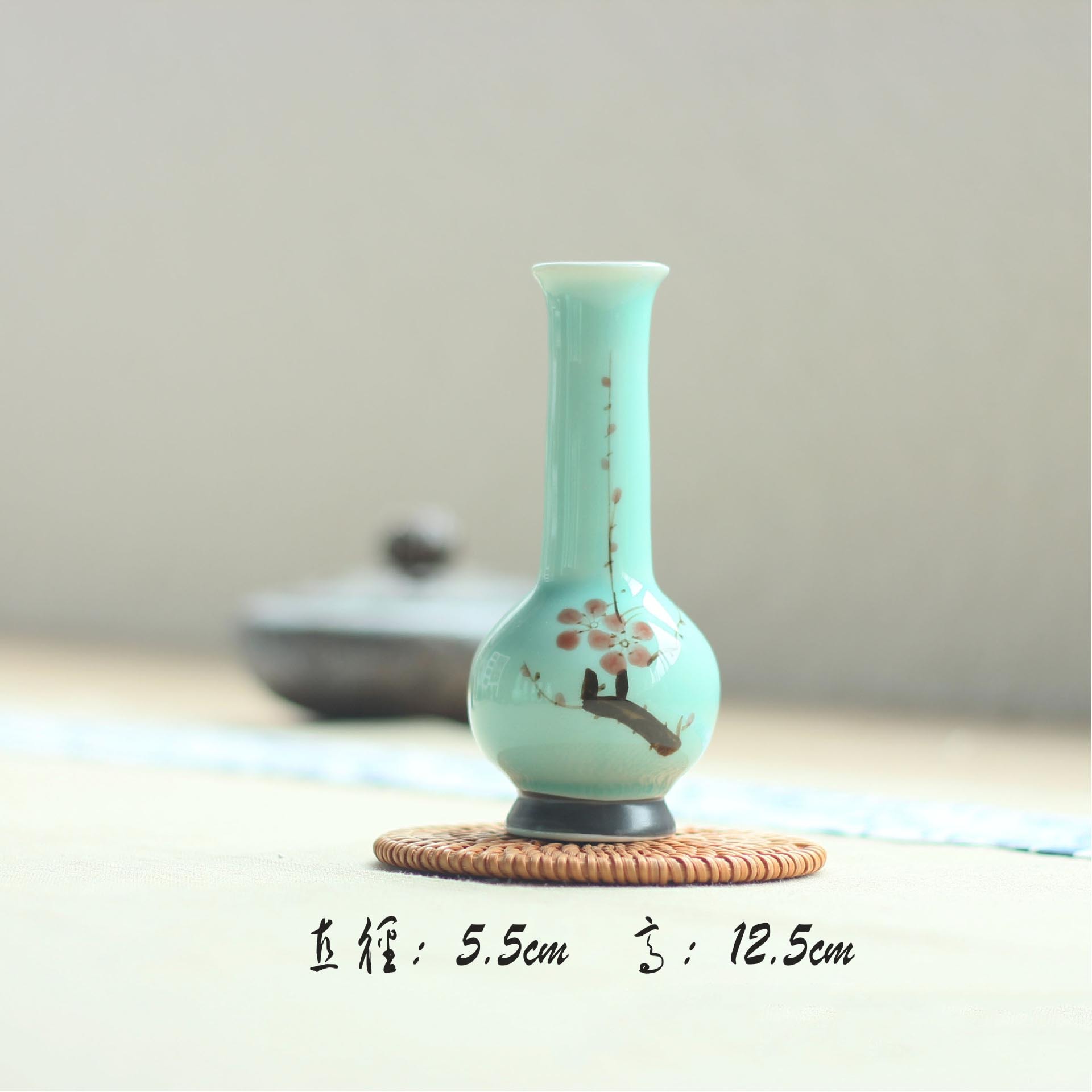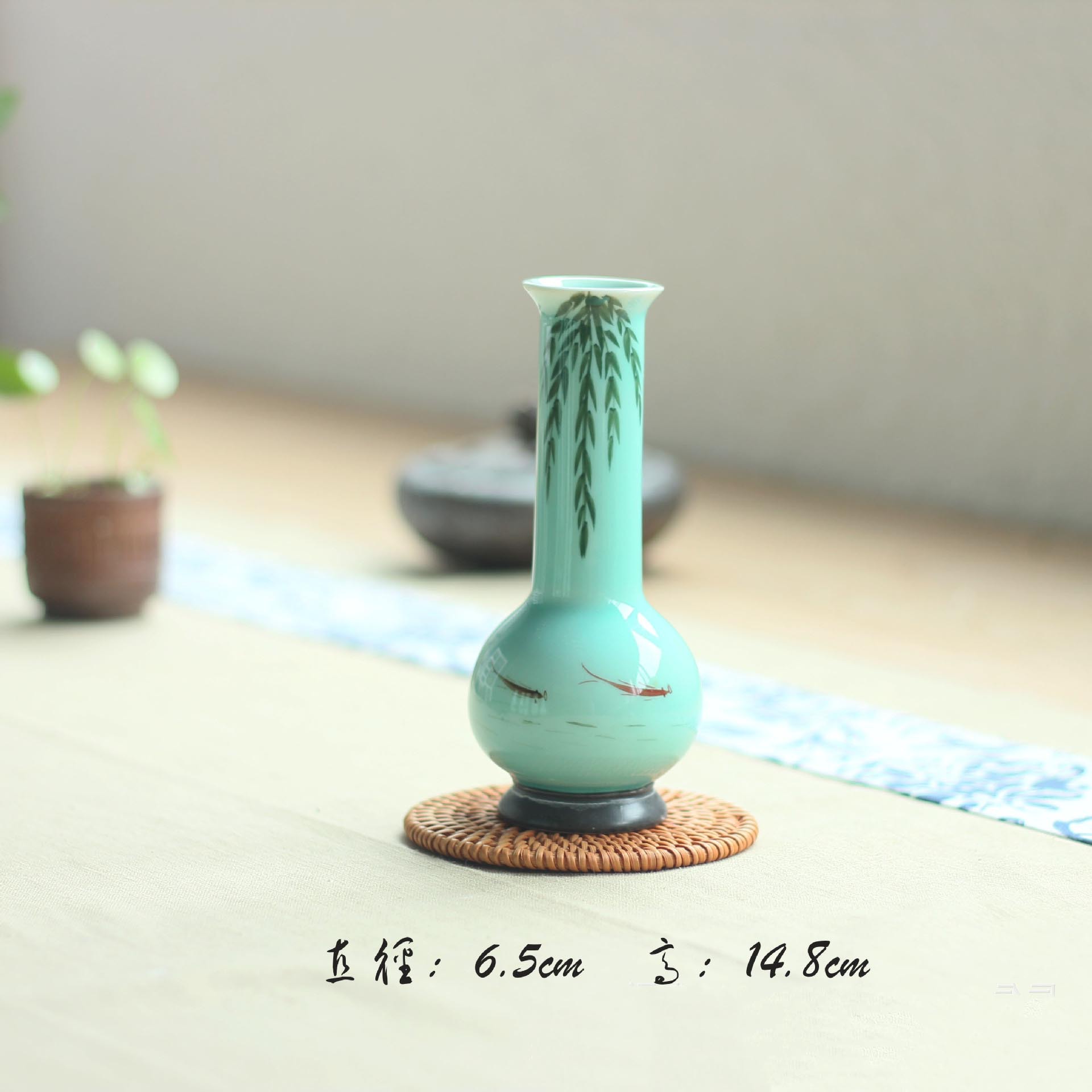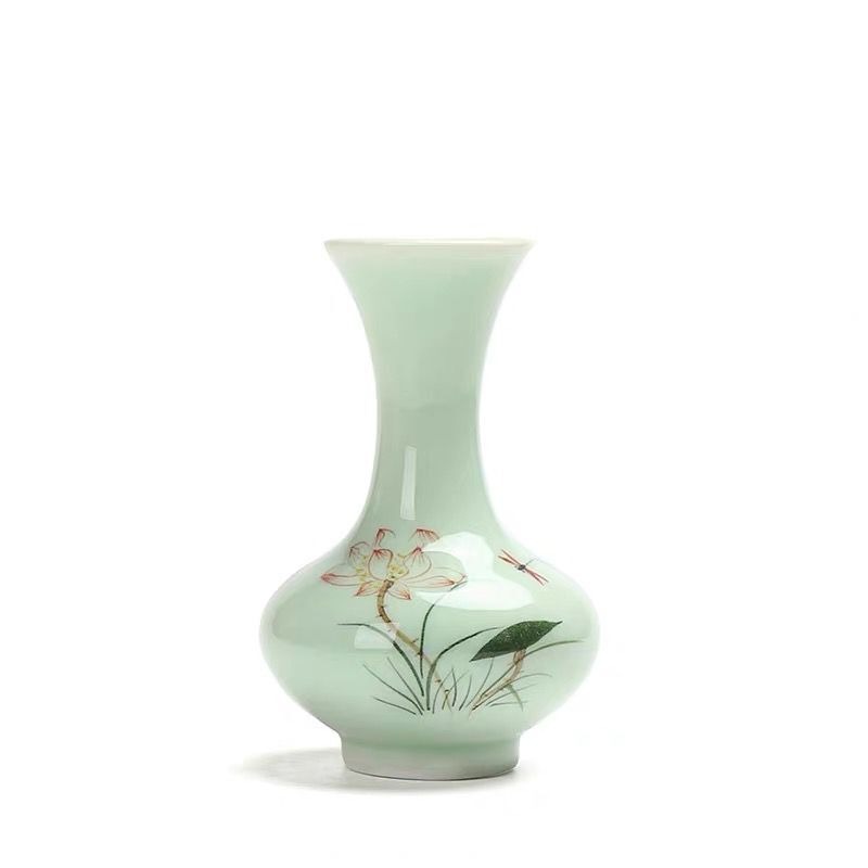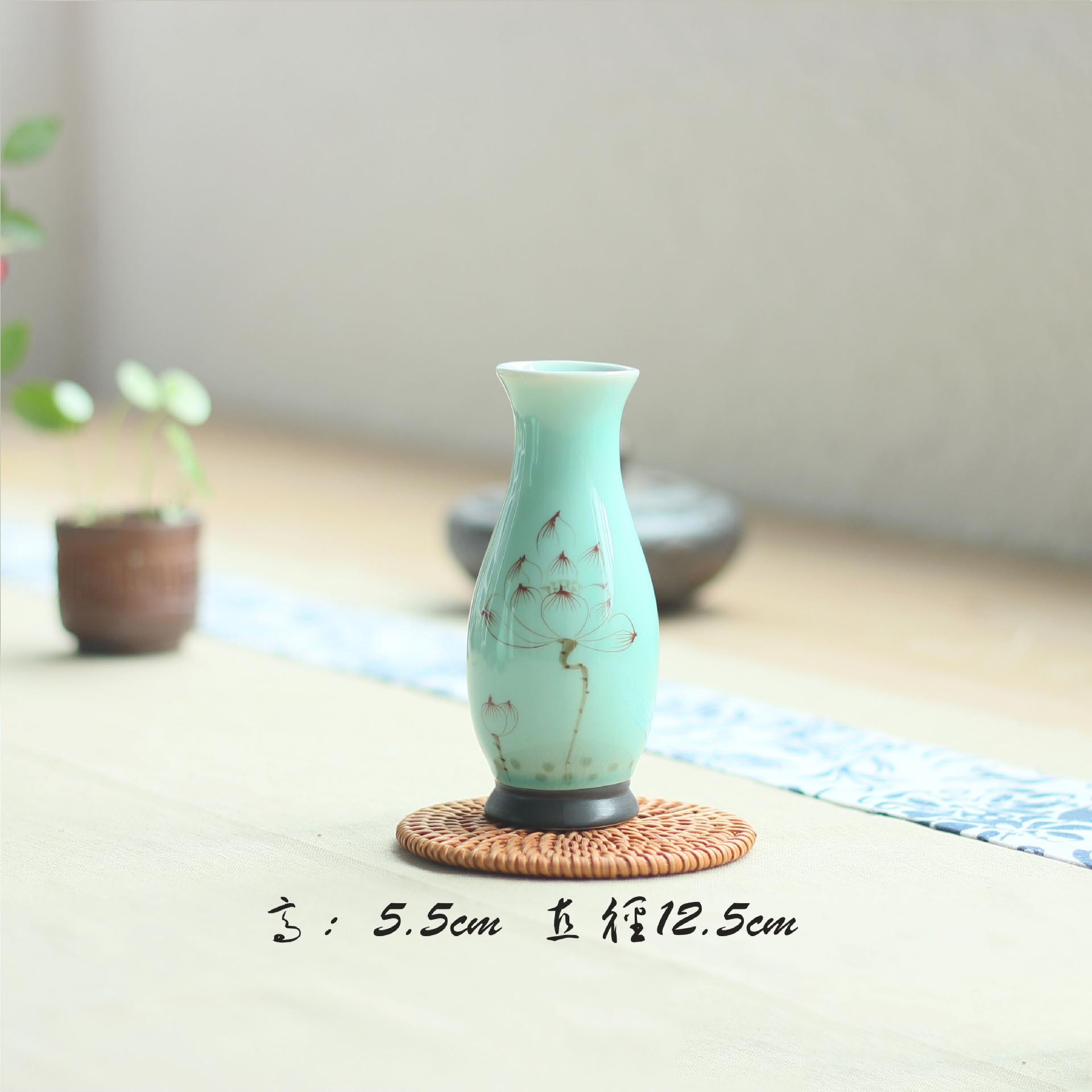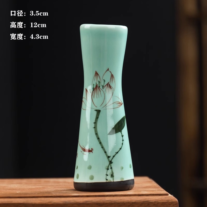 中式手绘青瓷荷花小花插简约陶瓷水培花器室内桌面花瓶摆件