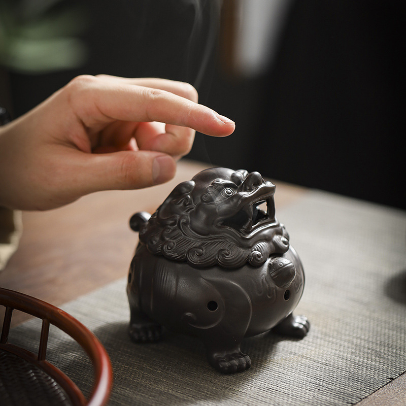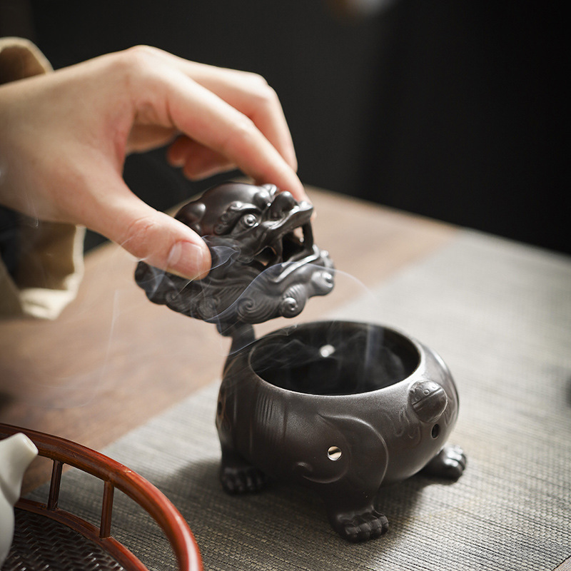 狻猊陶瓷盘香炉 工艺品熏香摆件倒流香薰炉创意家居香插香道茶宠
