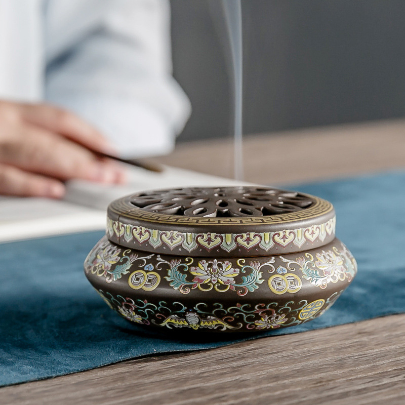 景泰蓝香炉 倒流香薰炉创意家居居室香插香道珐琅彩跨境一件代发
