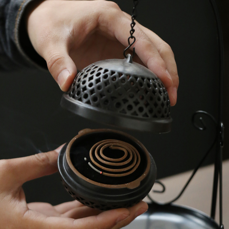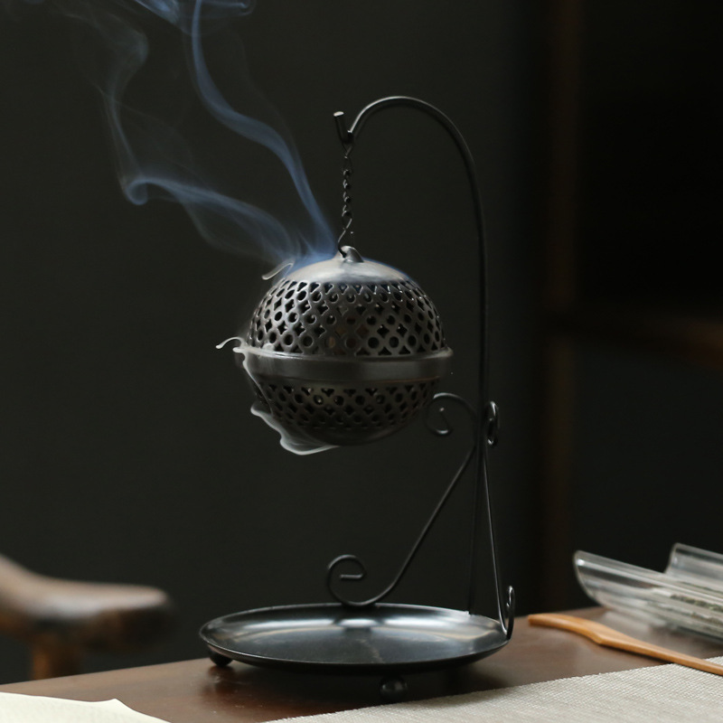 铁架吊球香炉 创意盘香 檀香炉家用室内供佛茶道香薰炉摆件