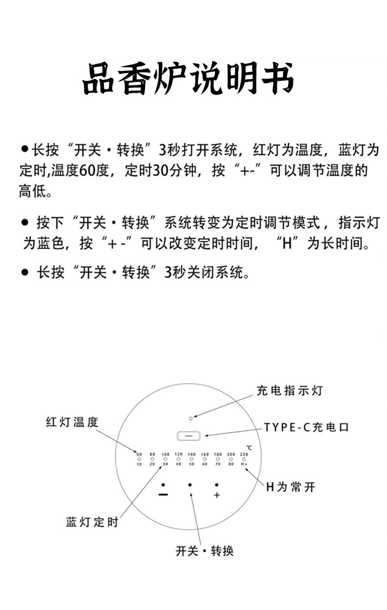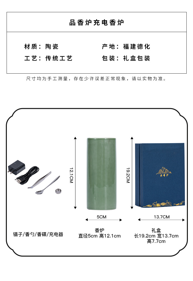 手持电子熏香炉品香炉 定时调温充电式随身电香炉电香薰炉品香杯