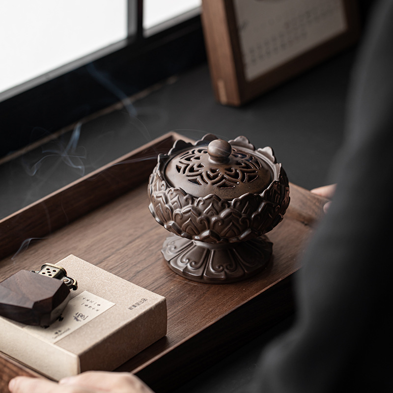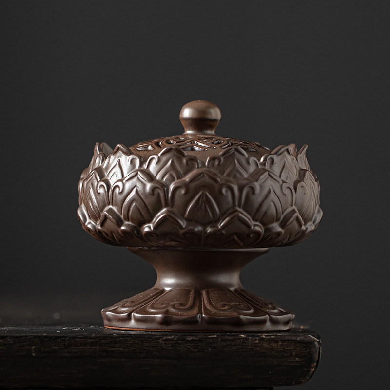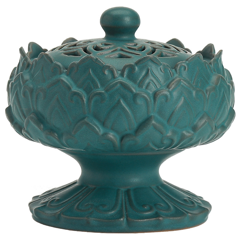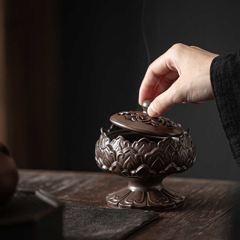 陶瓷莲花香炉 檀香家用香道摆件荷花薰香炉创意香炉香道批发代发