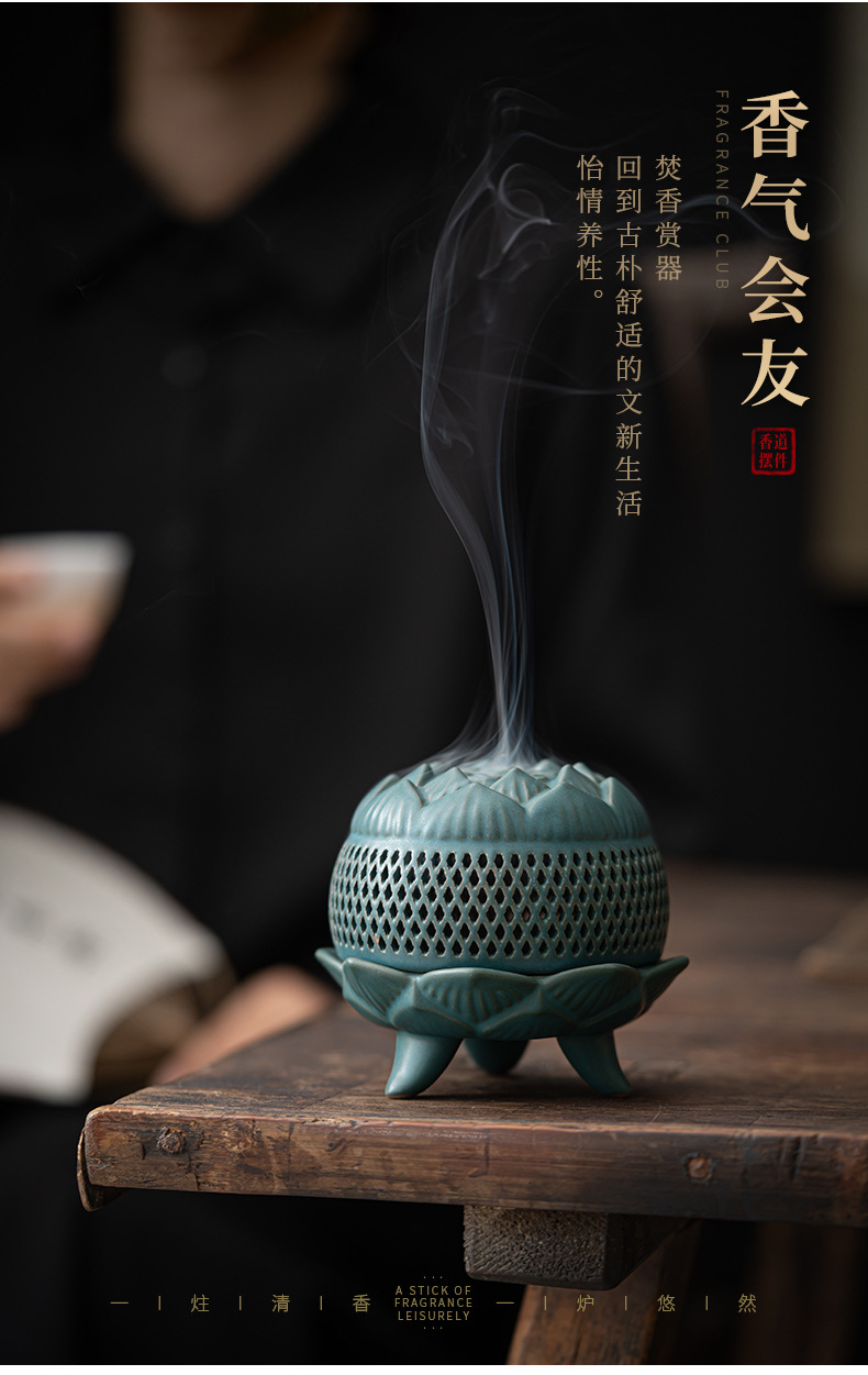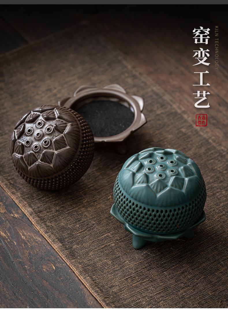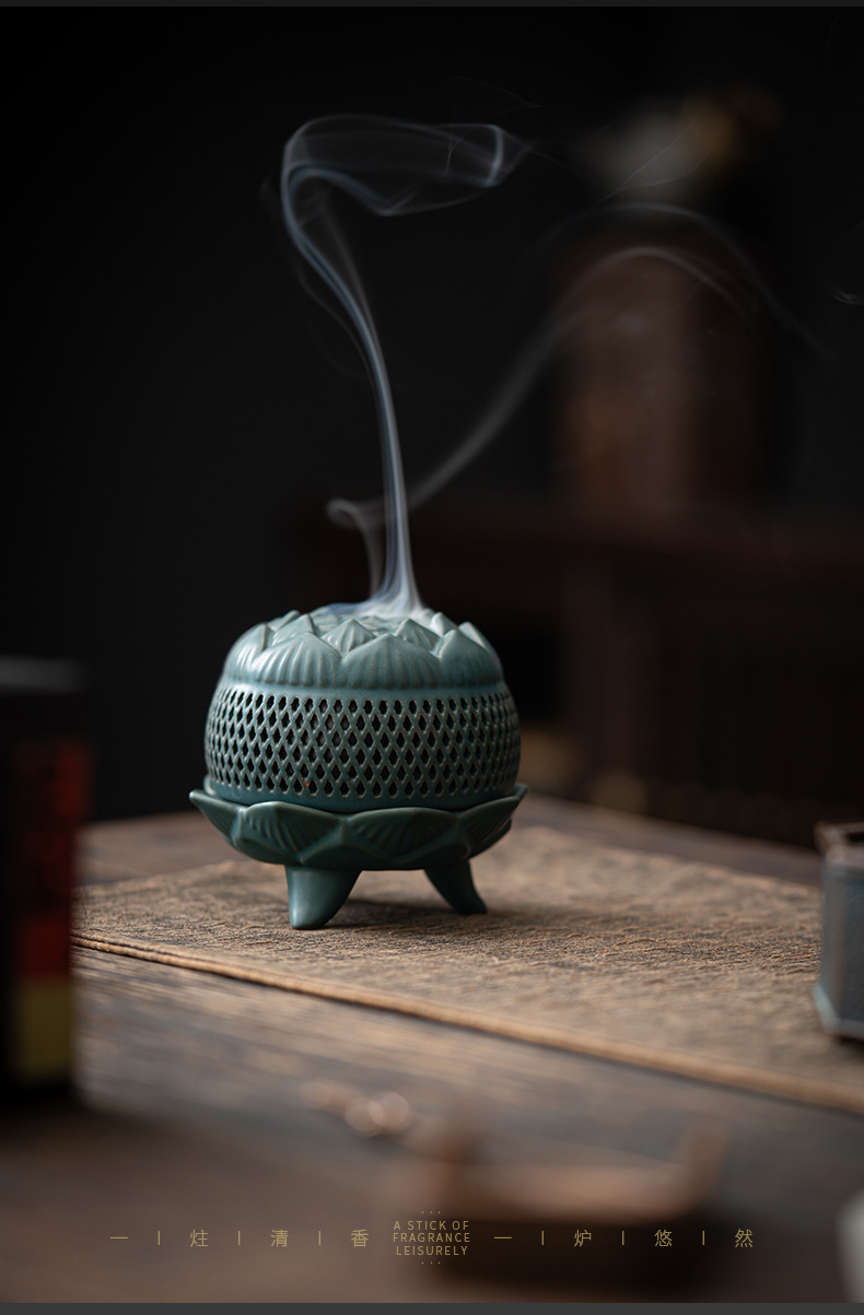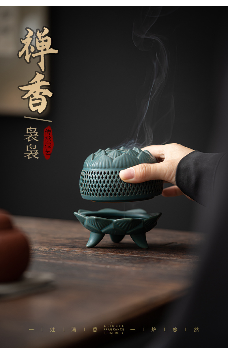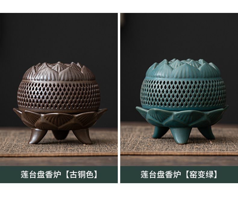 莲花香炉陶瓷 檀香家用香道摆件荷花薰香炉创意香炉香道批发代发