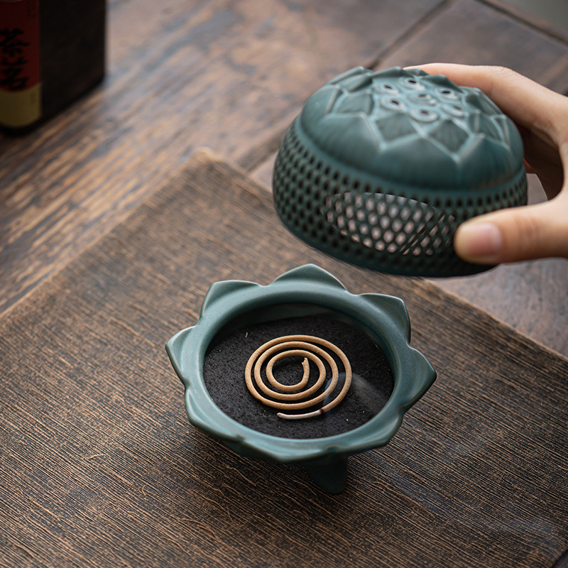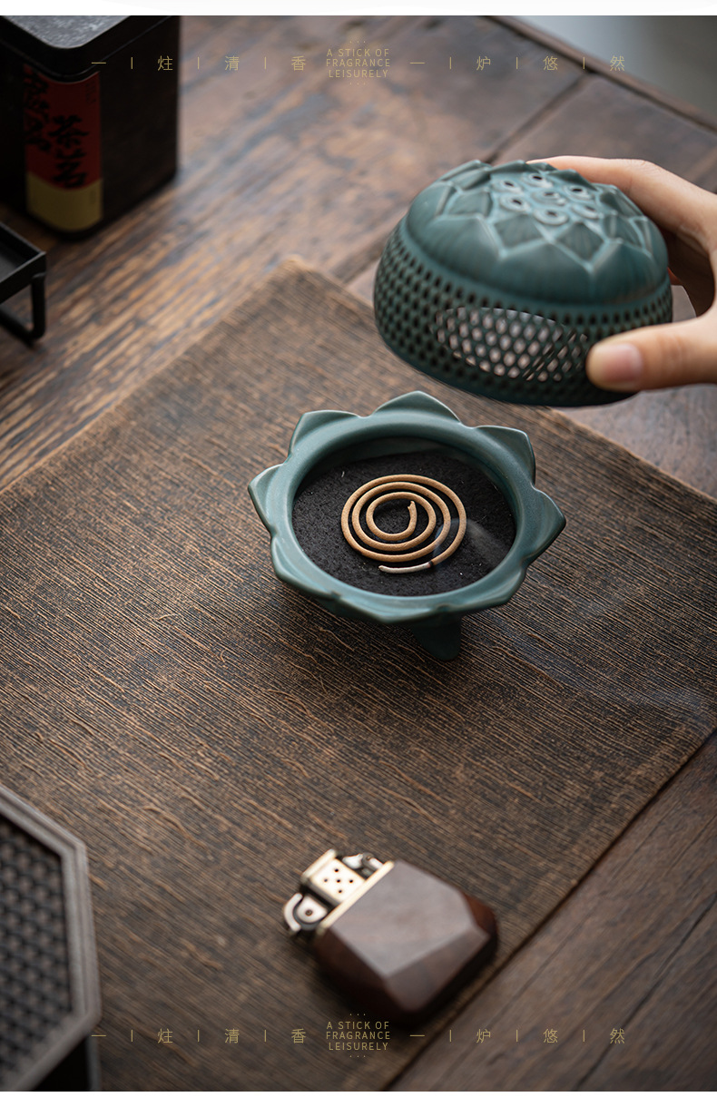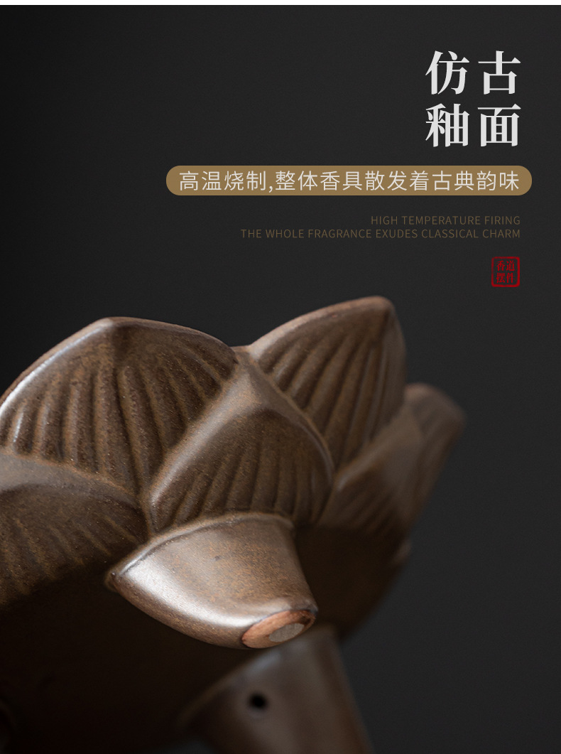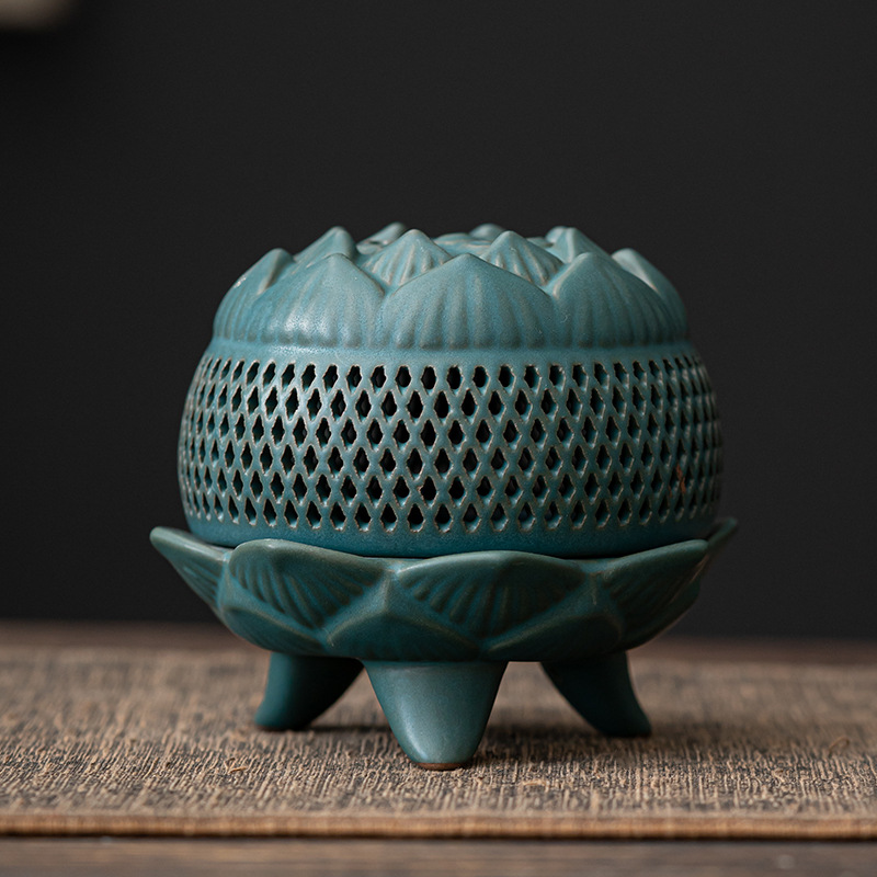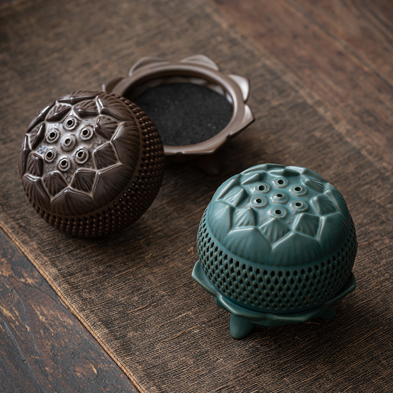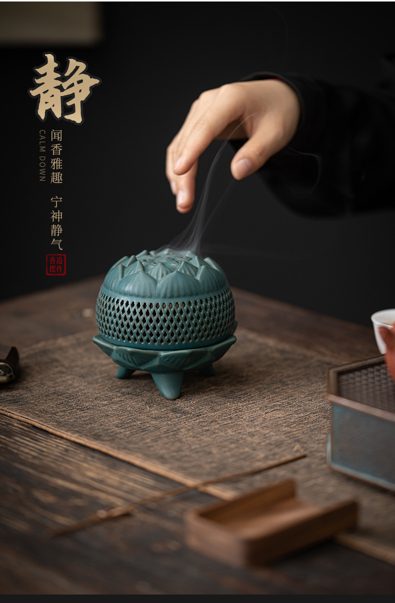 莲花香炉陶瓷 檀香家用香道摆件荷花薰香炉创意香炉香道批发代发