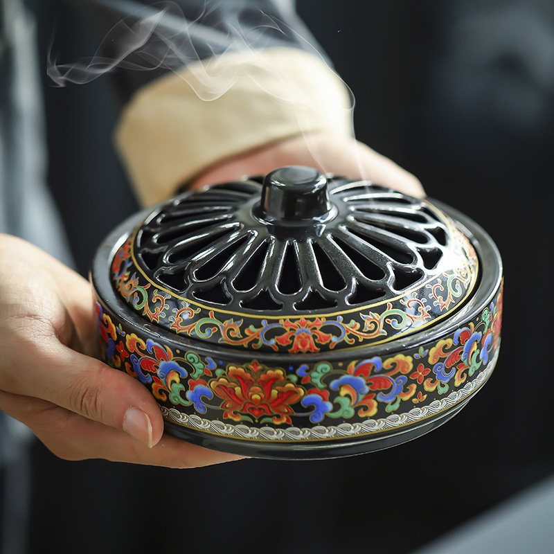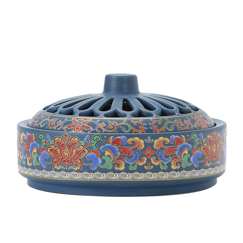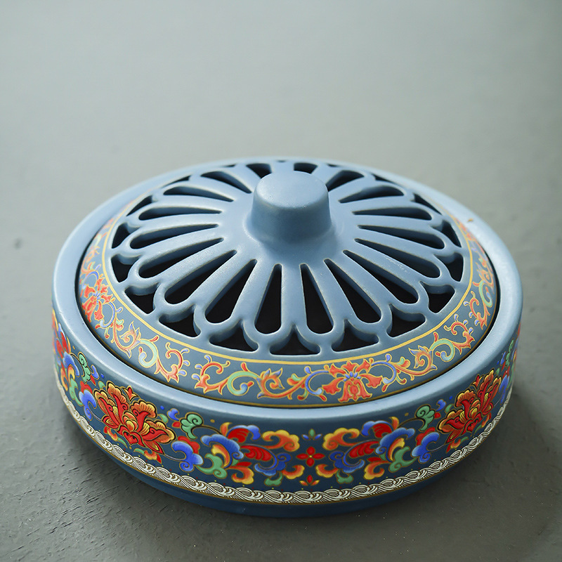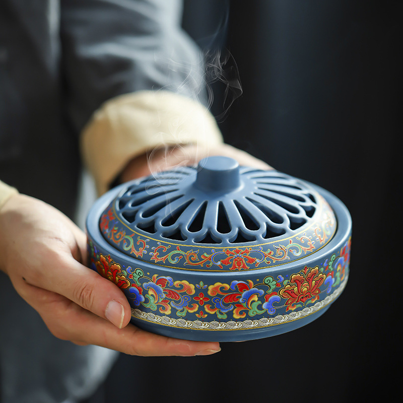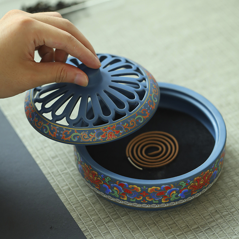 陶瓷景泰蓝香炉 大号蚊香炉摆件香薰炉创意家居居室香道珐琅彩