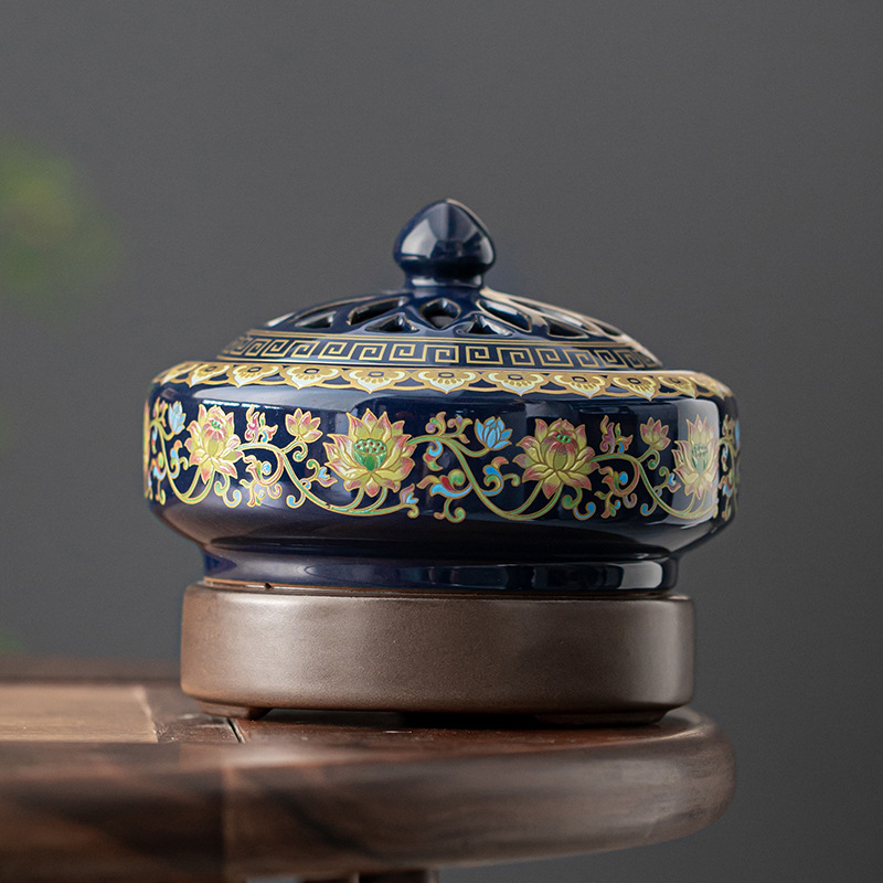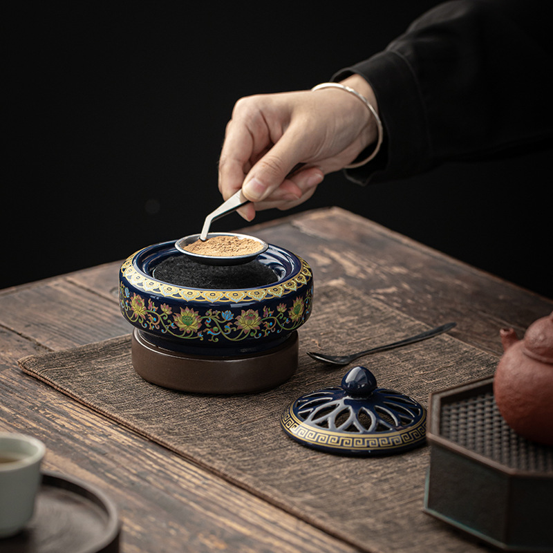 珐琅电子香薰炉香粉香精定时调温加热电薰炉熏香炉精油景泰蓝香炉