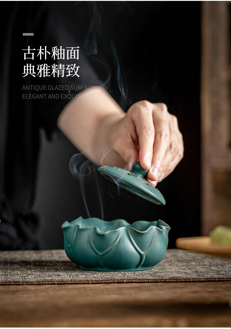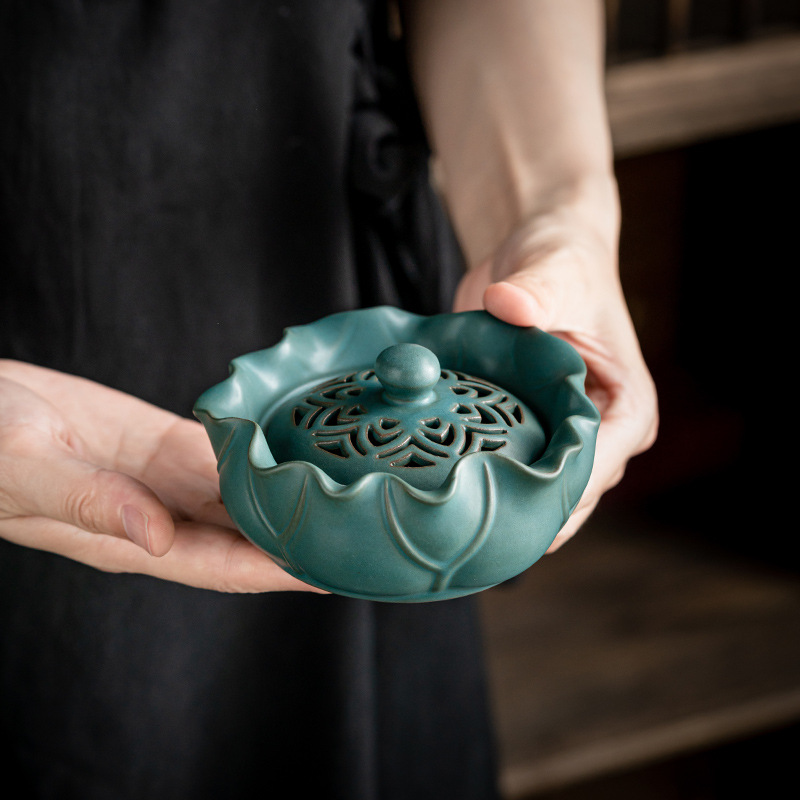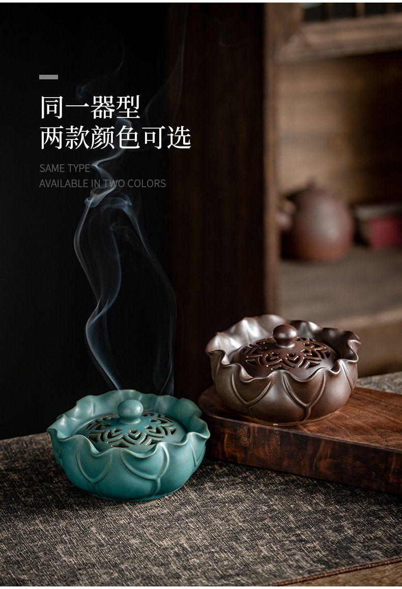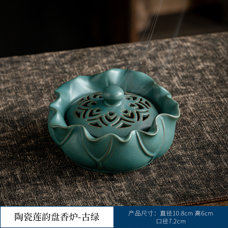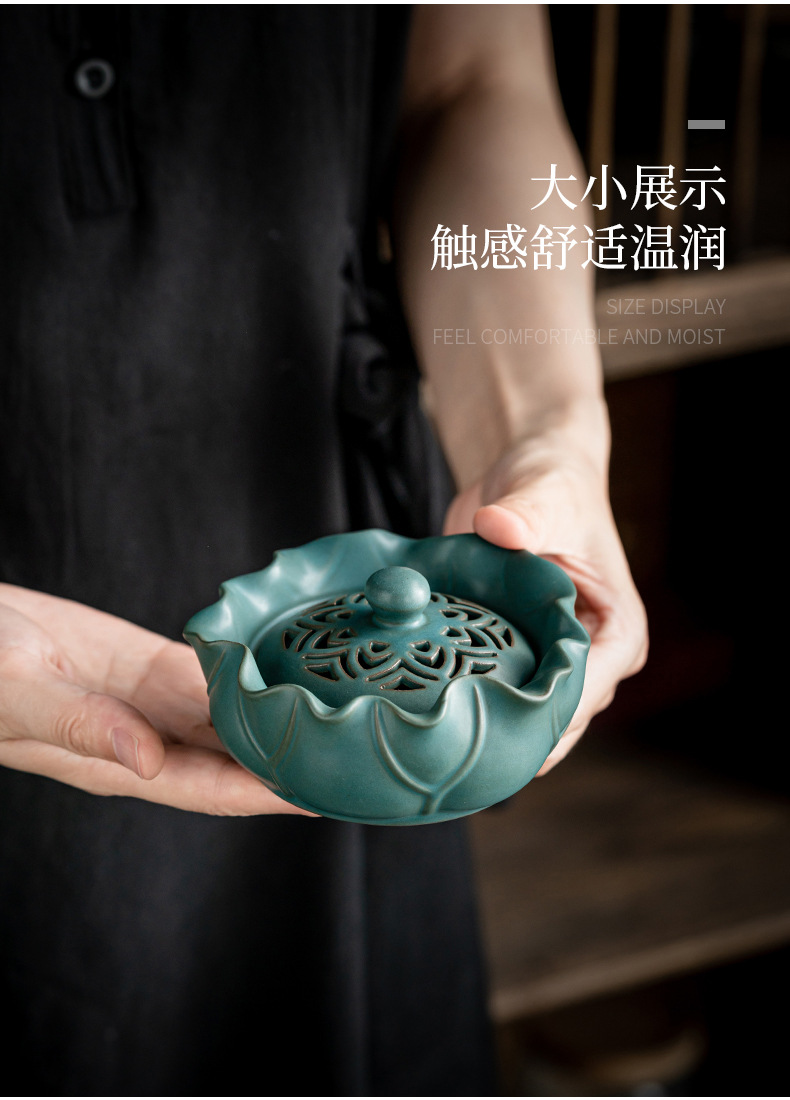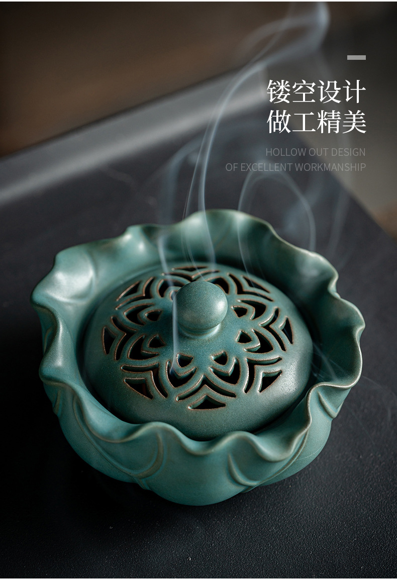 荷叶香炉陶瓷 檀香家用香道摆件荷花薰香炉创意香炉香道批发代发