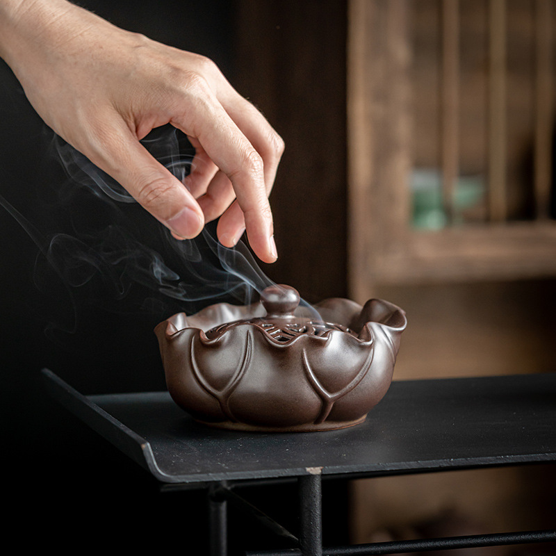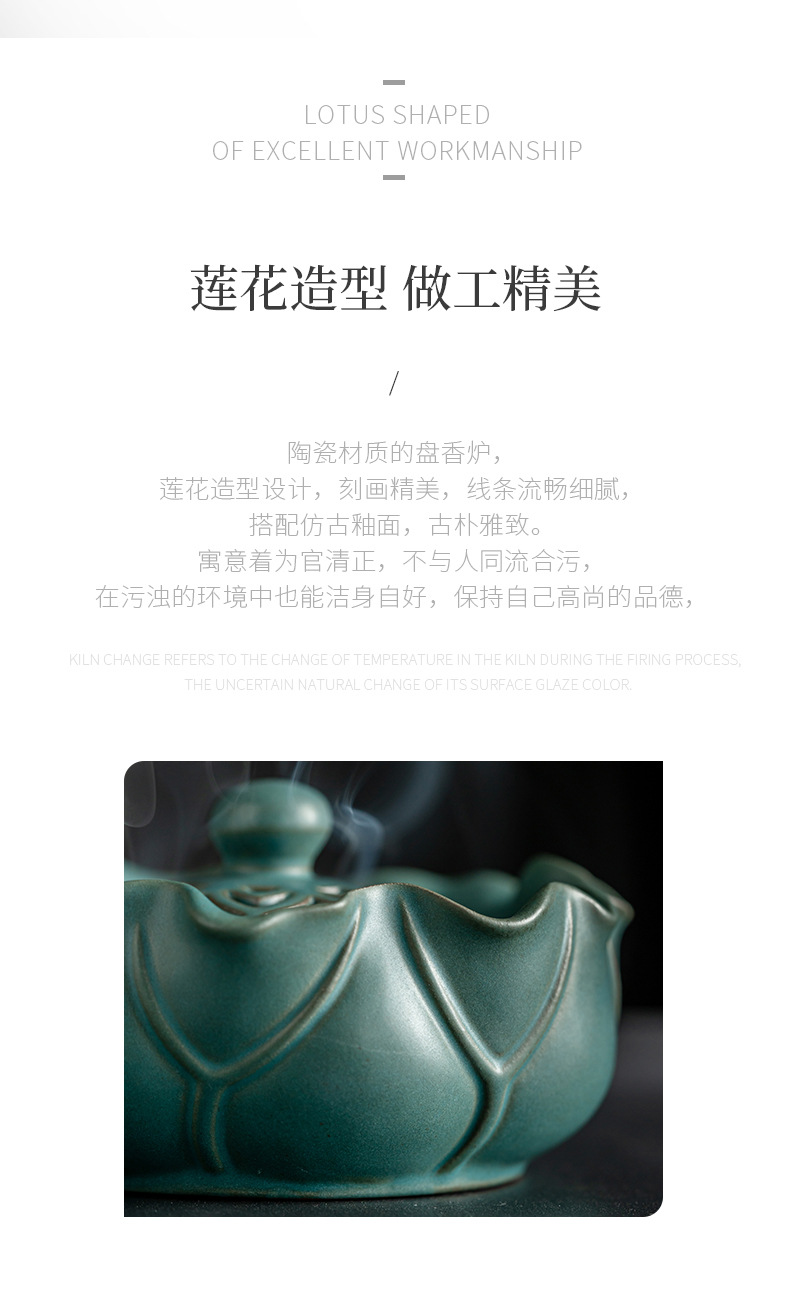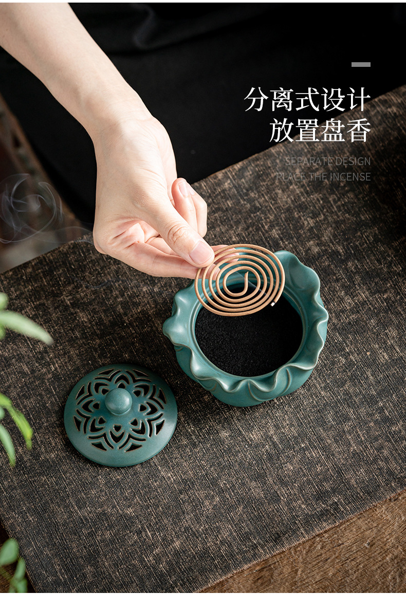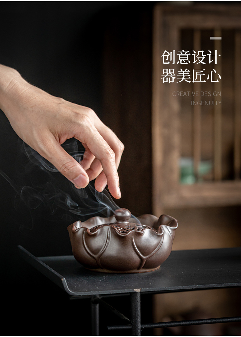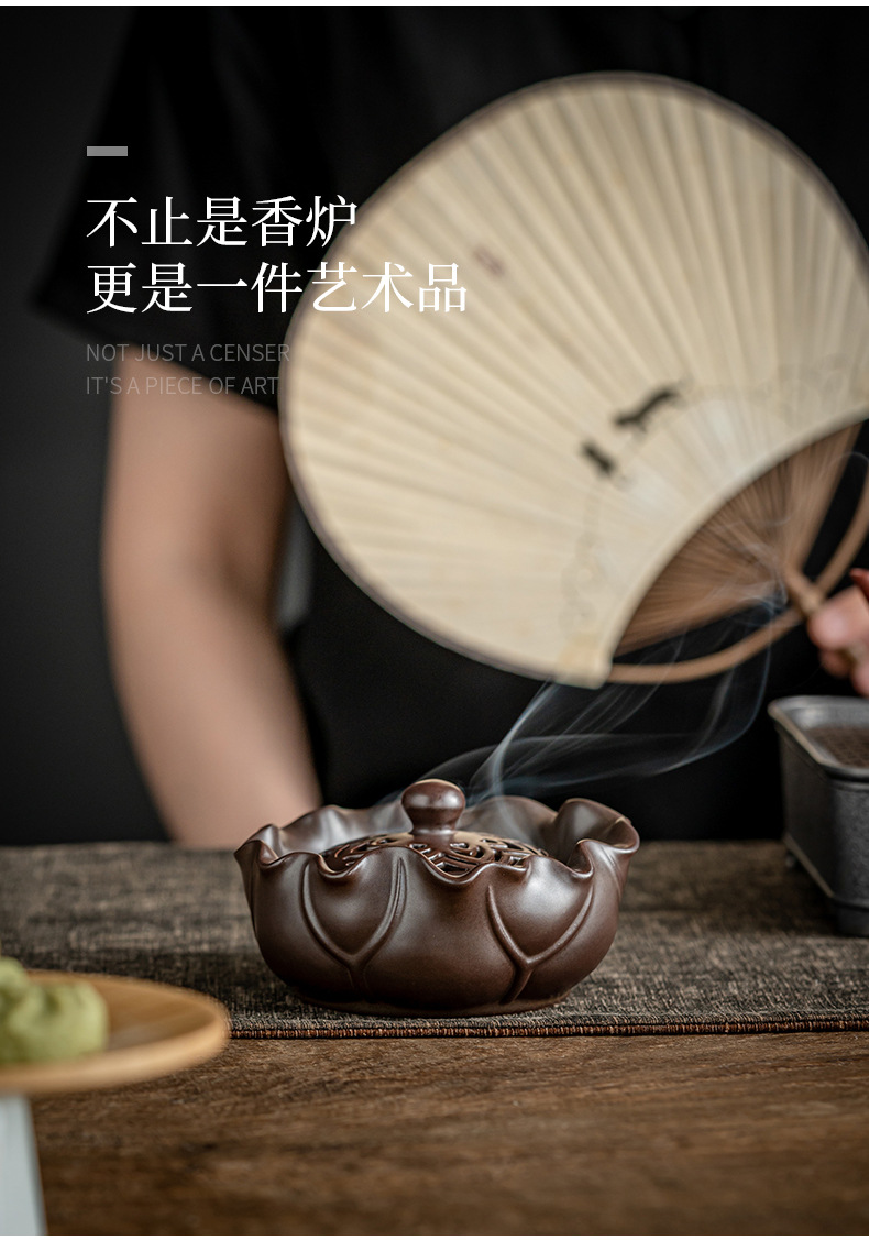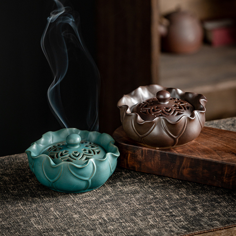 荷叶香炉陶瓷 檀香家用香道摆件荷花薰香炉创意香炉香道批发代发