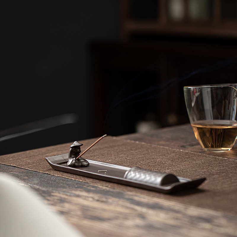 渔翁香插 线香炉摆件陶瓷创意香道茶道供奉仿古卧香炉家用檀香炉